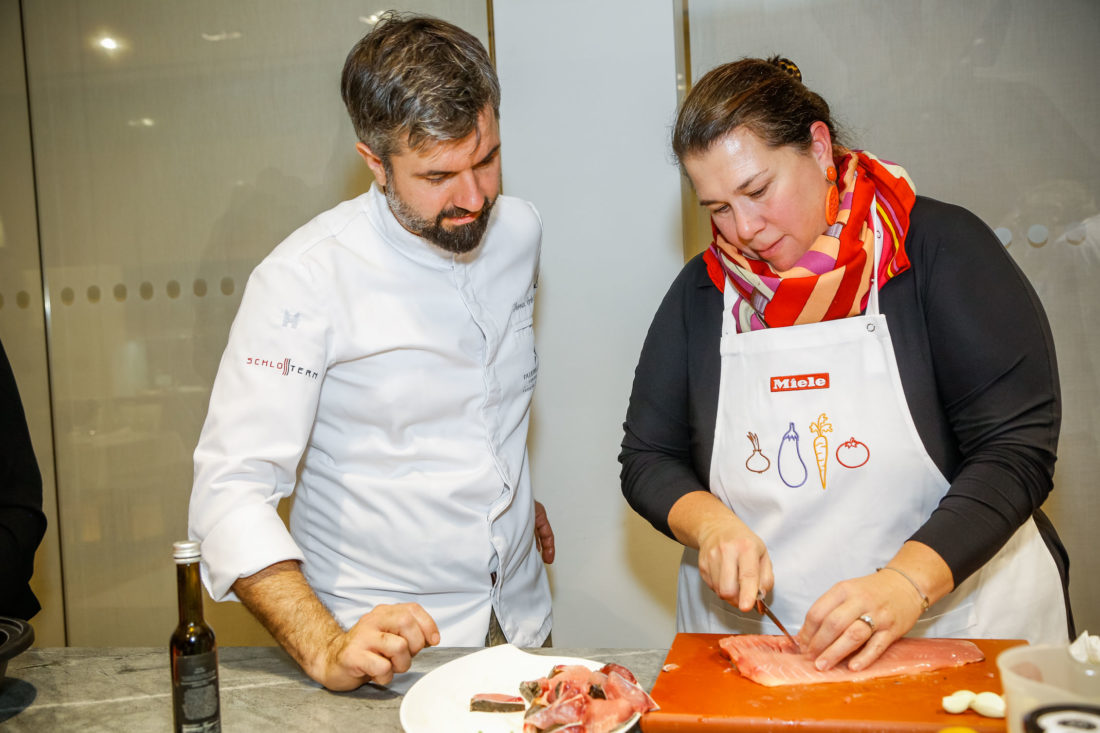 Wann kann ich schon mit einem Haubenkoch Seite an Seite kochen? Umso gelungener war die Einladung von Miele Österreich den neuen Dialoggarer doch mal tatsächlich so richtig nah unter die Lupe zu nehmen. Thomas Gruber ist neuer Küchenchef im „Schlosstern“ in Velden und hat den weiten Anreiseweg nach Wien nicht gescheut, um mit uns etwas Neuartigem zu verzaubern.