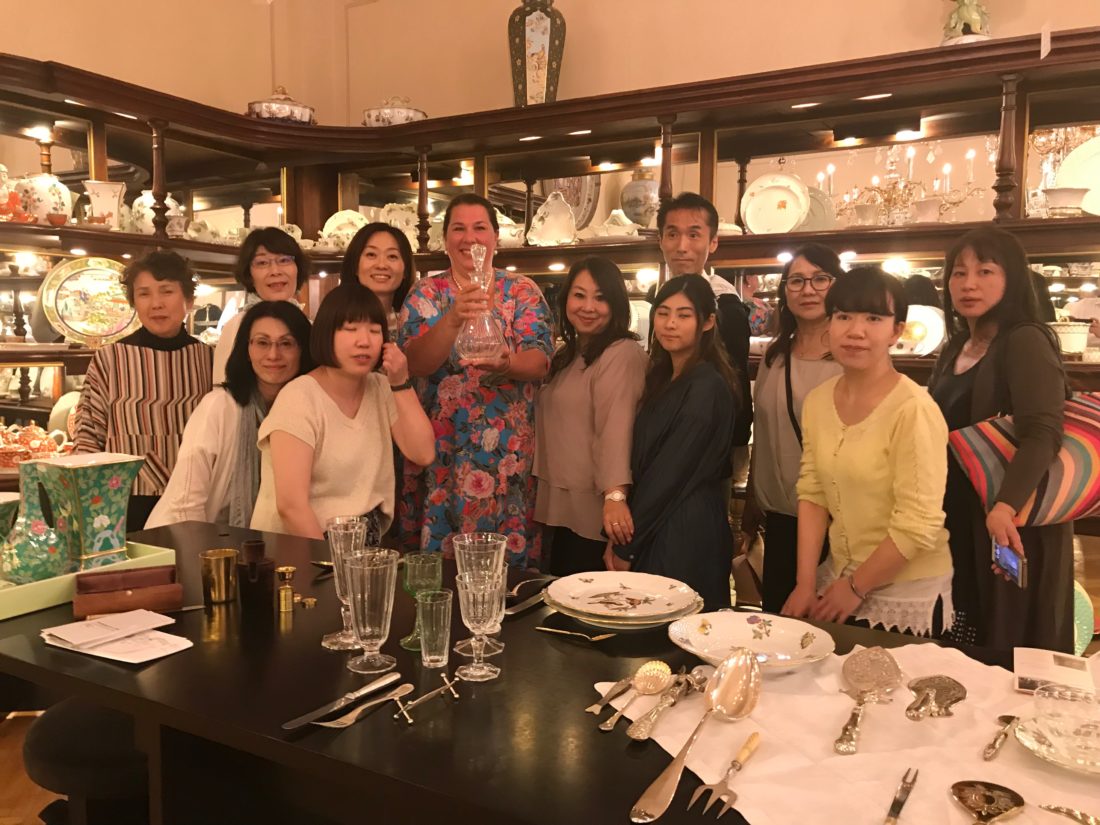 Eine Einführung in unsere europäische Tafelkultur durfte ich heute Mitgliedern der japanischen Tea Society geben: im wunderbaren Rahmen der Firma Lobmeyr mit reichlich Gläsern der 1823 gegründeten Firma als auch Herend-Porzellan und meinen mitgebrachten antiken Besteck-Teilen.