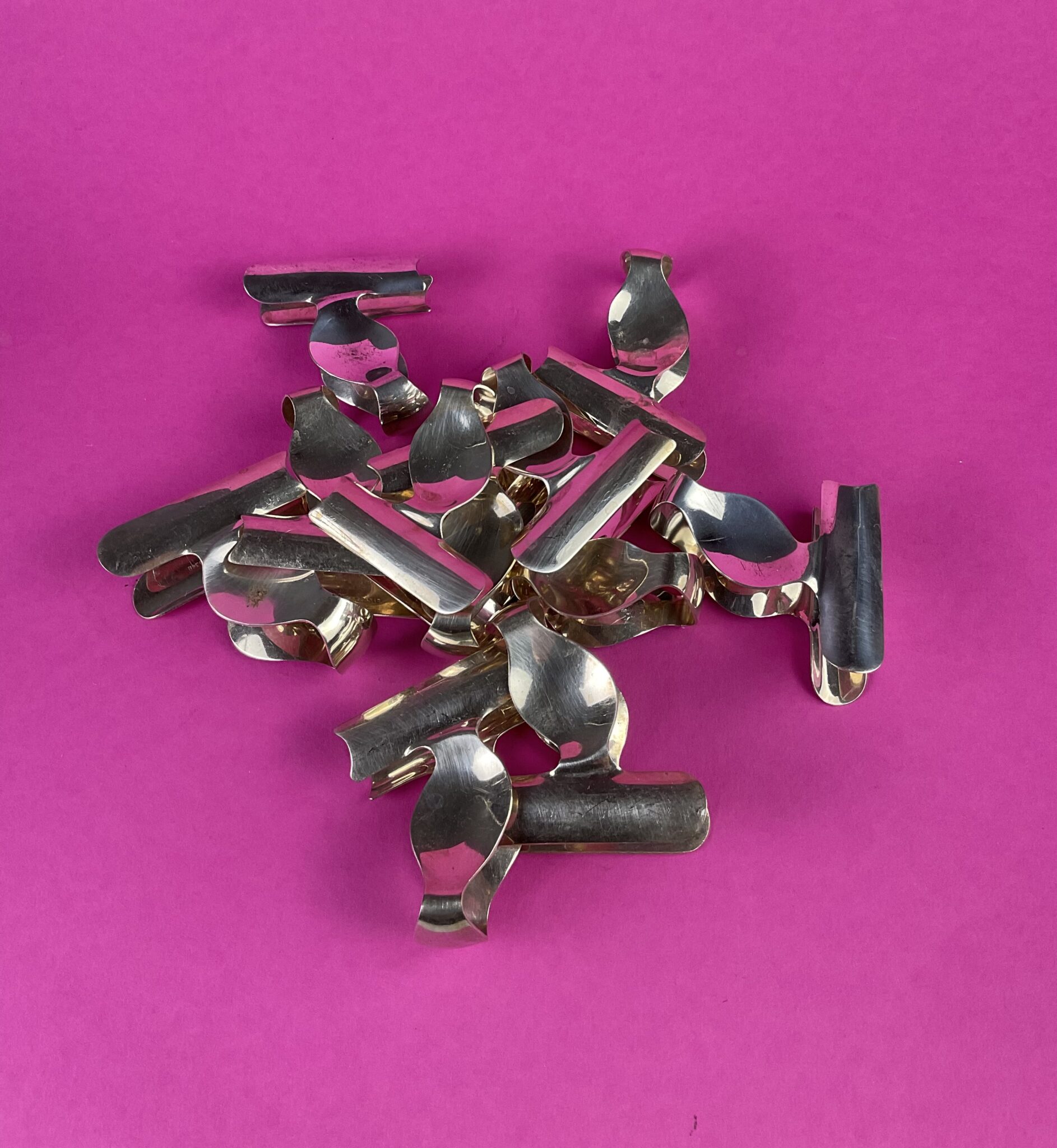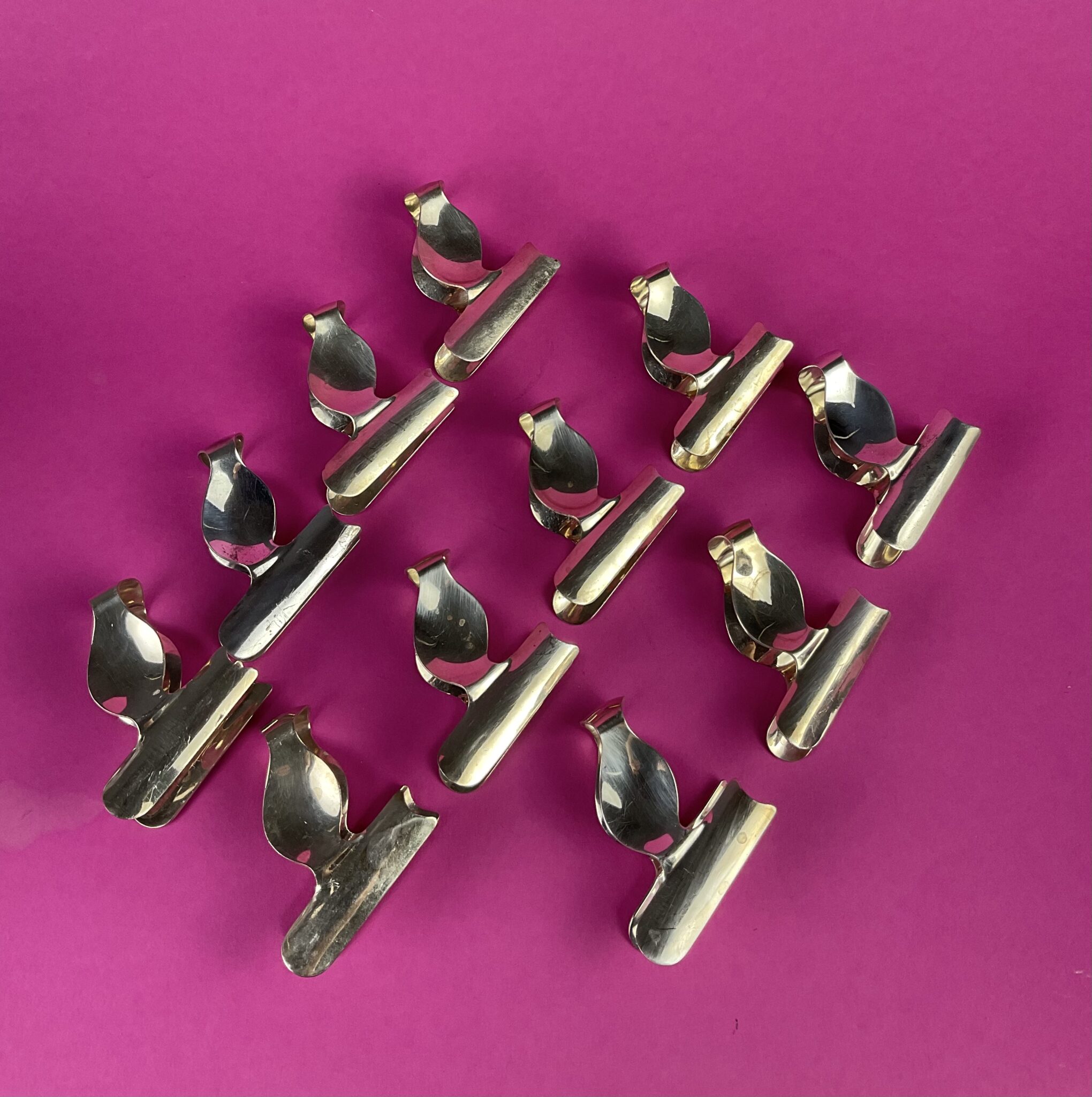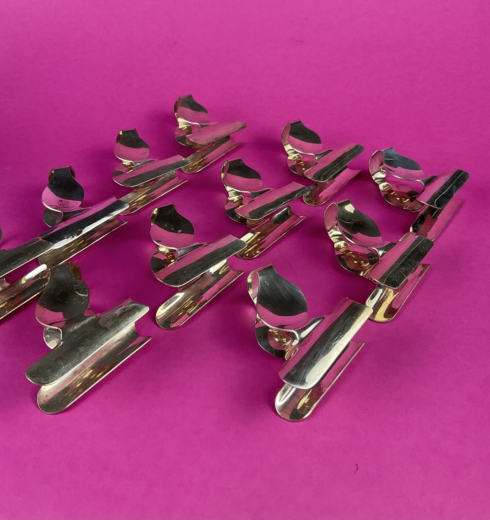 11 seltene, versilberte Art Deco Spargelfingerzangen