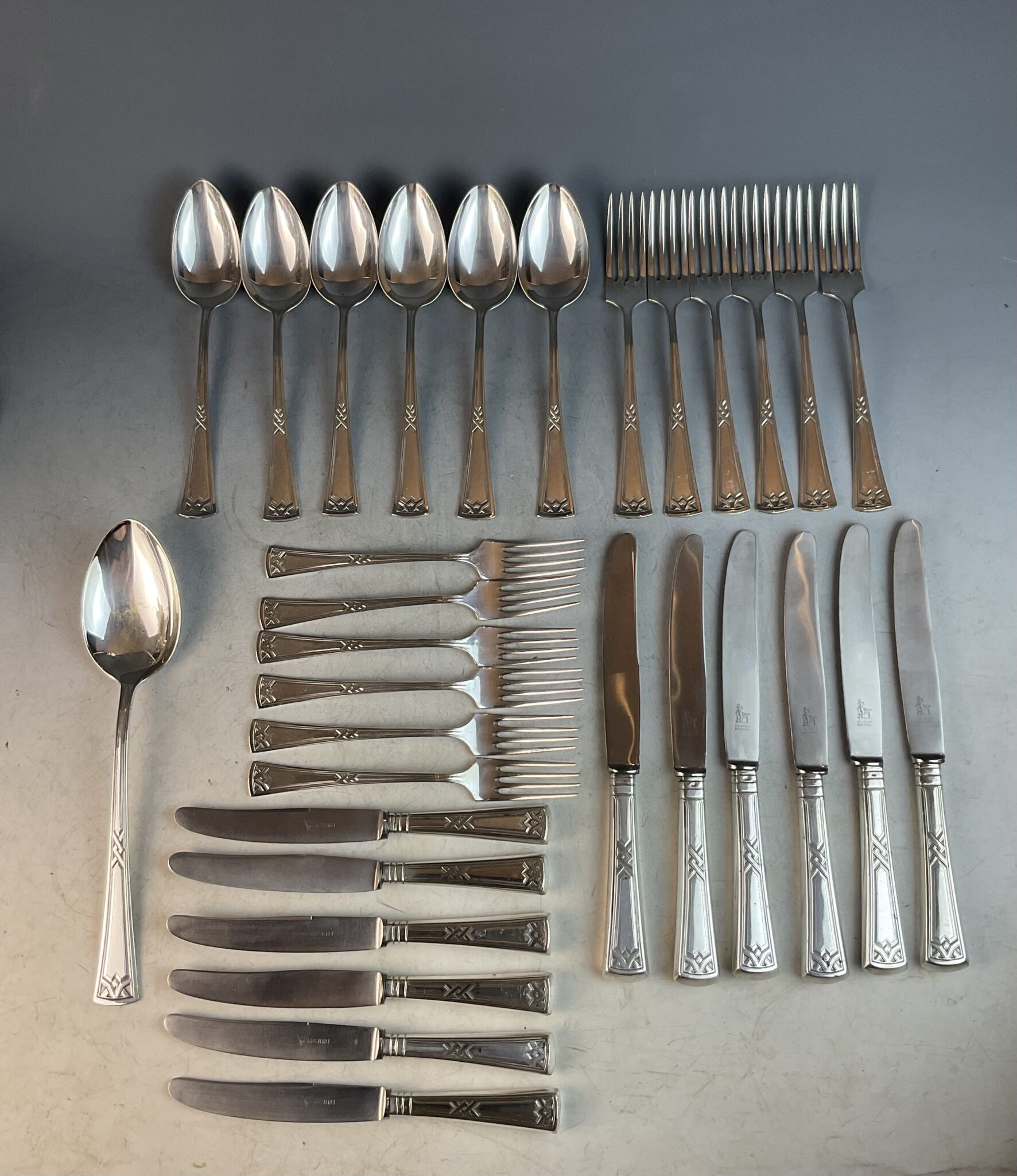 Alpacca, stark versilbert, 36 Teile, alle Teile gemarkt mit Firmenmarke Zentaur 90 bzw 20 Auflage handpolierter Erhaltungszustand