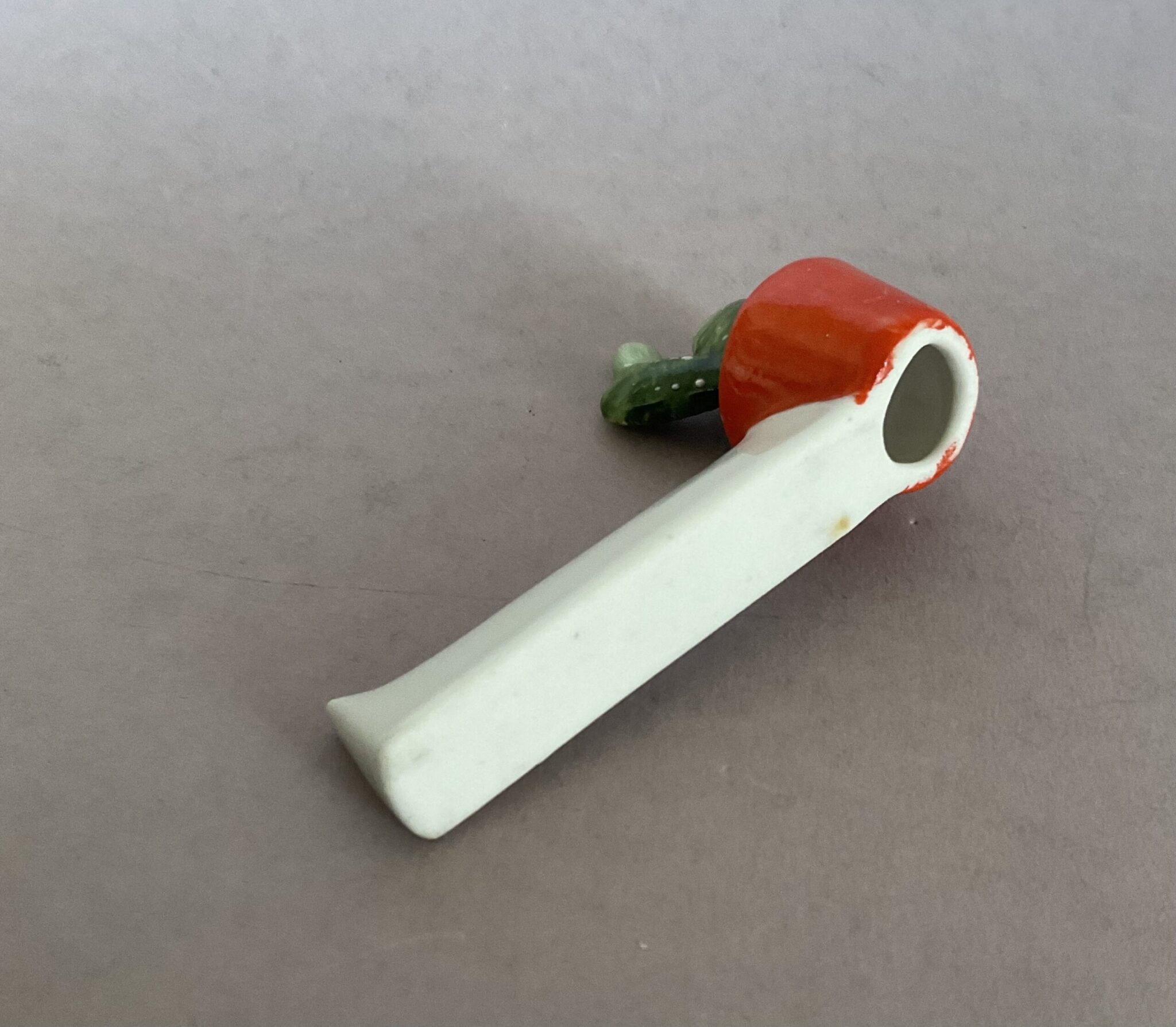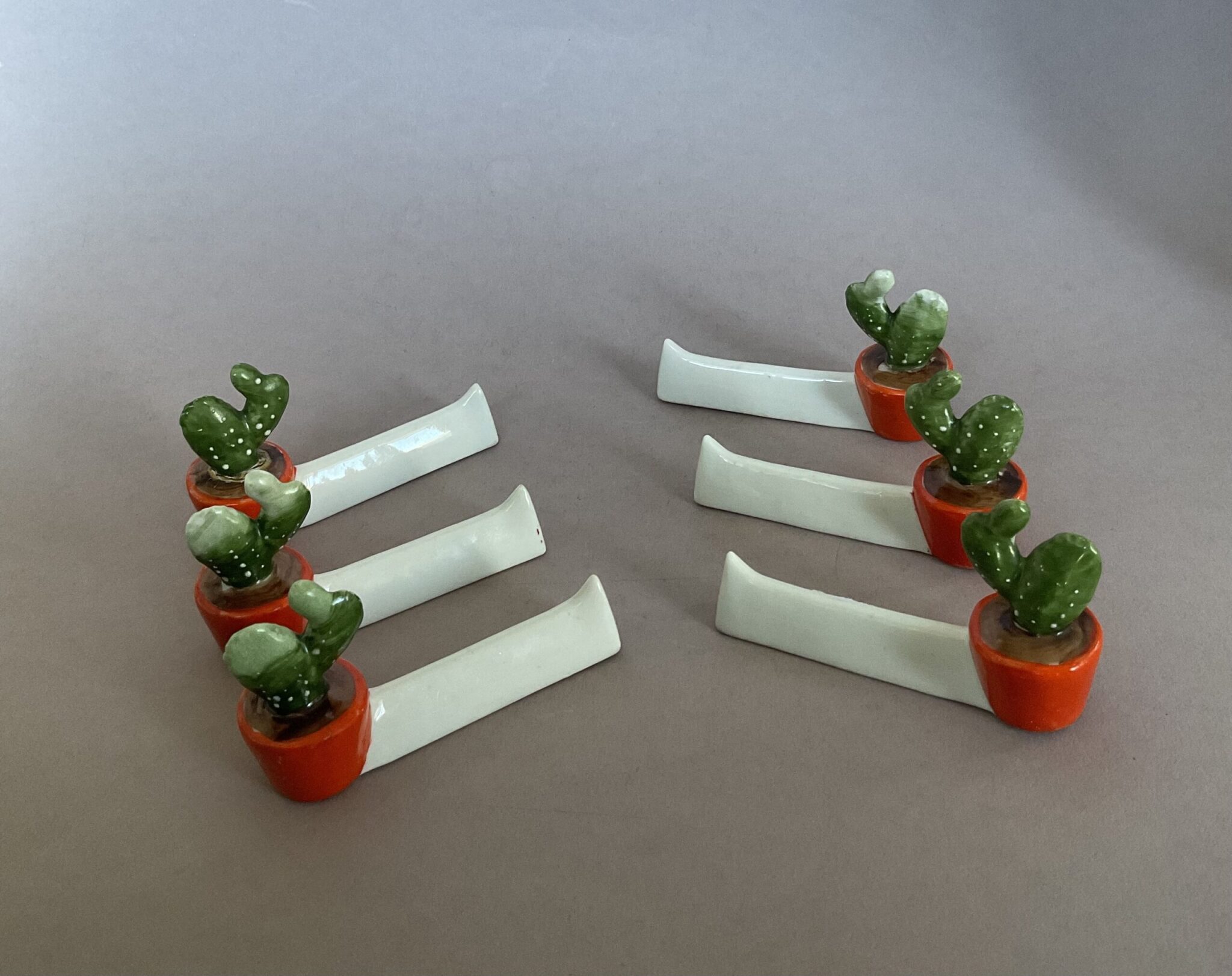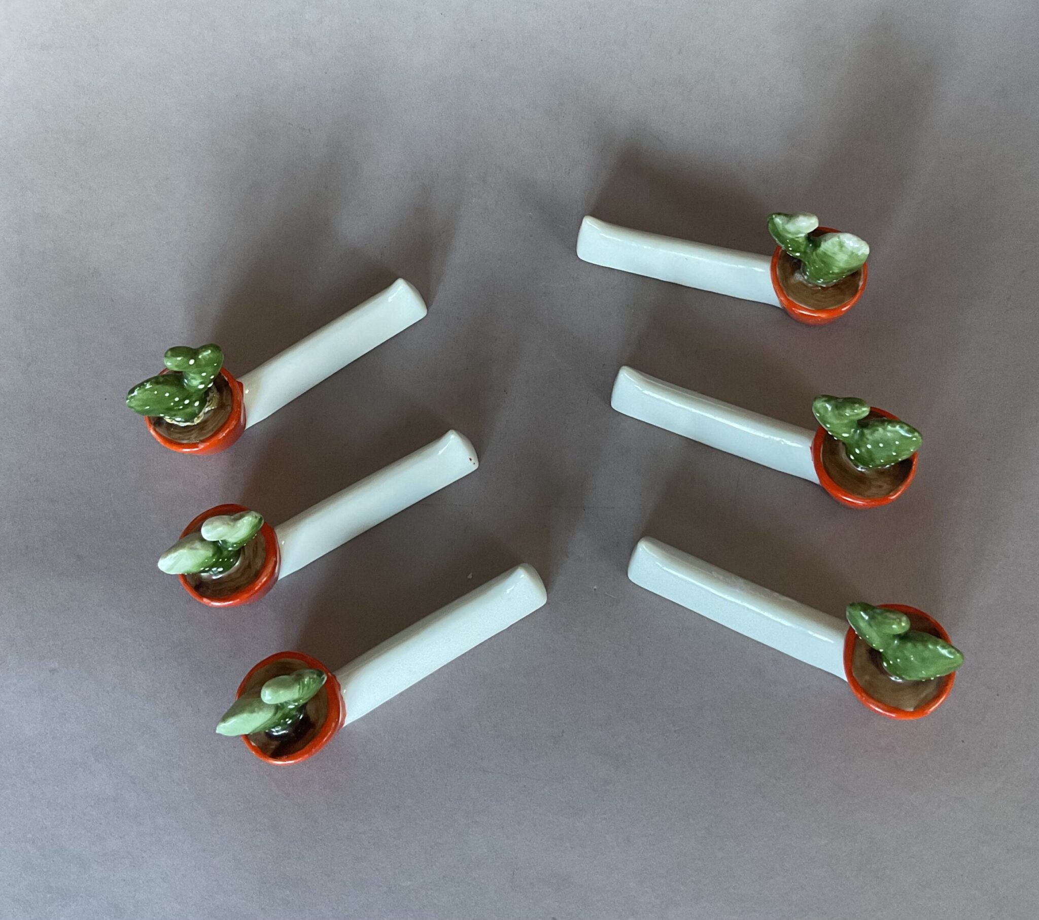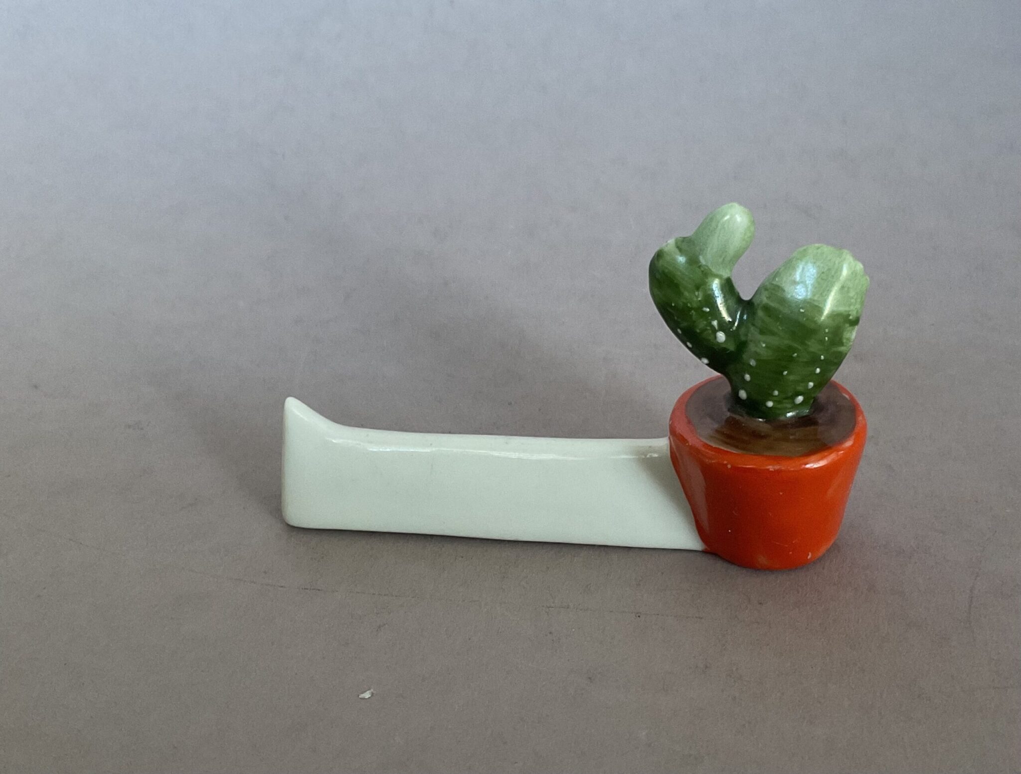 Porzellan, Messerbank mit Kaktustopf als Abschluss, bunt bemalt, ungemarkt, tadelloser Erhaltungszustand
