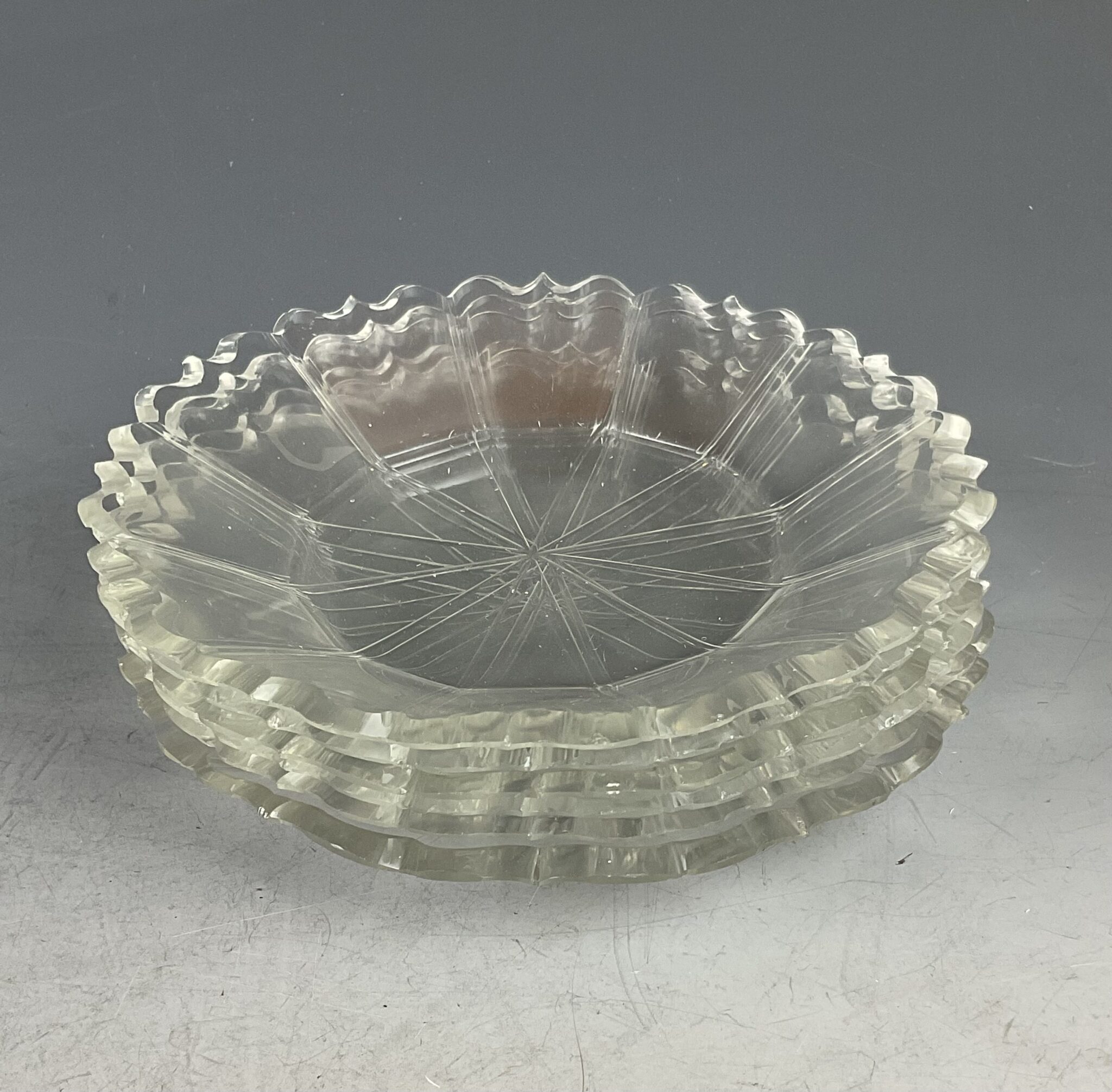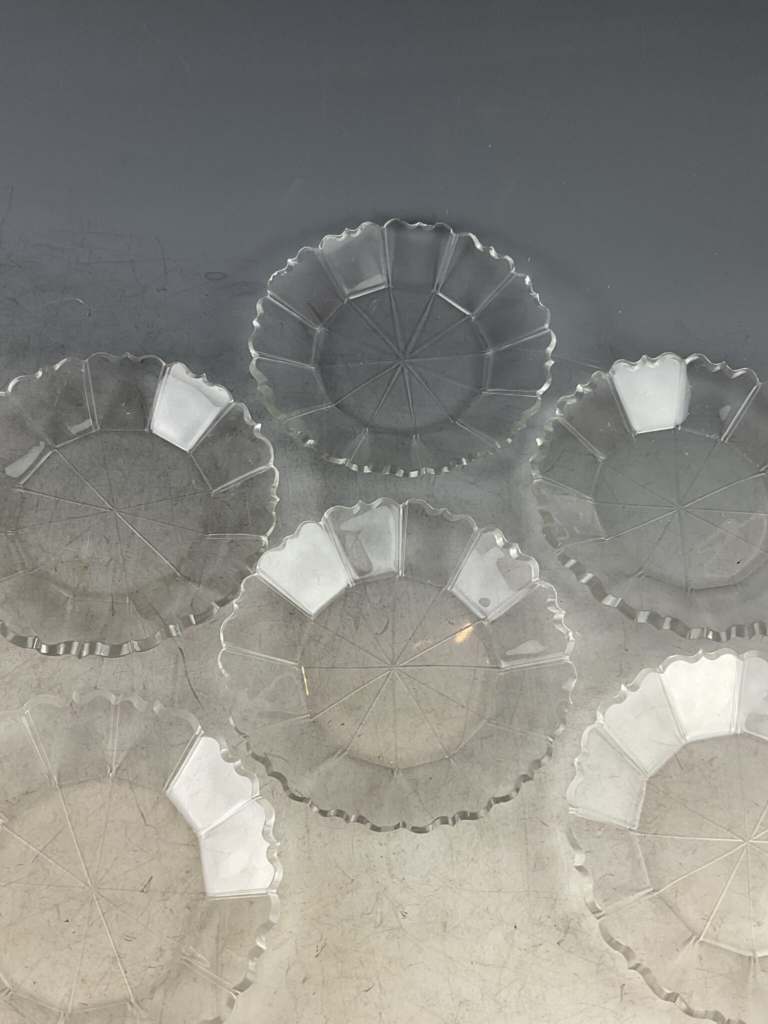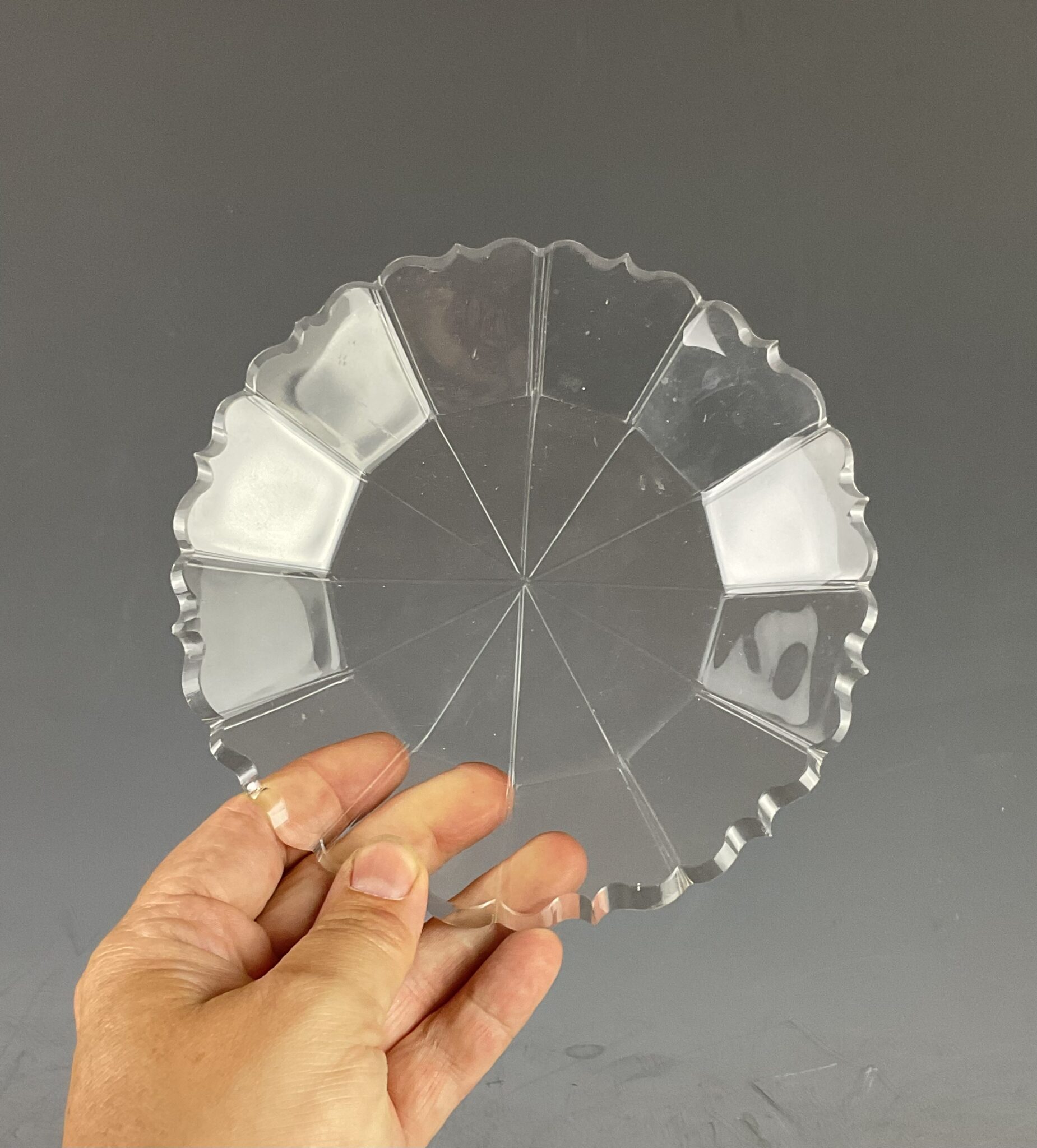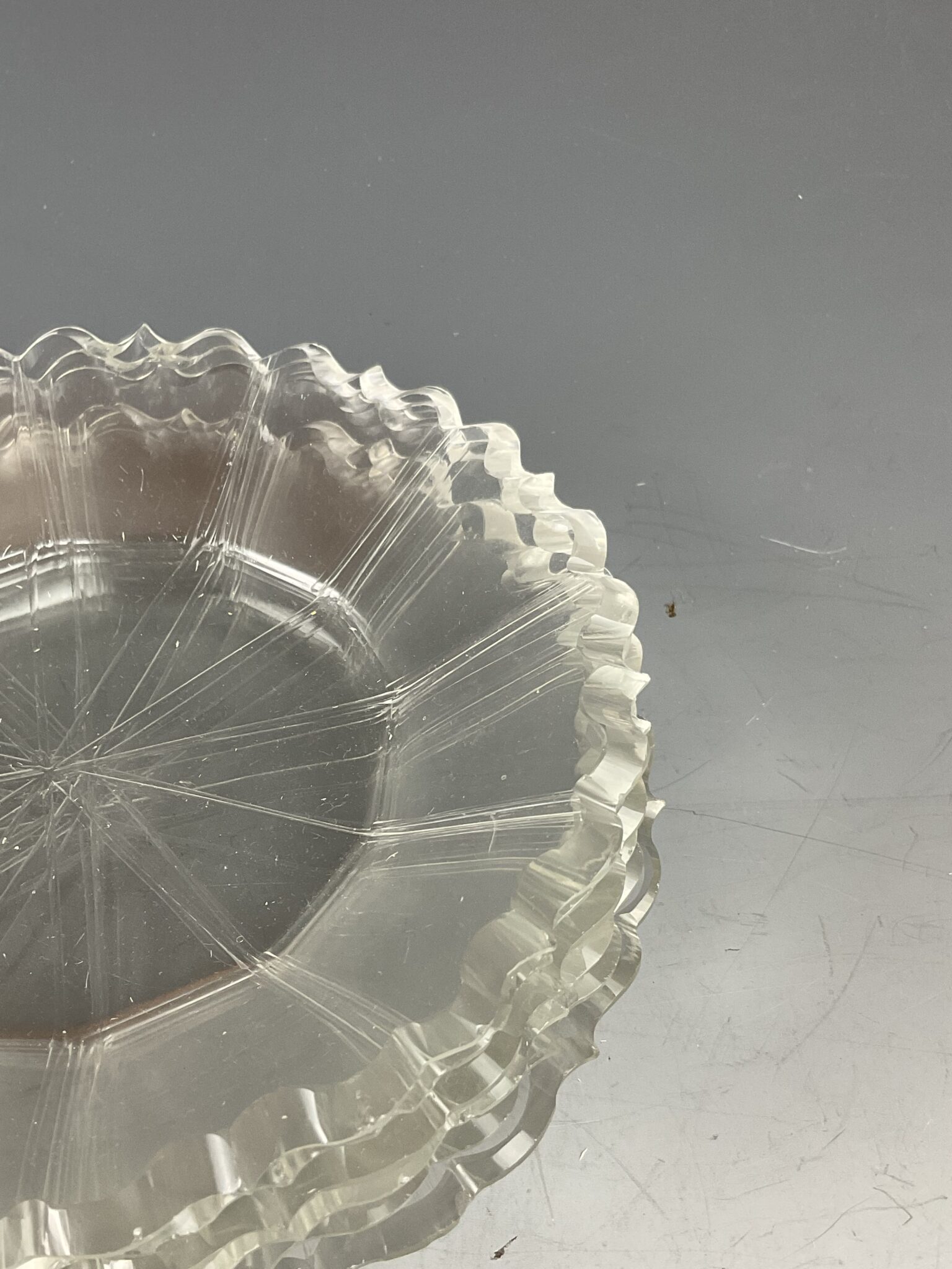 farbloses Kristallglas, Bodenschliffstern, gezackte Fahne mit Schälschliff, minimale Absplitterungen an der Kante, altersbedingte Gebrauchsspuren am Boden