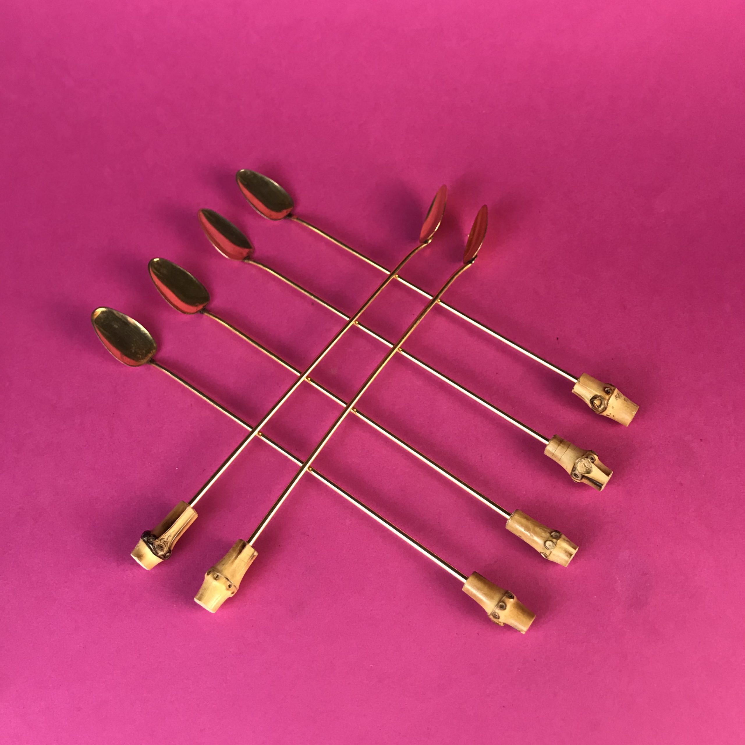 6 Midcentury Limonadenlöffel mit Bambusgriffen