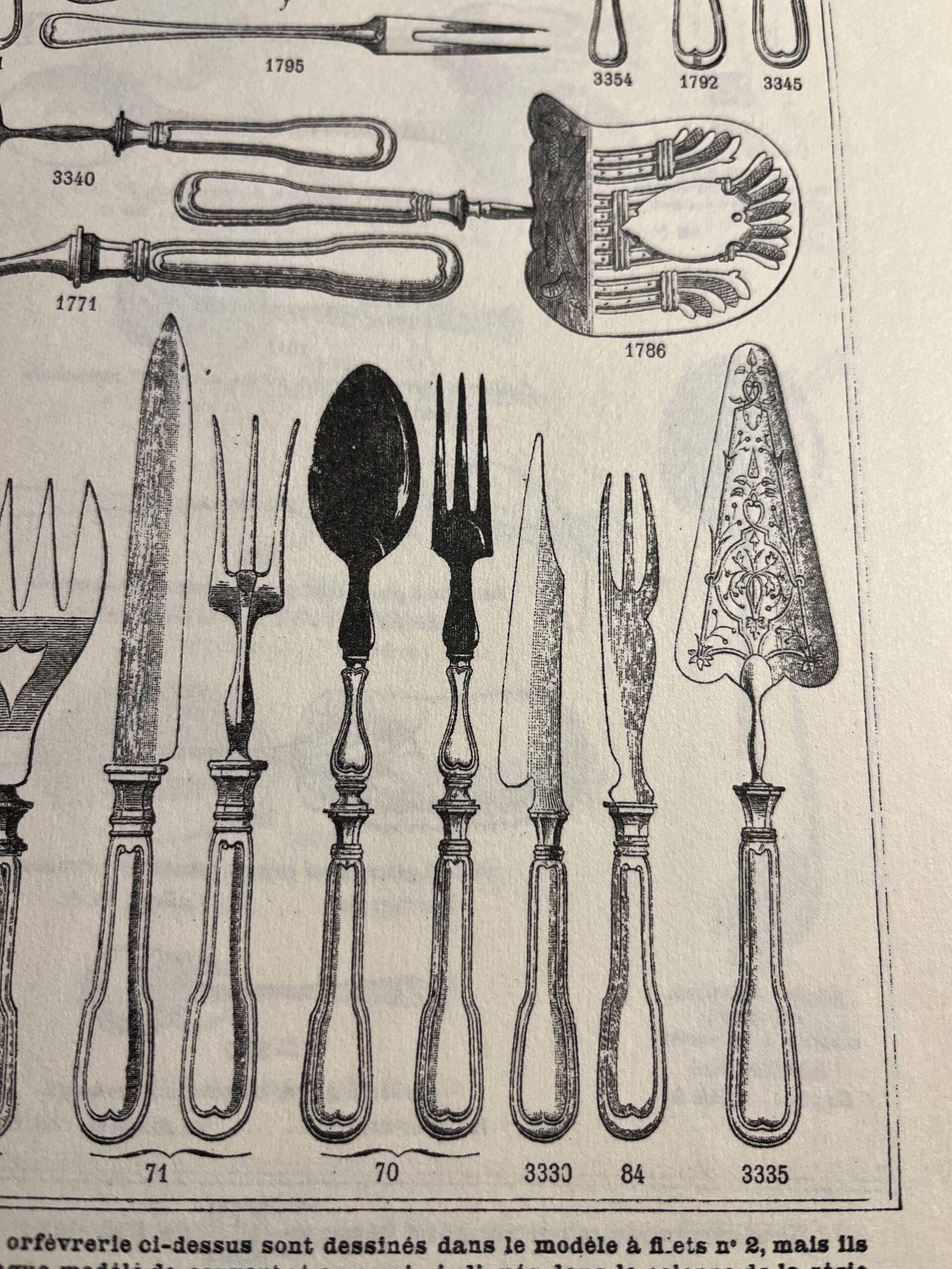 siehe Verkaufskatalog Christofle 1883, Tafel 14, „Fourchettes à melon“