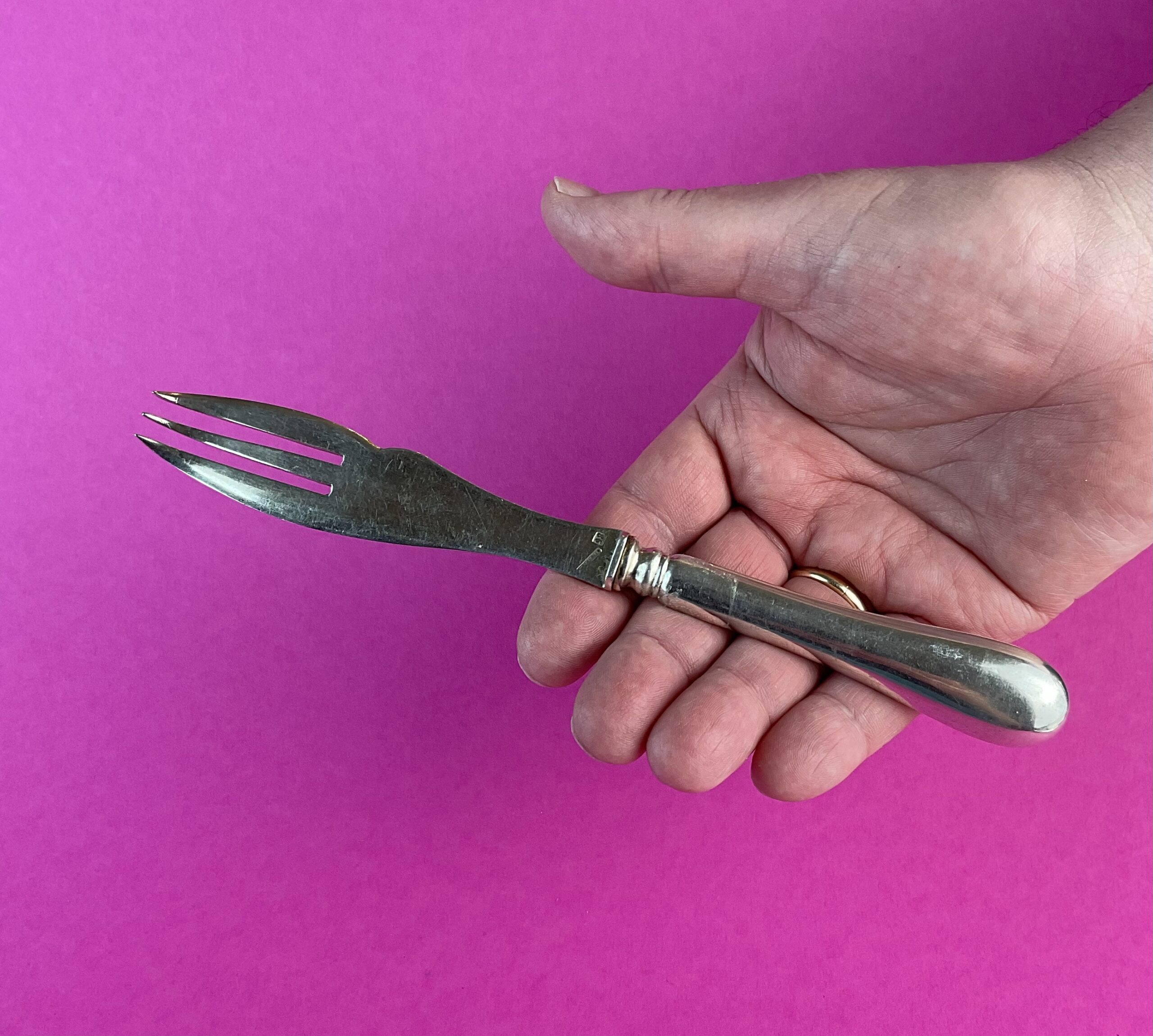 Annettes Etikette: Kaum jemand weiss wofür diese ungewöhnlichen, dreizinkigen Gabeln mit Schneidefläche tatsächlich gedacht sind. Die alten Firmenkataloge geben darüber gelassen Auskunft. So liest man bei der französischen Luxusmarke Christofle bereits 1883 von „Fourchettes à melon“, Melonengabeln. In der Tat mehr als praktisch, das das wässrige Obst vor Verzehr oftmals auch in mundgerechte Stücke geschnitten werden muss.