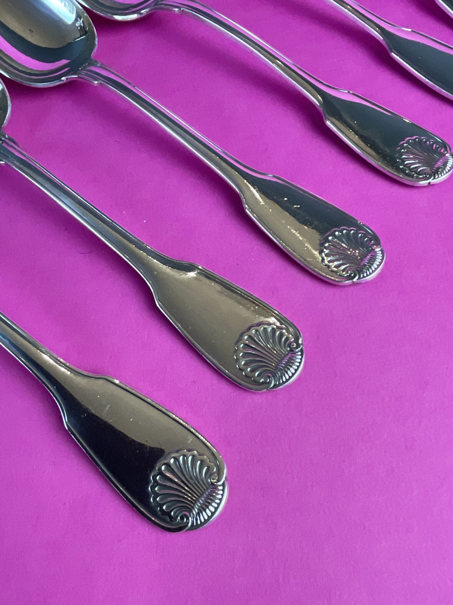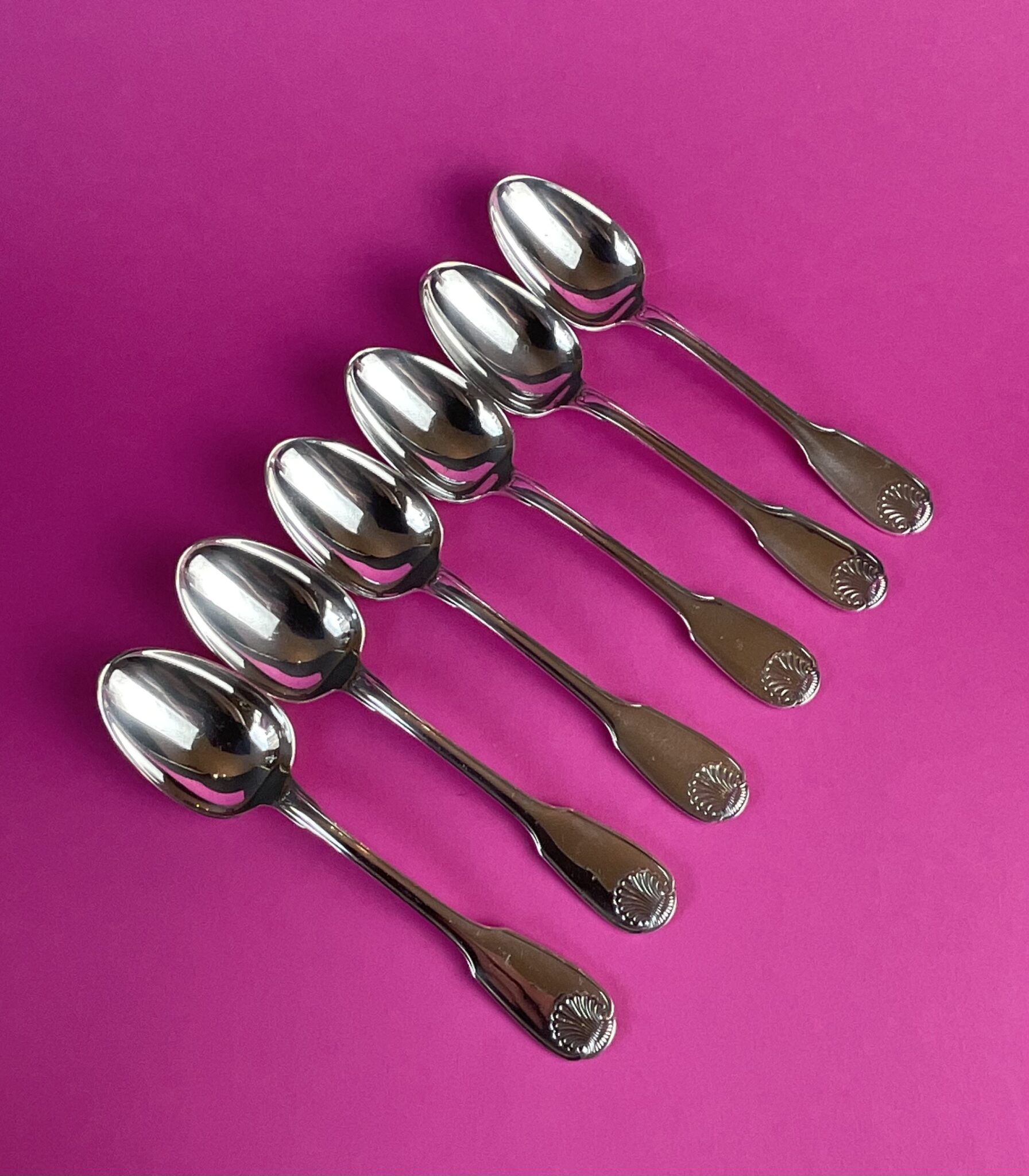 6 versilberte Bouillonlöffel „Coquillage“