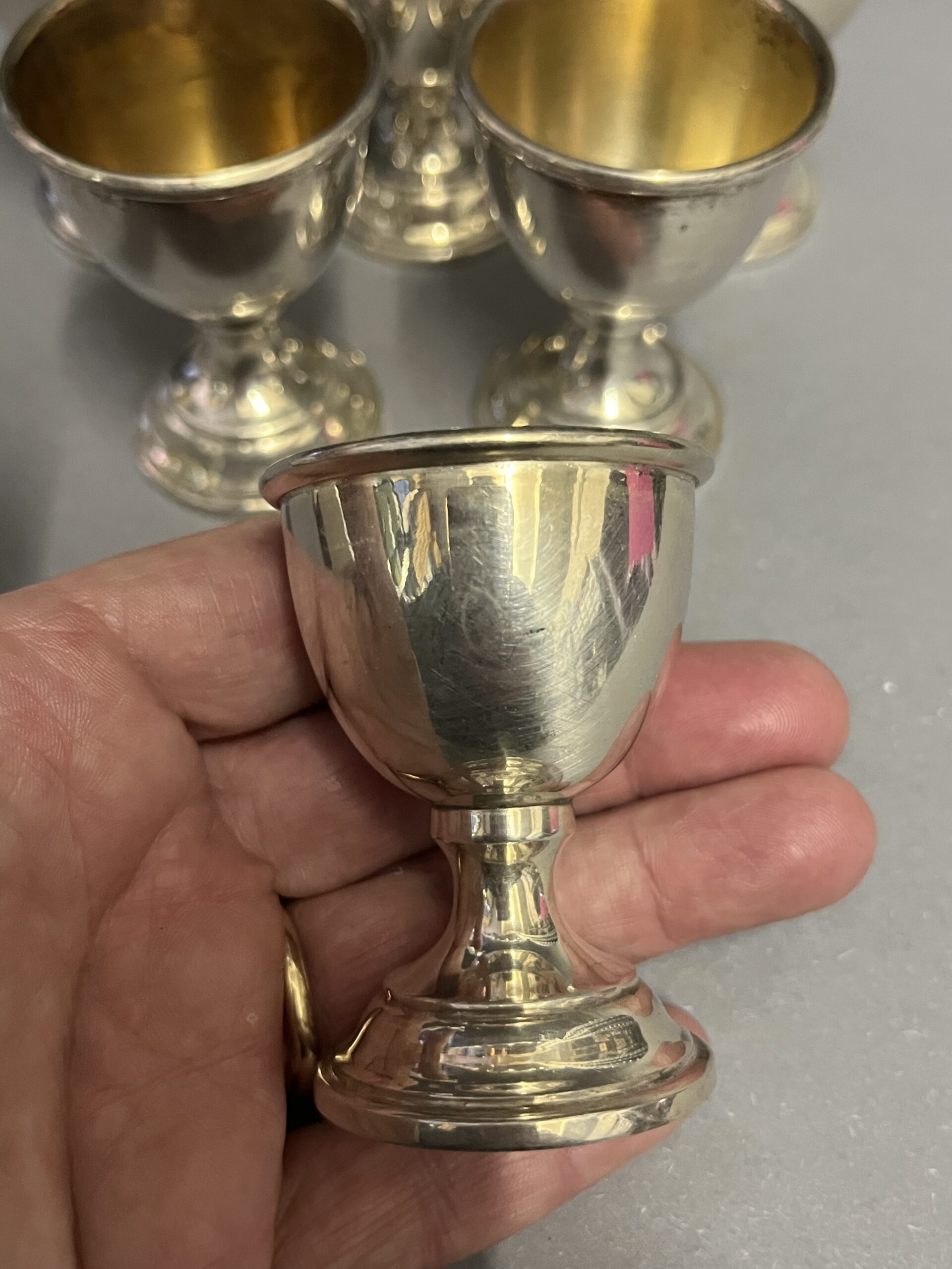 6 versilberte Eierbecher