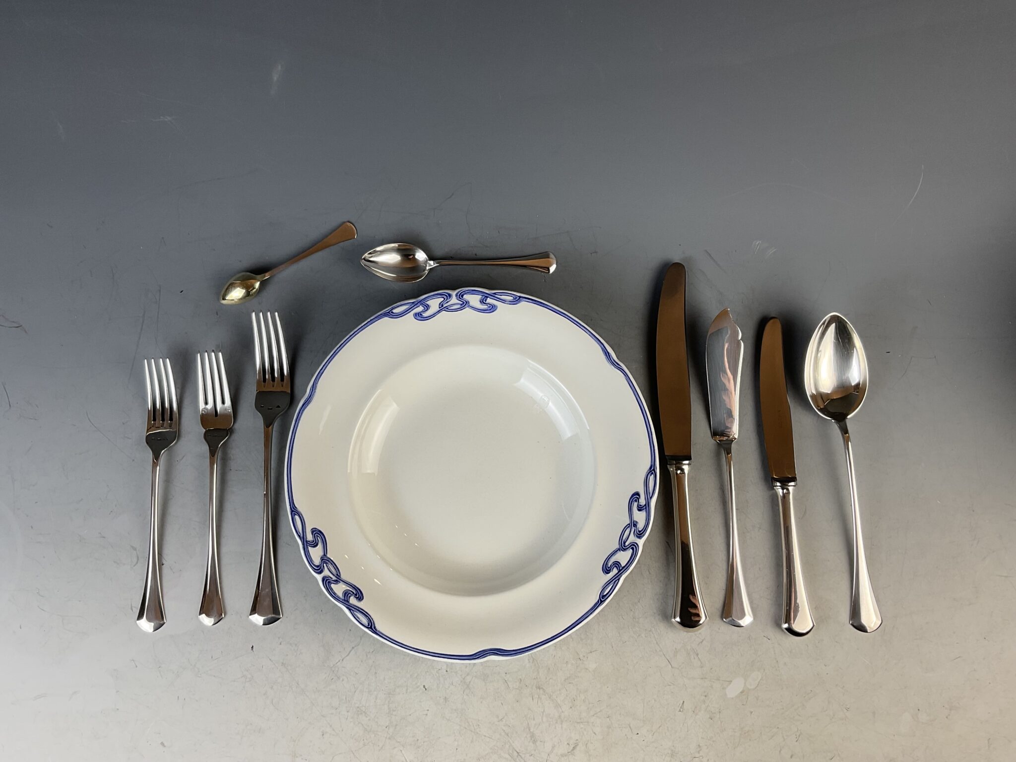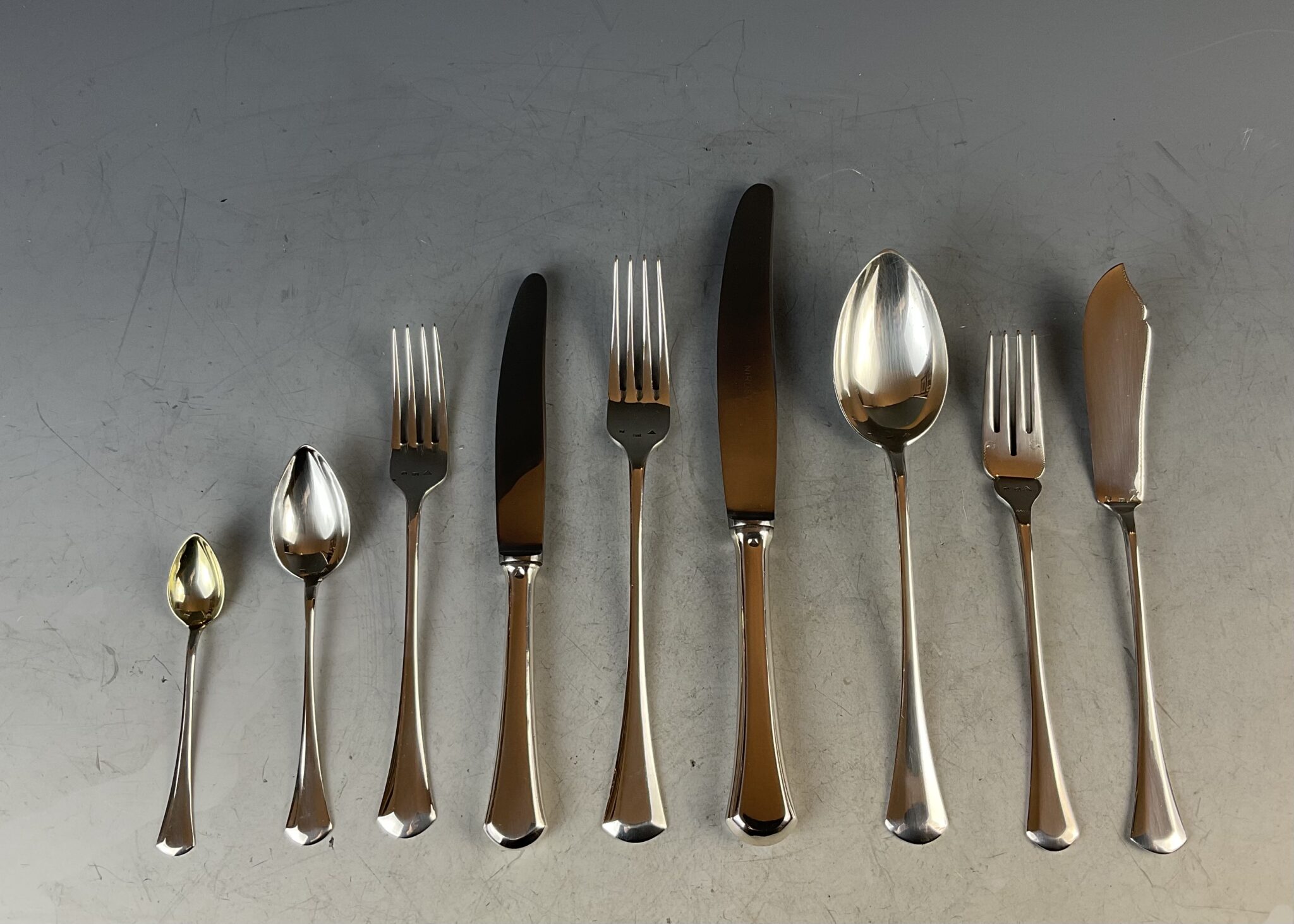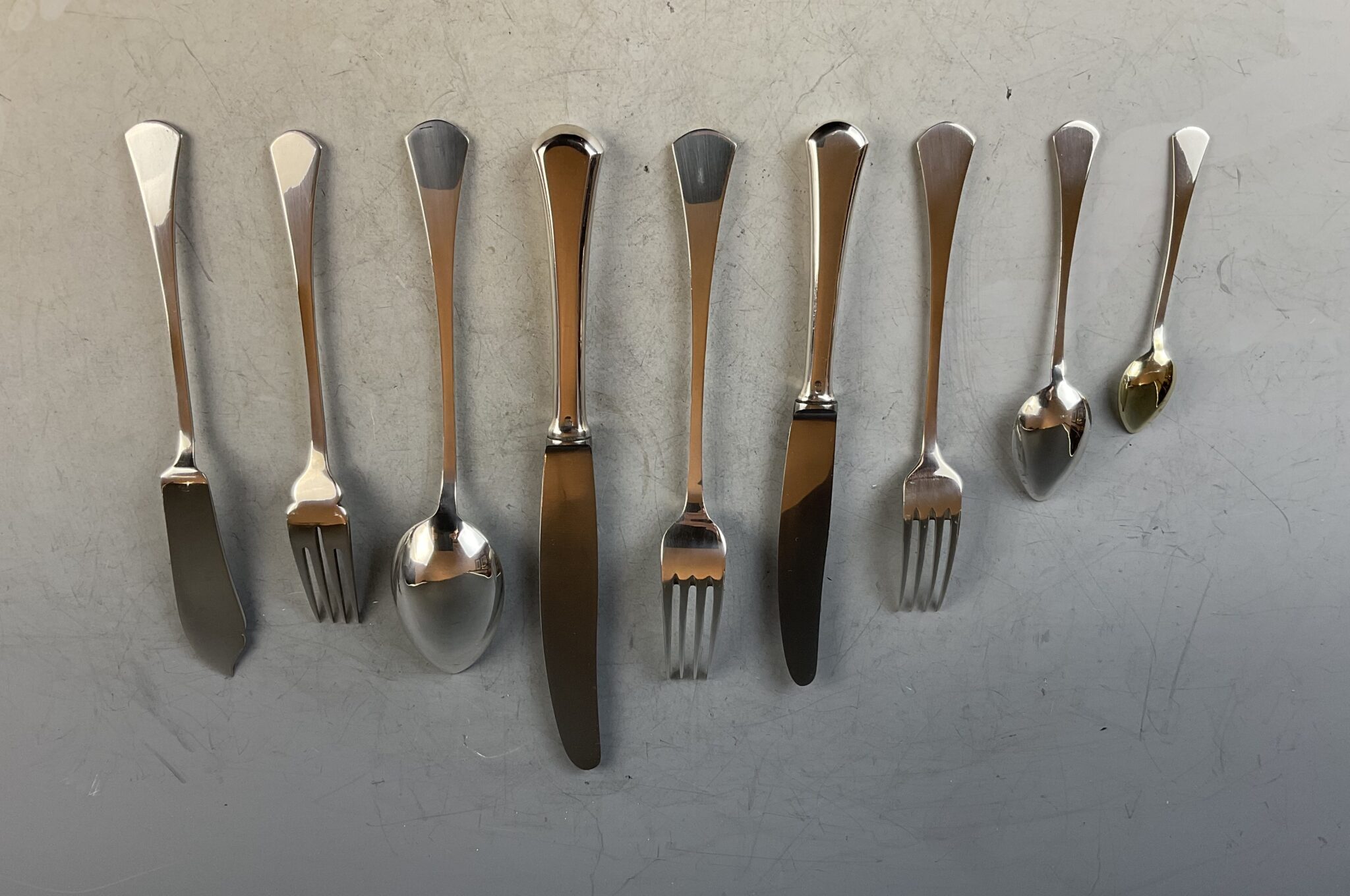 & 9 Vorlegern (Fleischgabel, Vorlegelöffel, Suppenschöpfer, Tortenheber, Wurstgabel, Zuckerzange, Milchschöpfer und 2 Fischvorlegern)