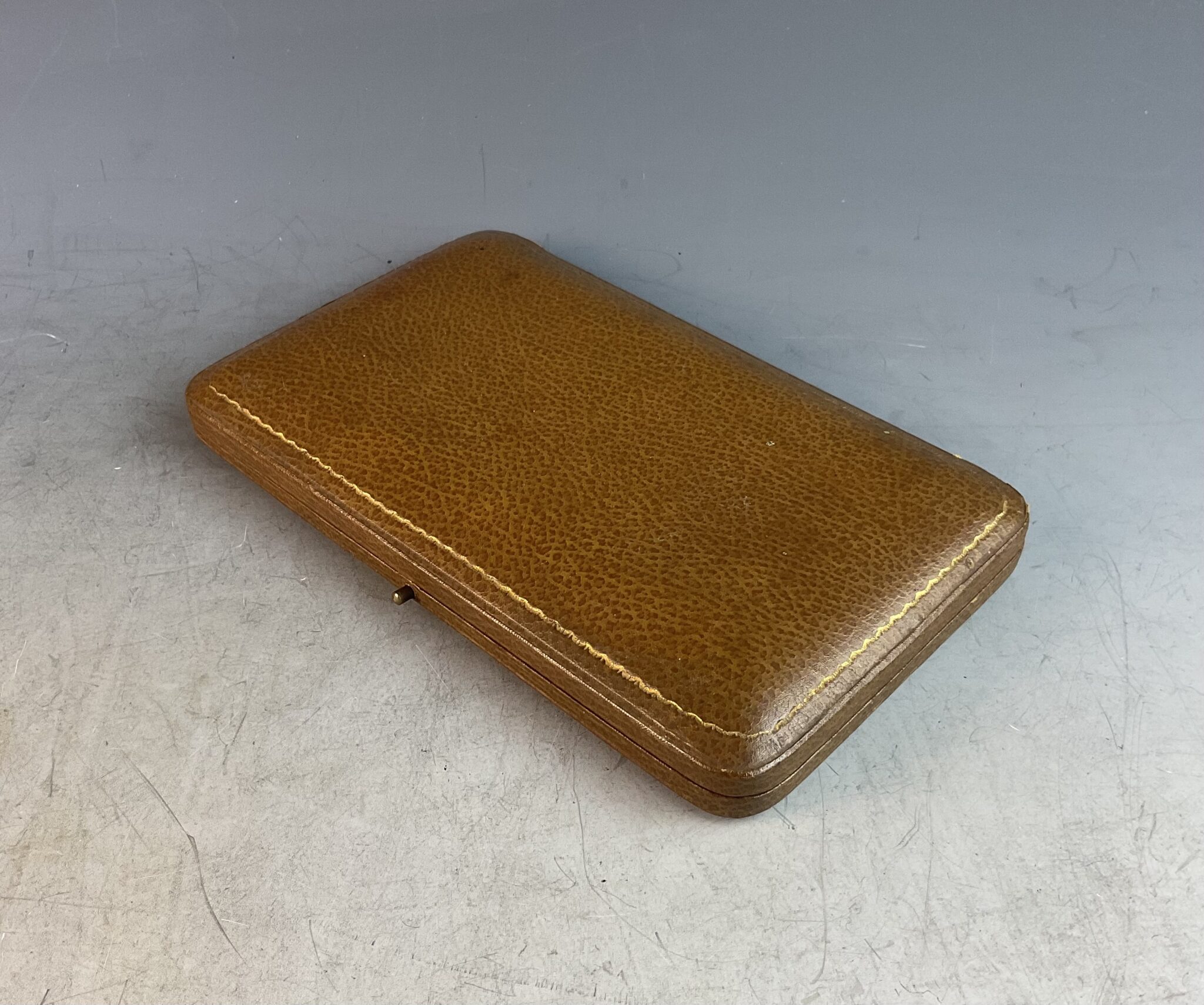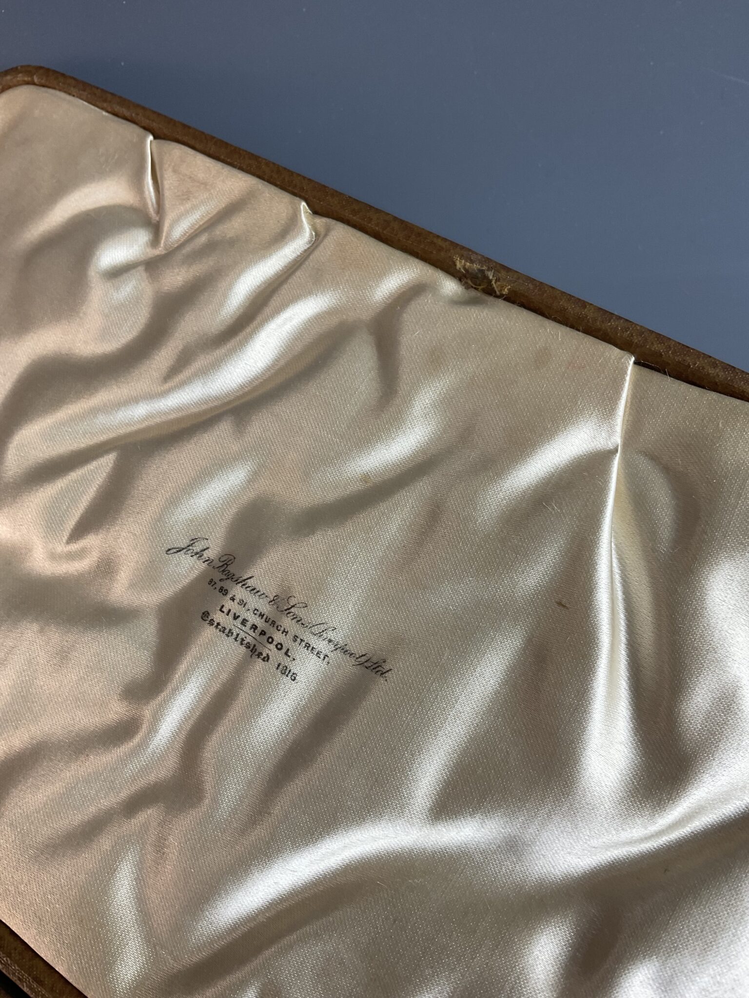 Silber, Abschluss mit Palmettendekor mit buntem Email, gemarkt mit schreitendem Löwen, Birminghamer Beschauzeichen Anker, Jahresbuchstabe für 1925,  unidentifizierte Meistermarke, in originalem Formetui