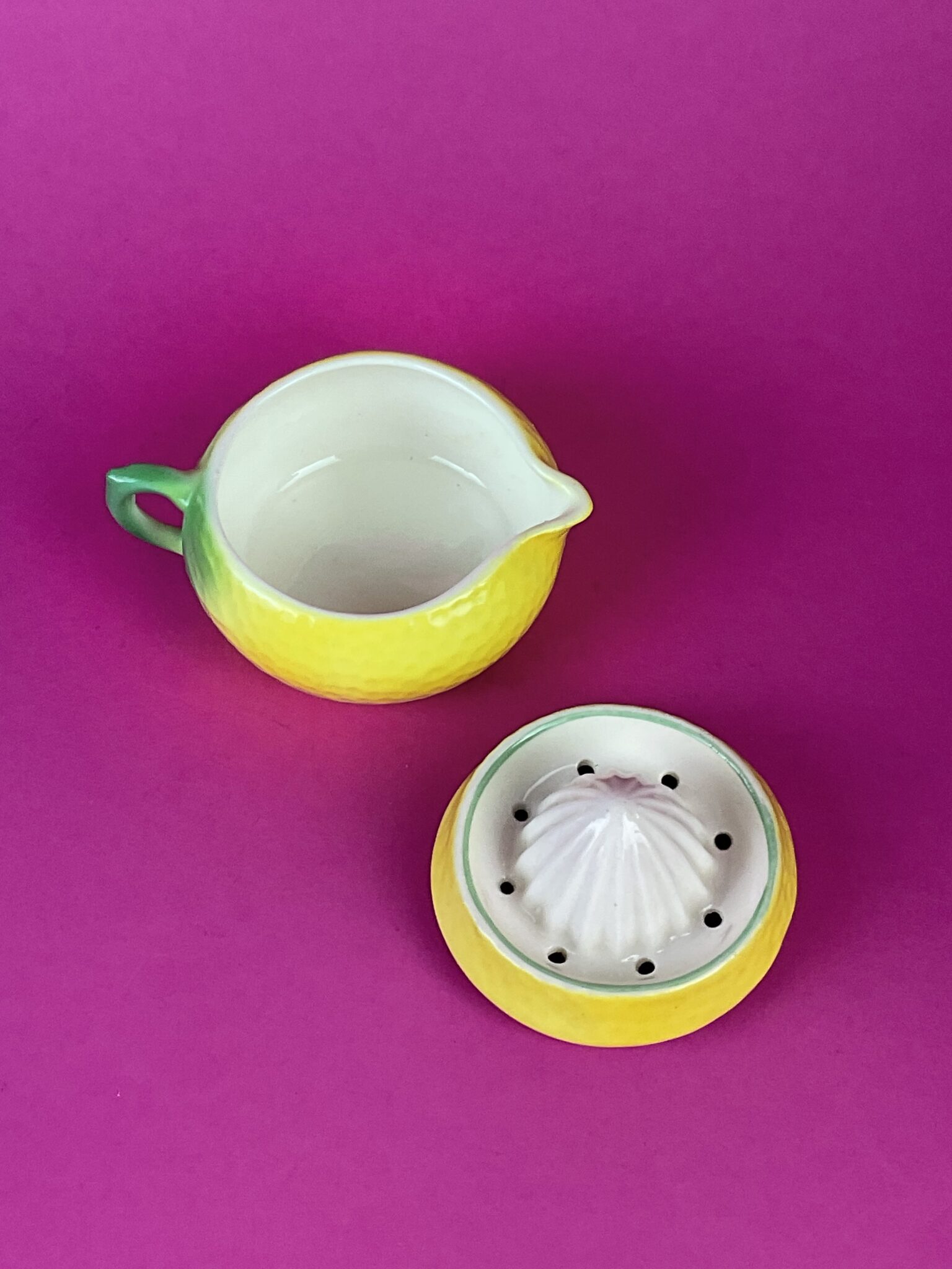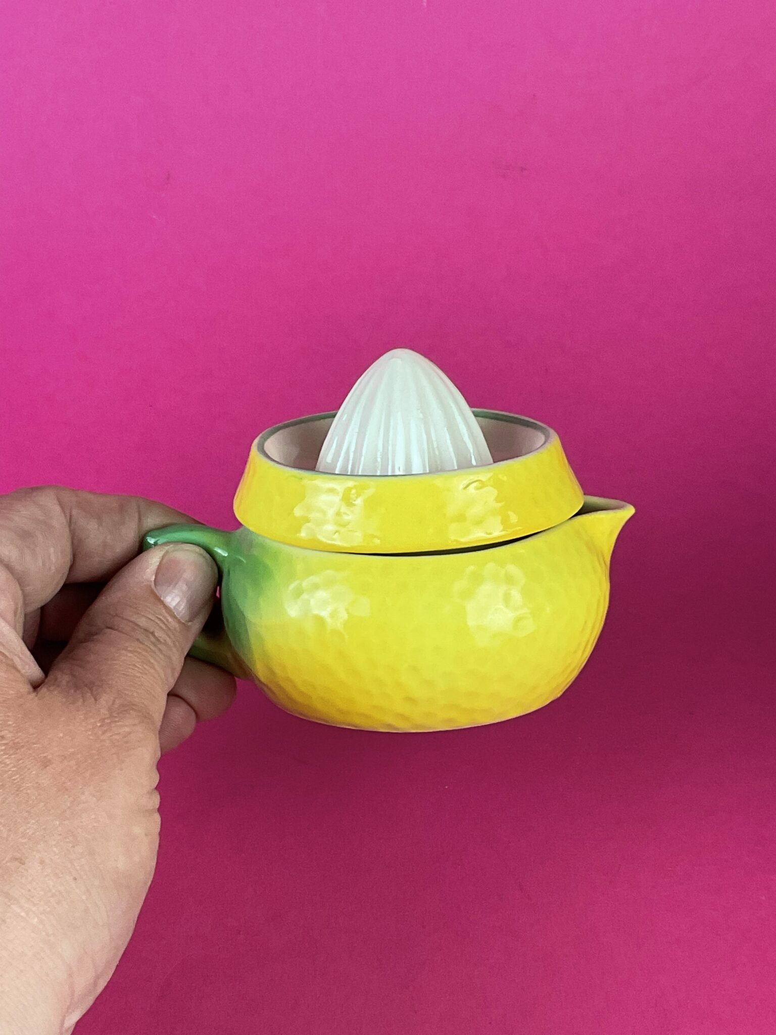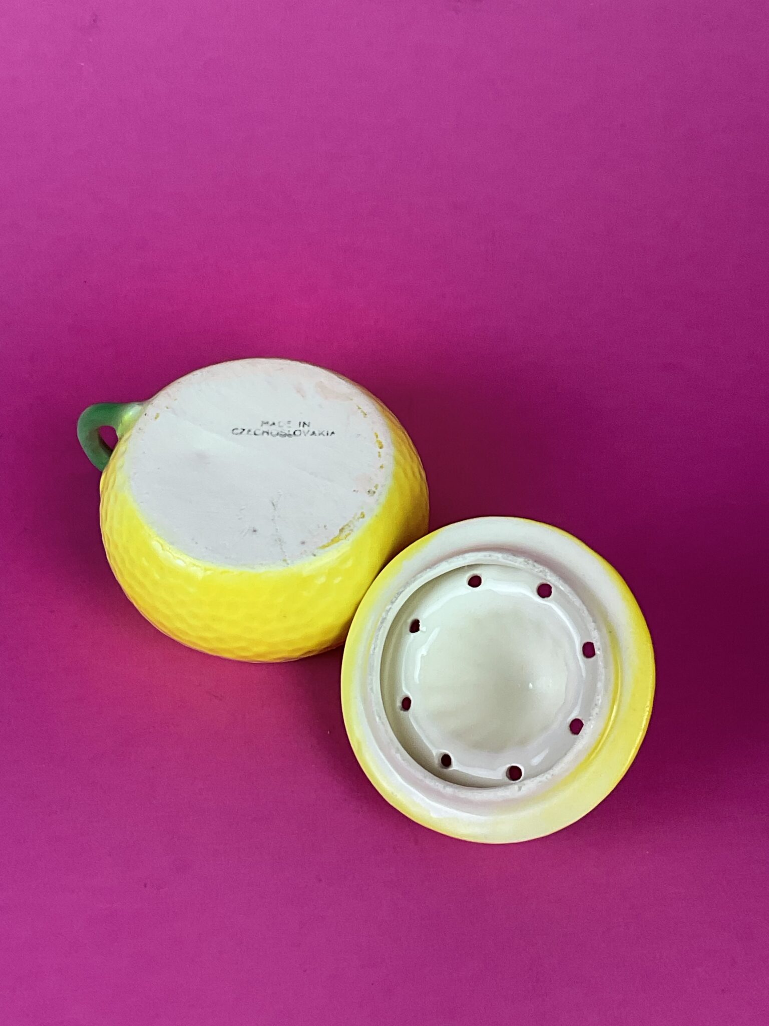 Keramik, bunt glasiert, in Gestalt einer Zitrone, unten gemarkt in Schwarz „Made in Czechoslovakia“, tadelloser Erhaltungszustand