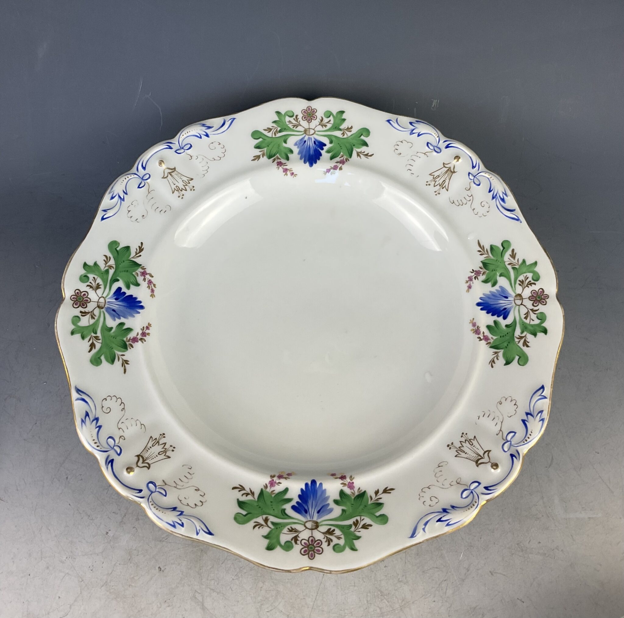 Porzellan, glasiert, geschwungene Fahne mit grün-blauem Dekor, glatter Spiegel, gemarkt mit eingepresstem Bindenschild, eingepresste Jahreszahl (1)853, eingepresster Weissdreher., tadelloser Erhaltungszustand mit minimalen Gebrauchsspuren