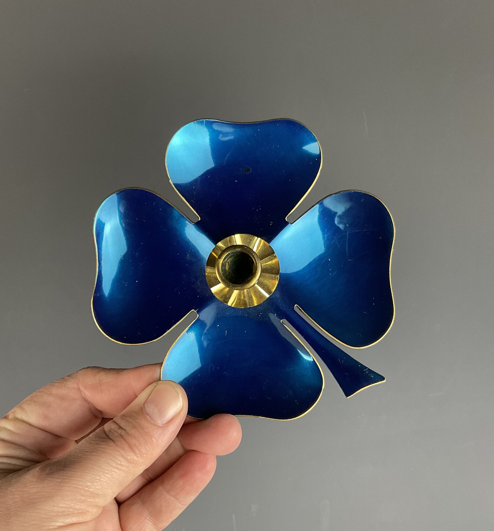 Messing, blau lackiert, in Gestalt eines Kleeblattes, ungemarkt, minimale Altersspuren