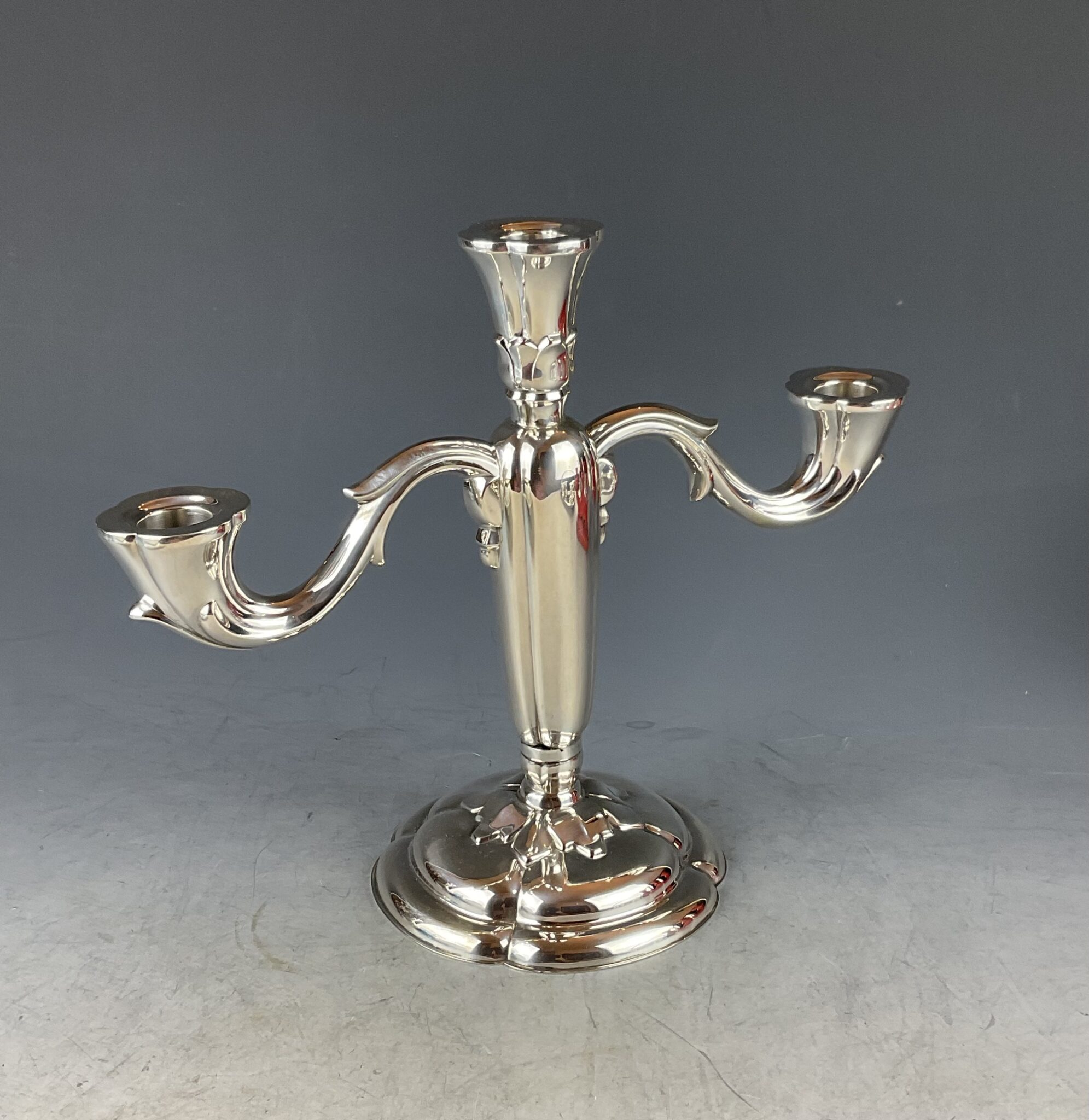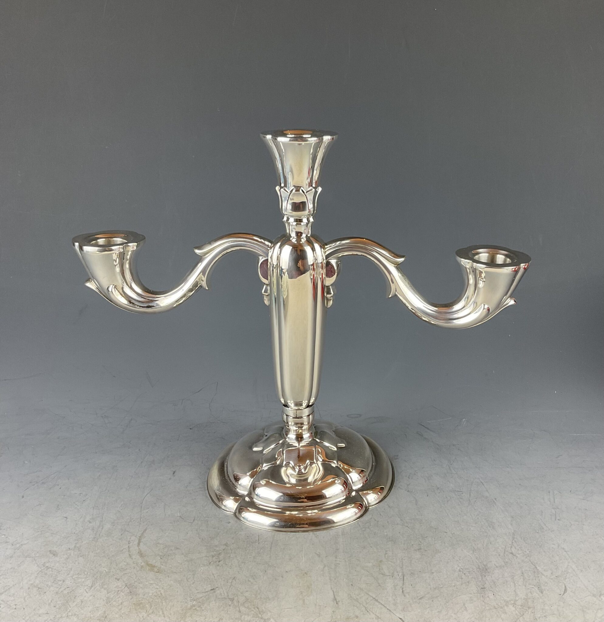 Dreiflammiger, silberner Art Deco Kerzenleuchter