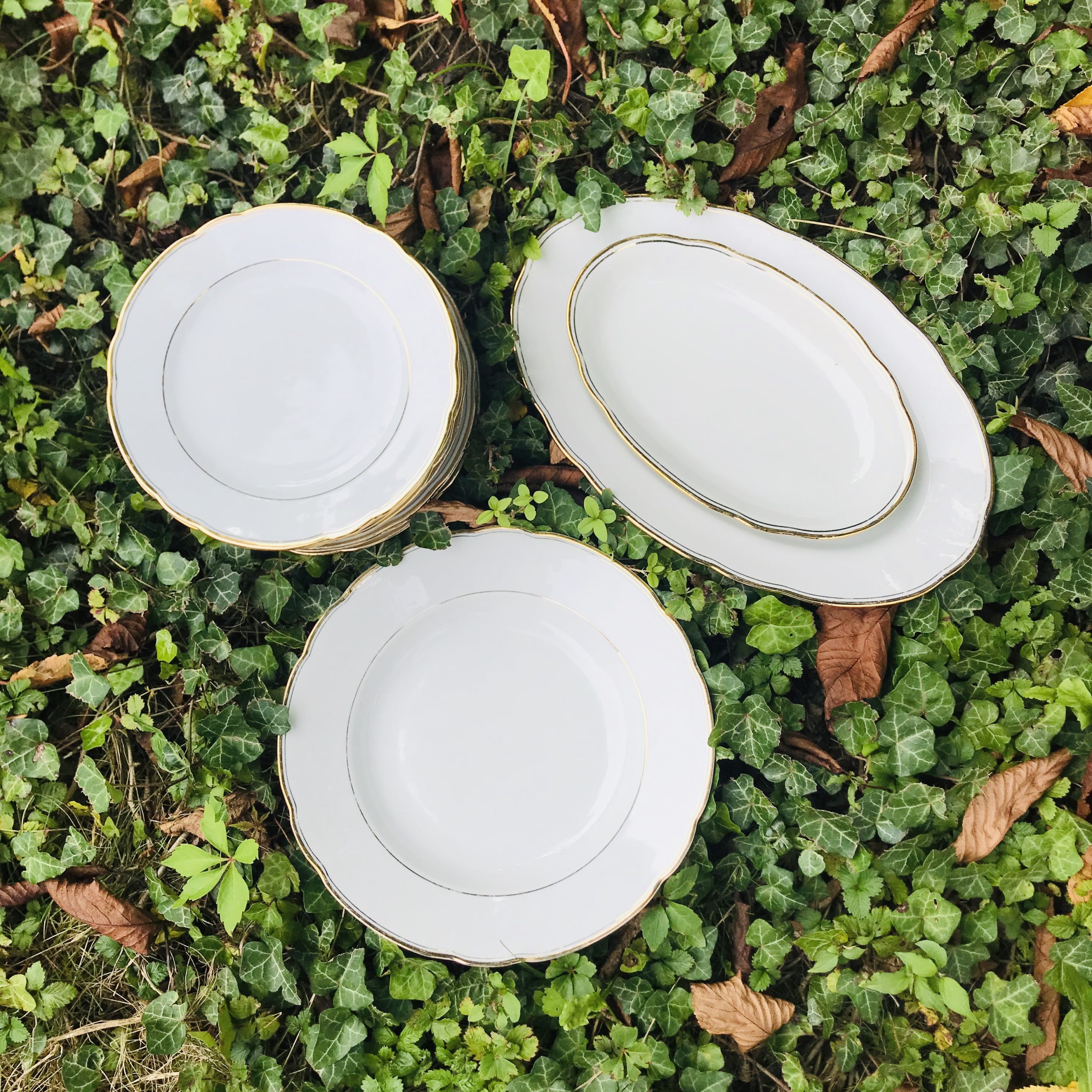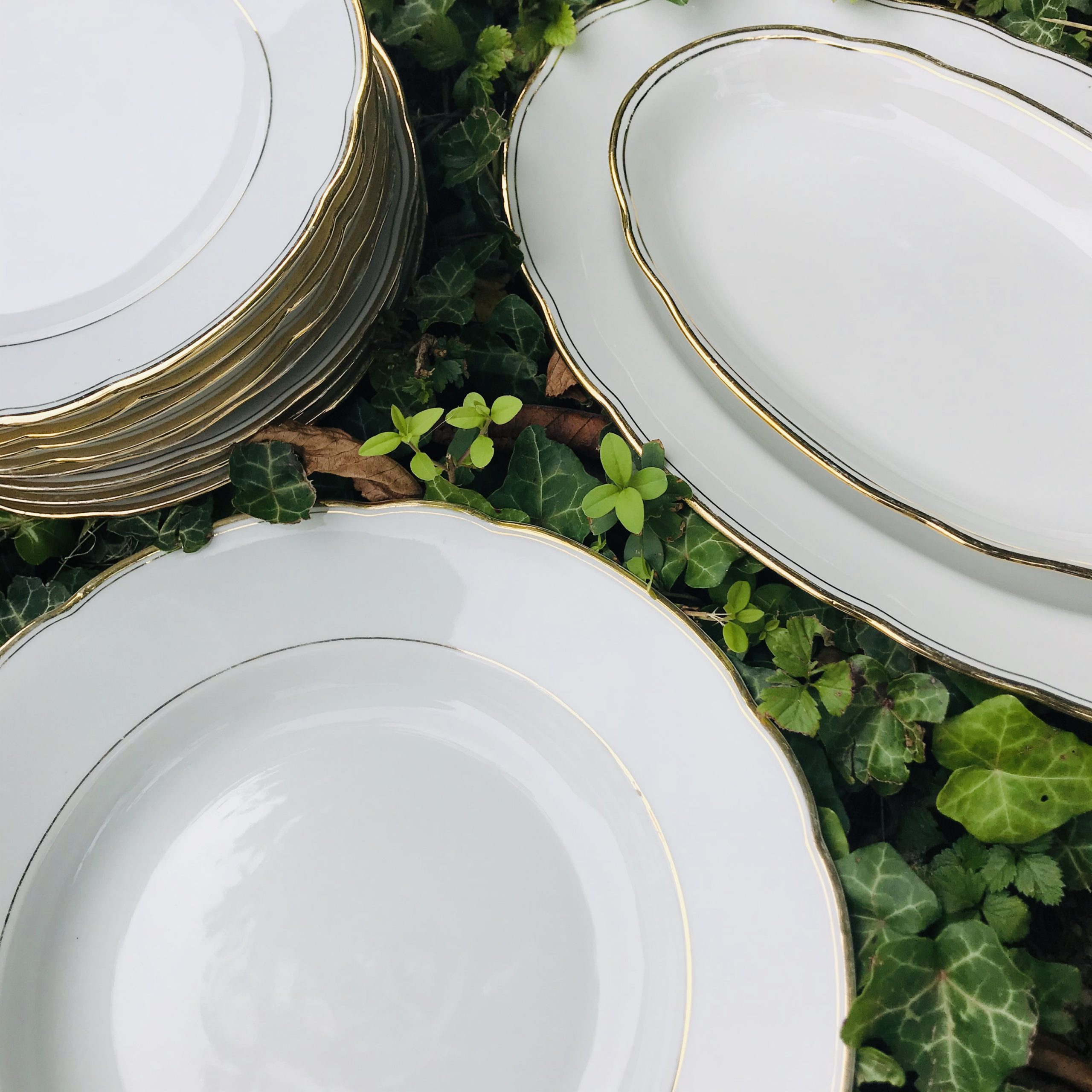 Zum Verkauf stehen Suppenteller (Dm 24 cm), Menuteller (Dm 24 cm) und Dessertteller (Dm 16 cm).