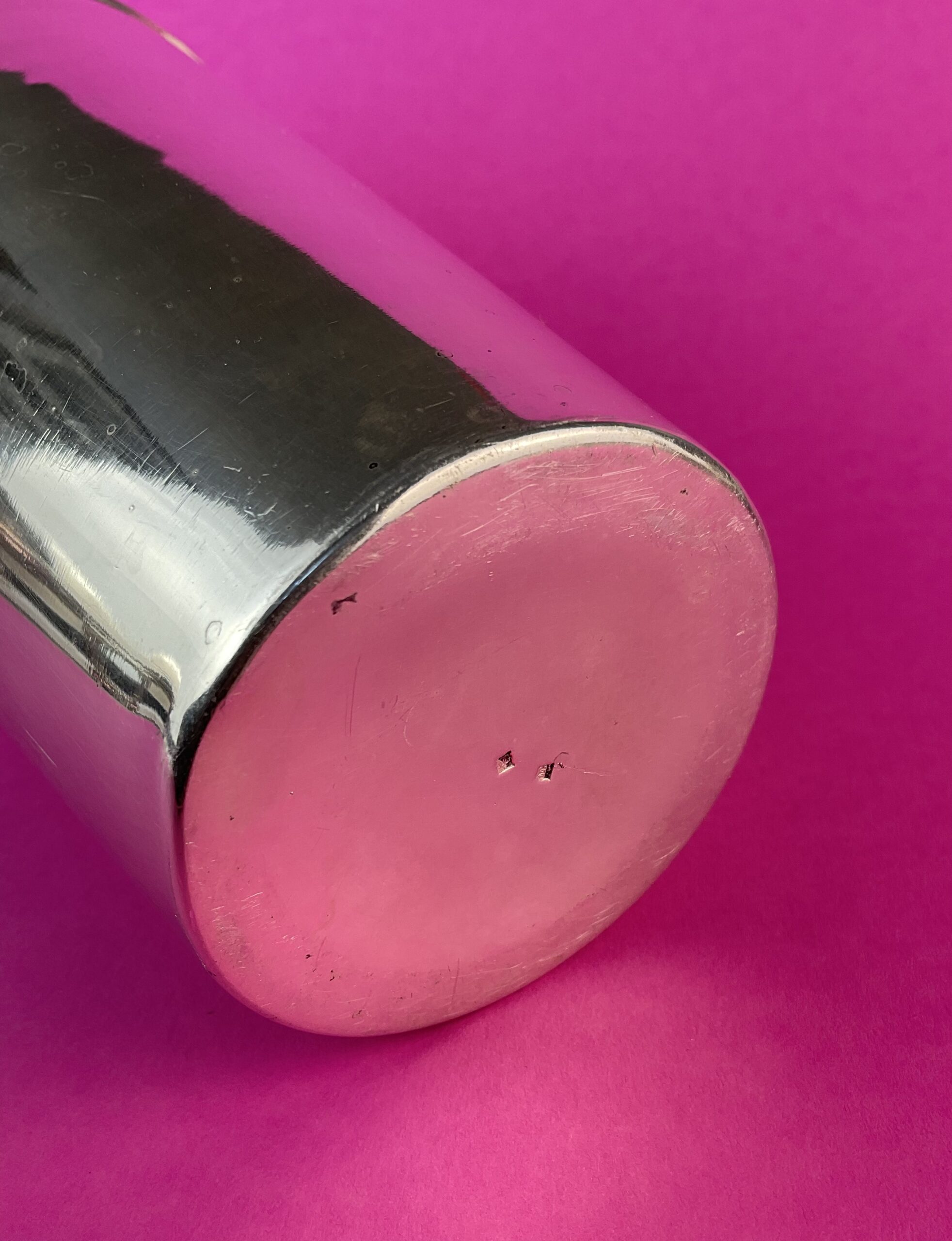 Alpacca, versilbert, glatte Wandung, abnehmbarer Deckel mit Siebeinsatz, Shaker am Boden gemarkt mit französischer Herstellermarke „PARIS“, tadelloser, handpolierter Erhaltungszustand