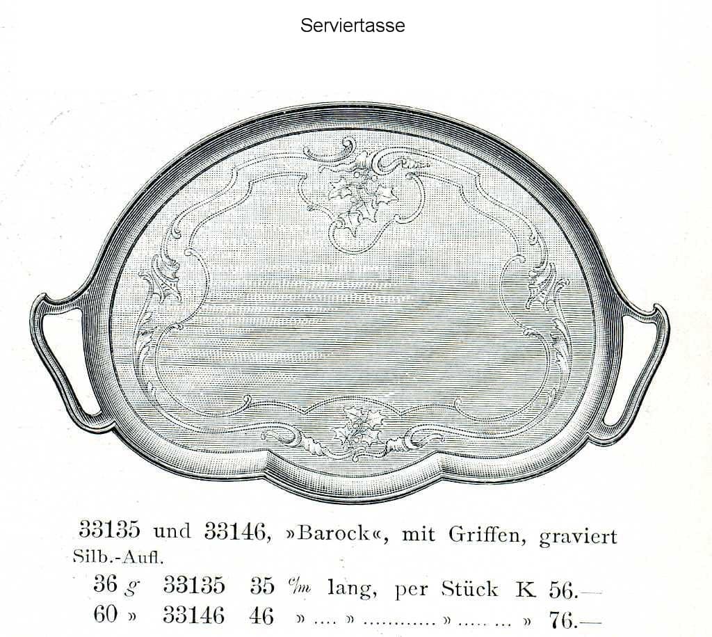 siehe Verkaufskatalog der Fa. Berndorf, 1911, Modellnummer 33146 Serviertasse mit Griffen „Barock“
