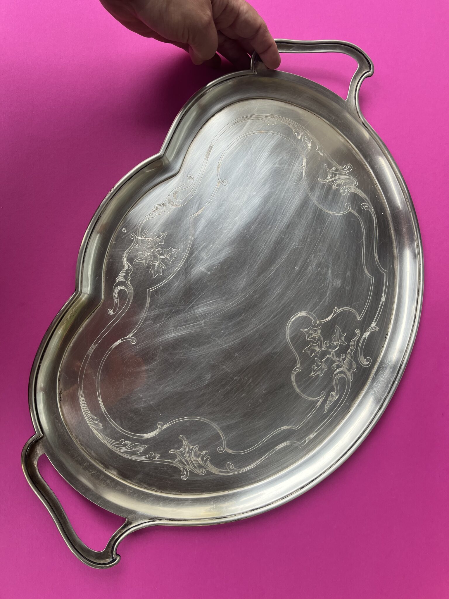 Großes versilbertes Jugendstil Henkeltablett, Fa. Berndorf, um 1900