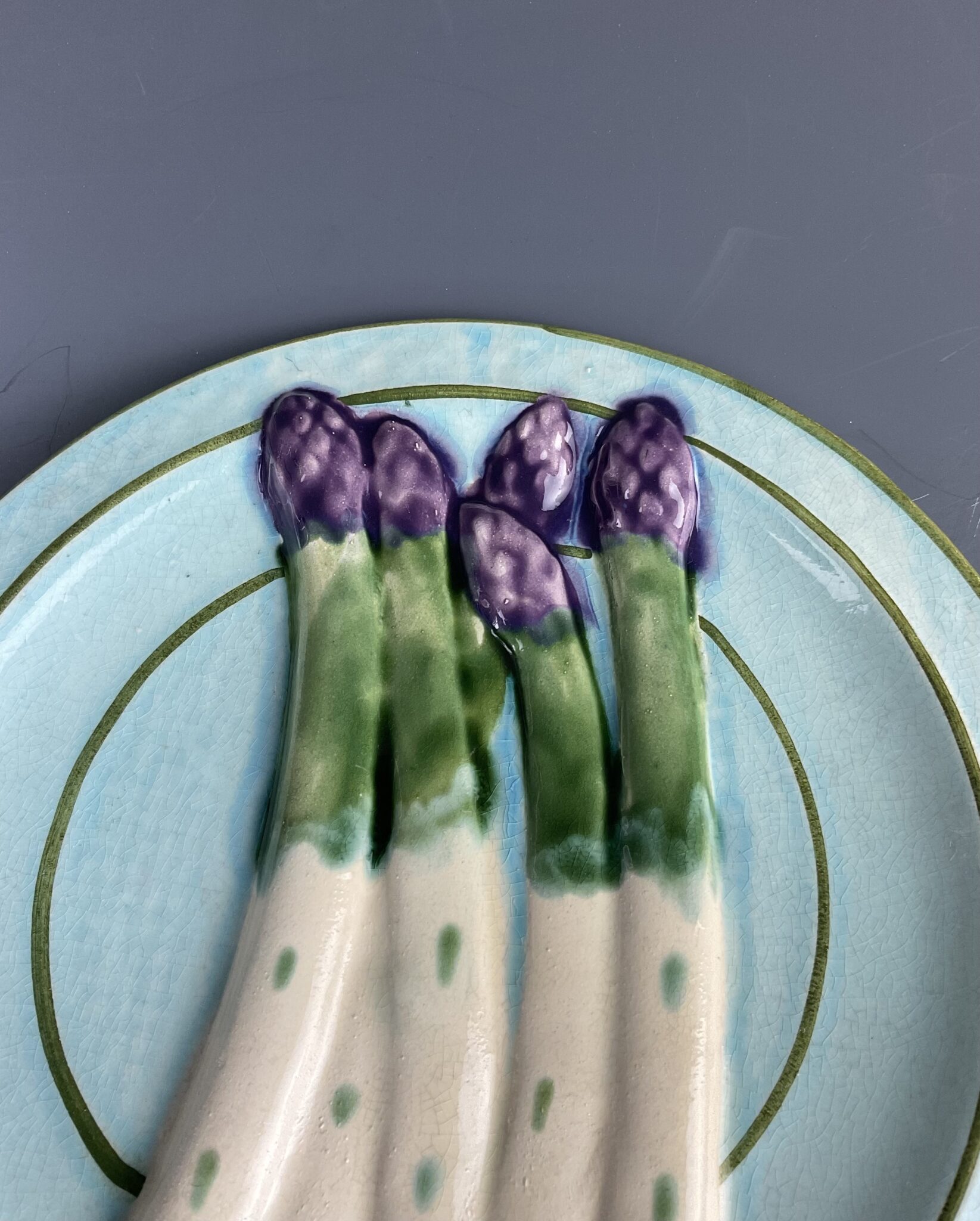 Historismus Barbotine Spargelteller, Frankreich, um 1880