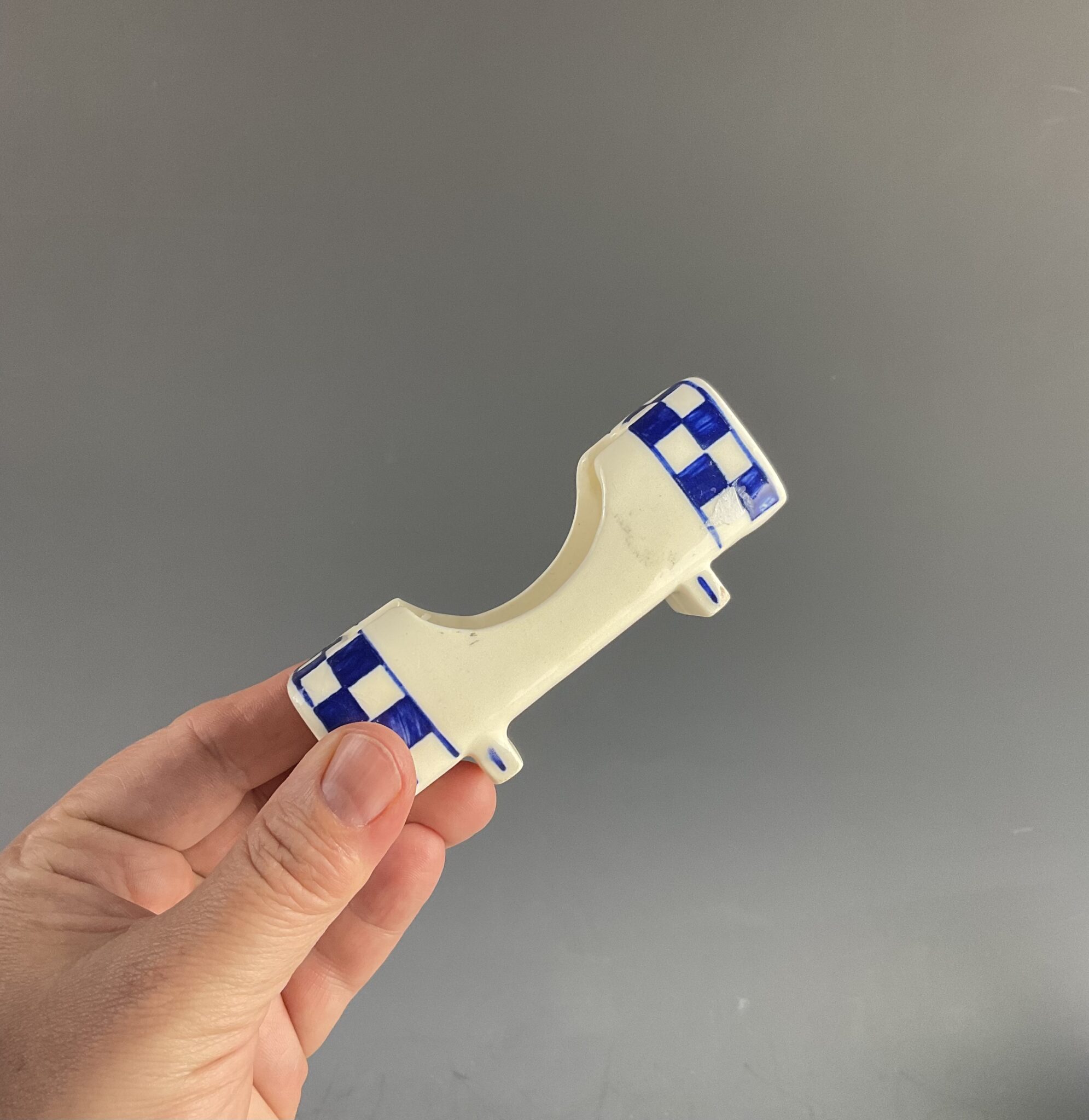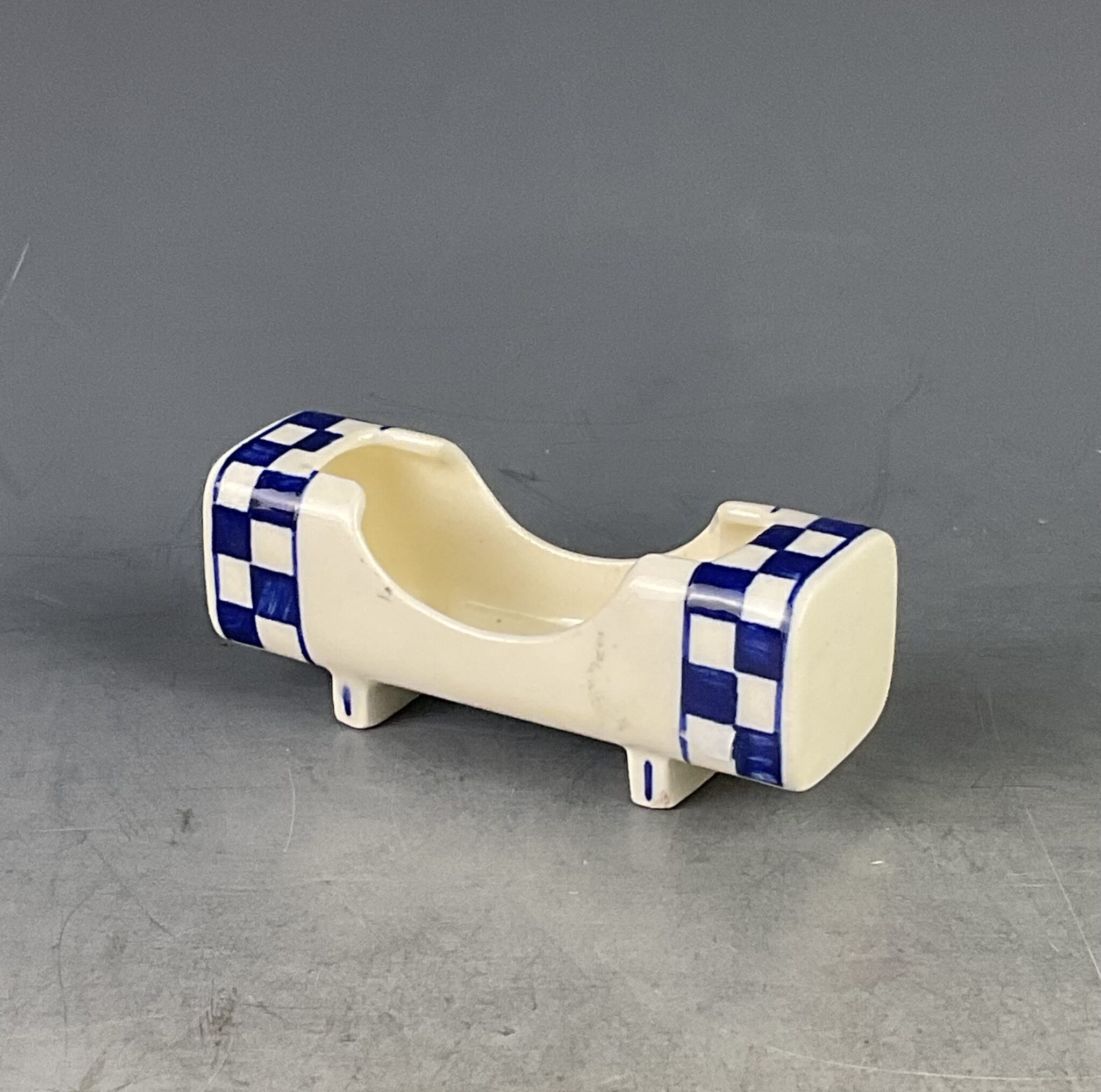 Keramik, farblos glasiert, Jugendstil Dekor mit blauen Quadraten, ungemarkt, tadelloser Erhaltungszustand