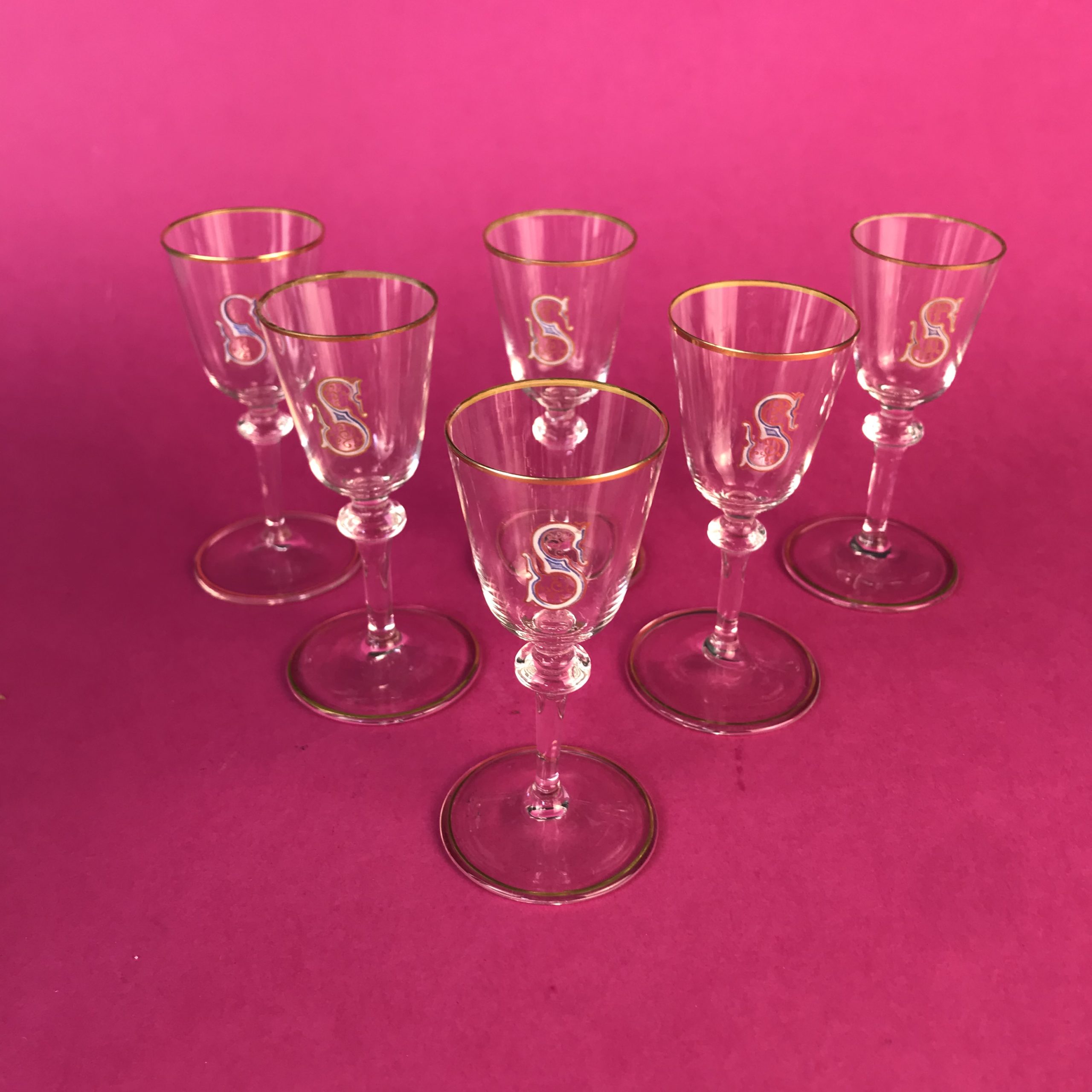 Annettes Etikette. Dieses Likörservice der Firma Lobmeyr ist aus hauchdünnem Mousselinglas, welches mich immer wieder in seiner Robustheit überrascht. Das stolze Besitzermongramm mit der Initiale „S“ wird schnell einen neuen Bewunderer finden.