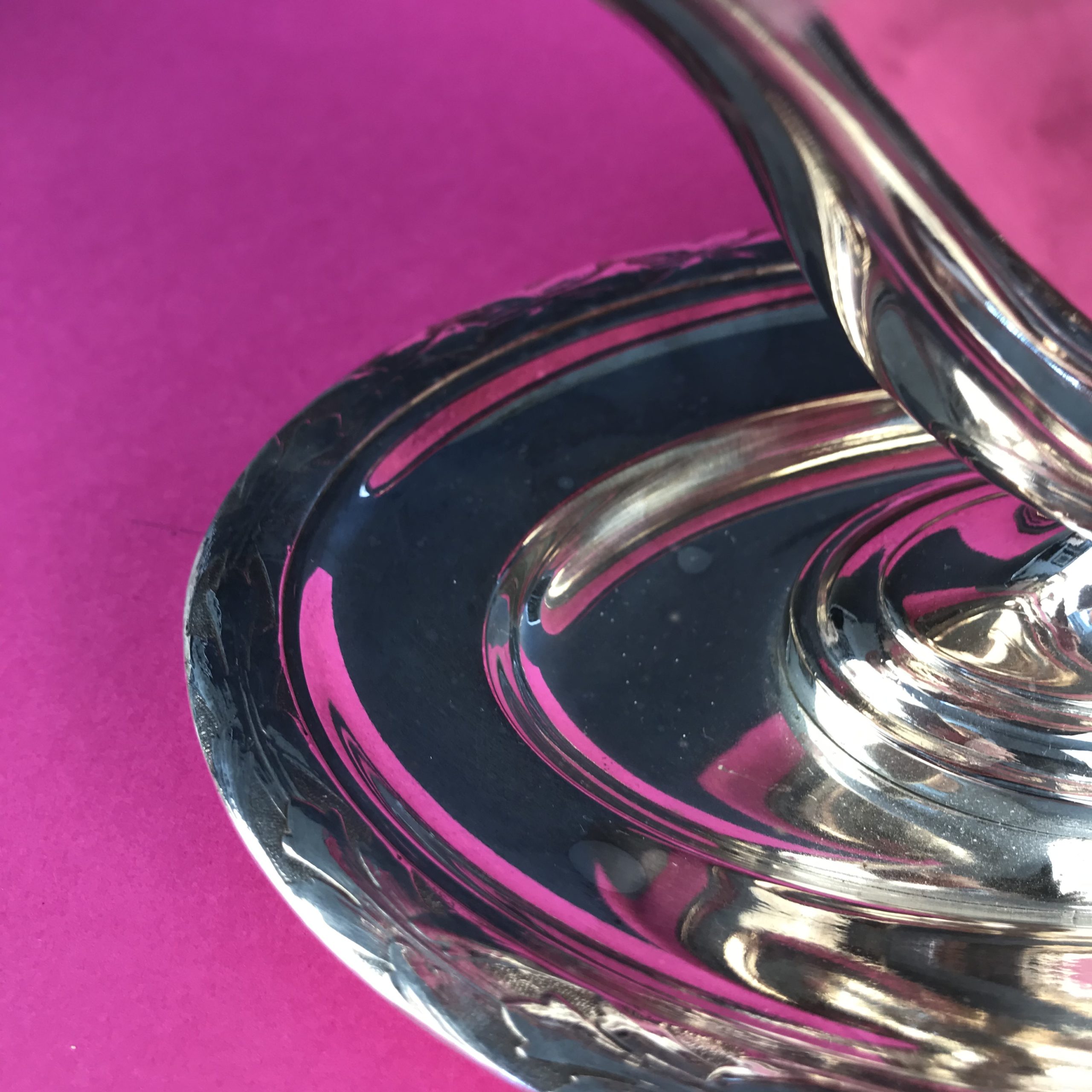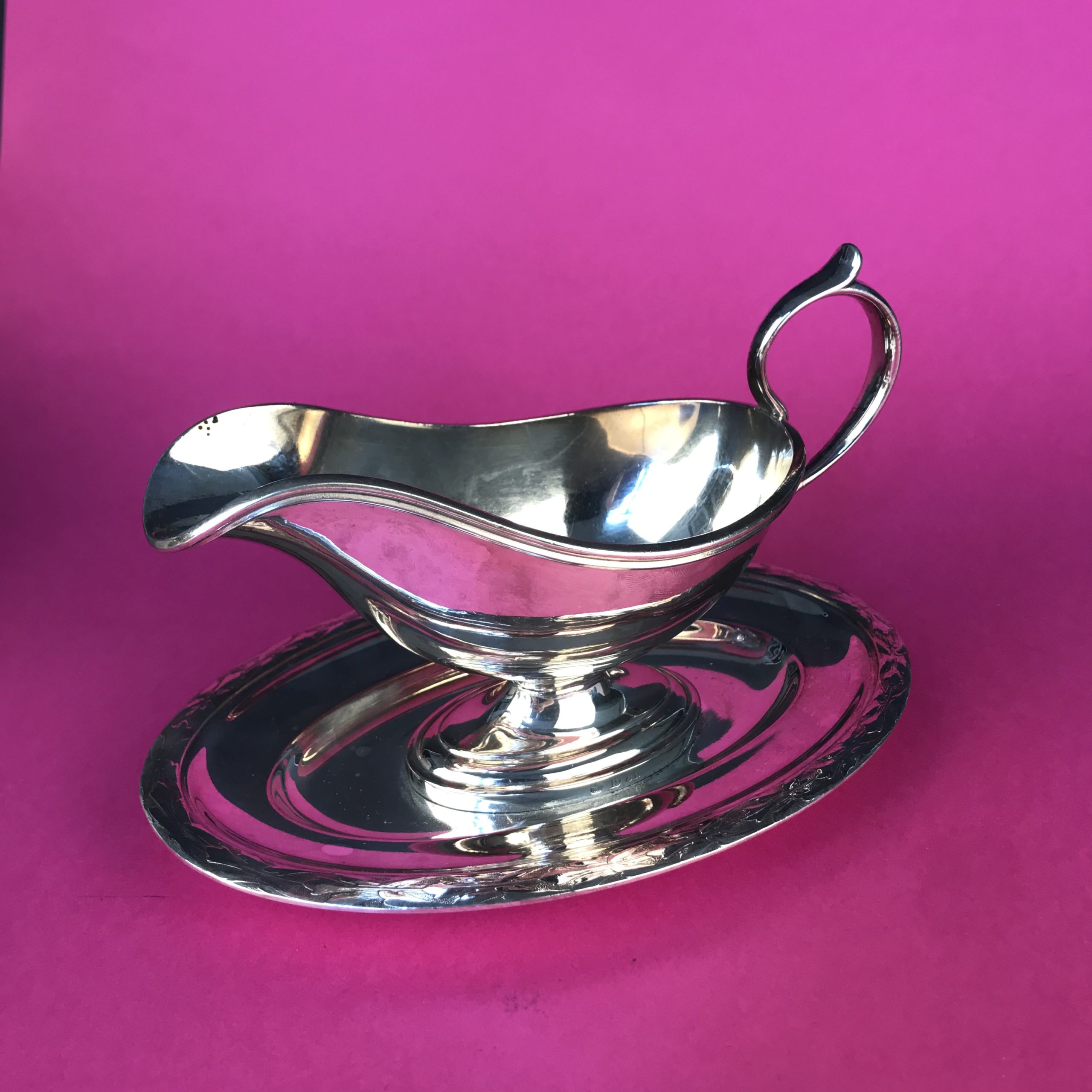 Kleine, versilberte Saucière mit Lorbeerblattdekor