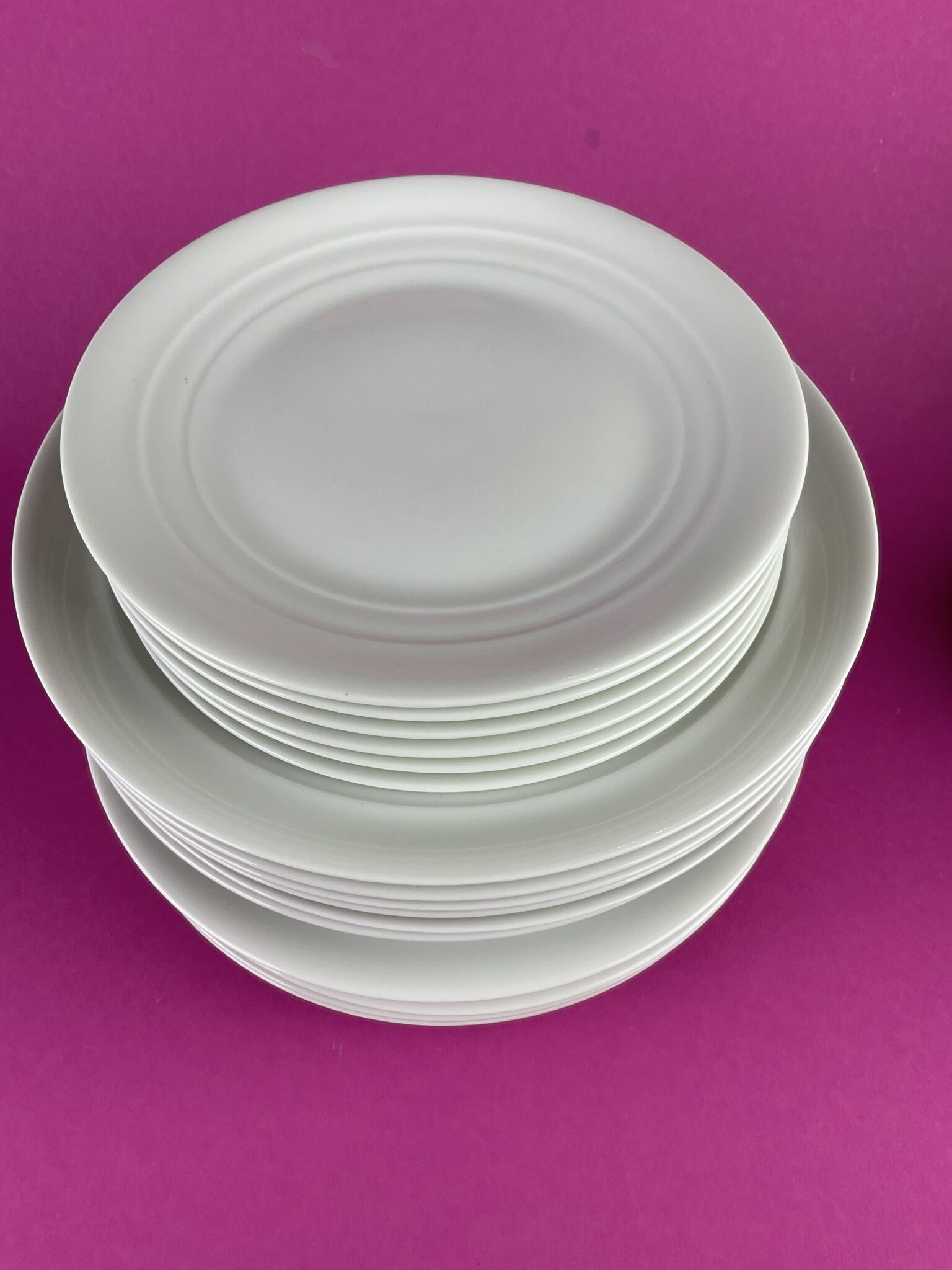 Porzellan, weiss glasiert, Service bestehend aus 6 Suppentellern, 6 Menutellern und 6 Desserttellern, alle Teller gemarkt mit bekrönter Manufakturmarke Augarten, blauer Bindenschild, tadelloser Erhaltungszustand