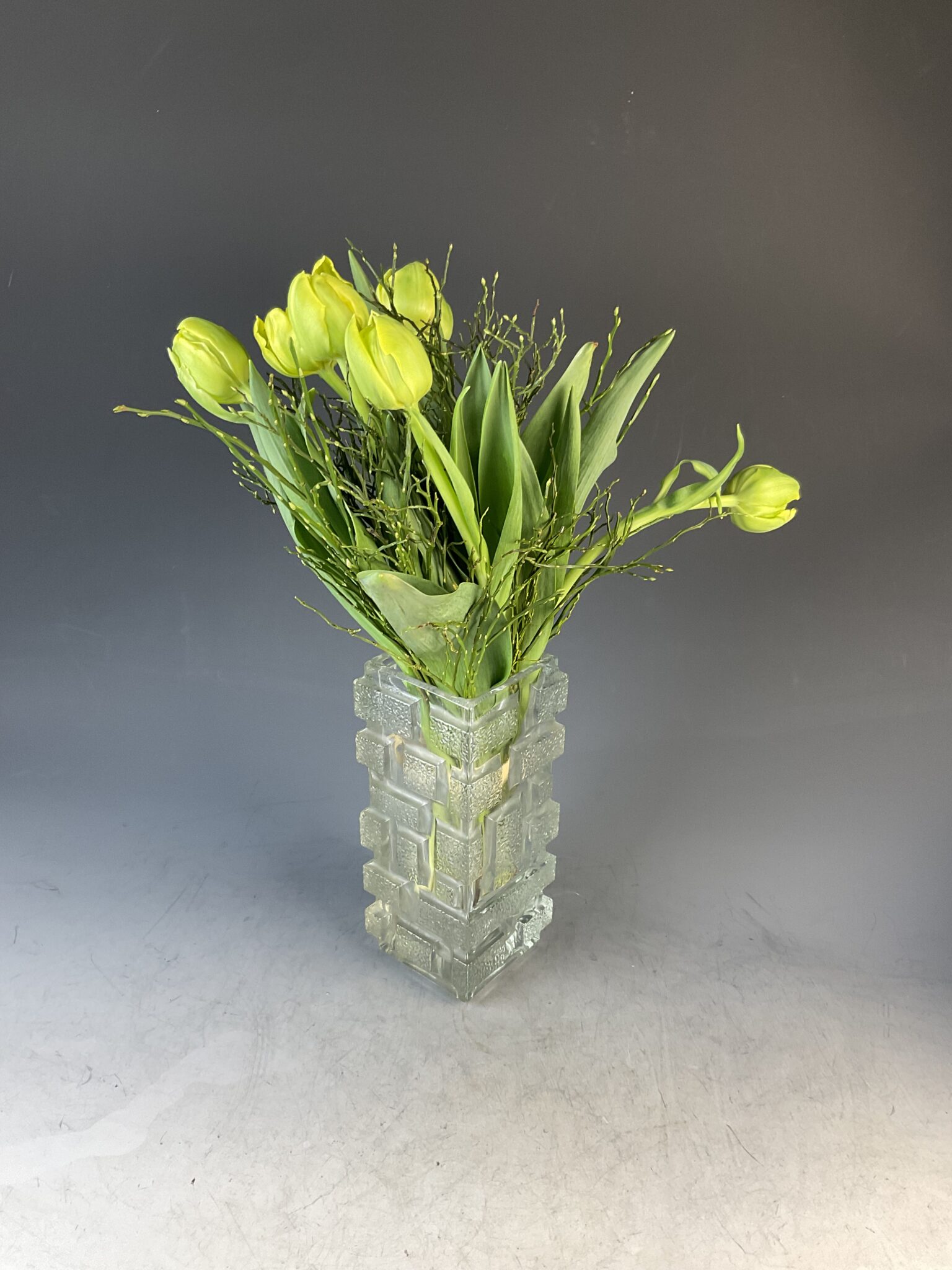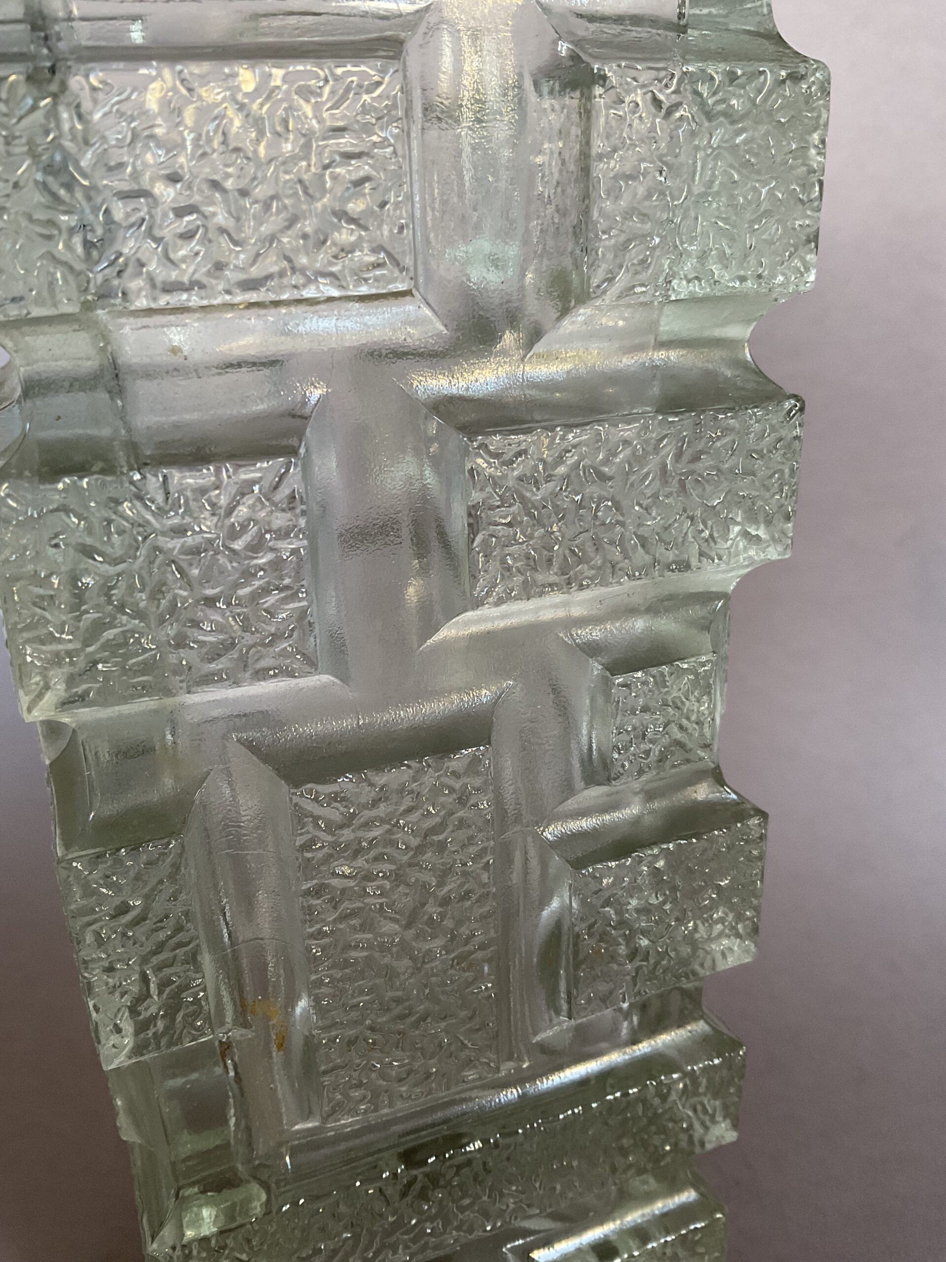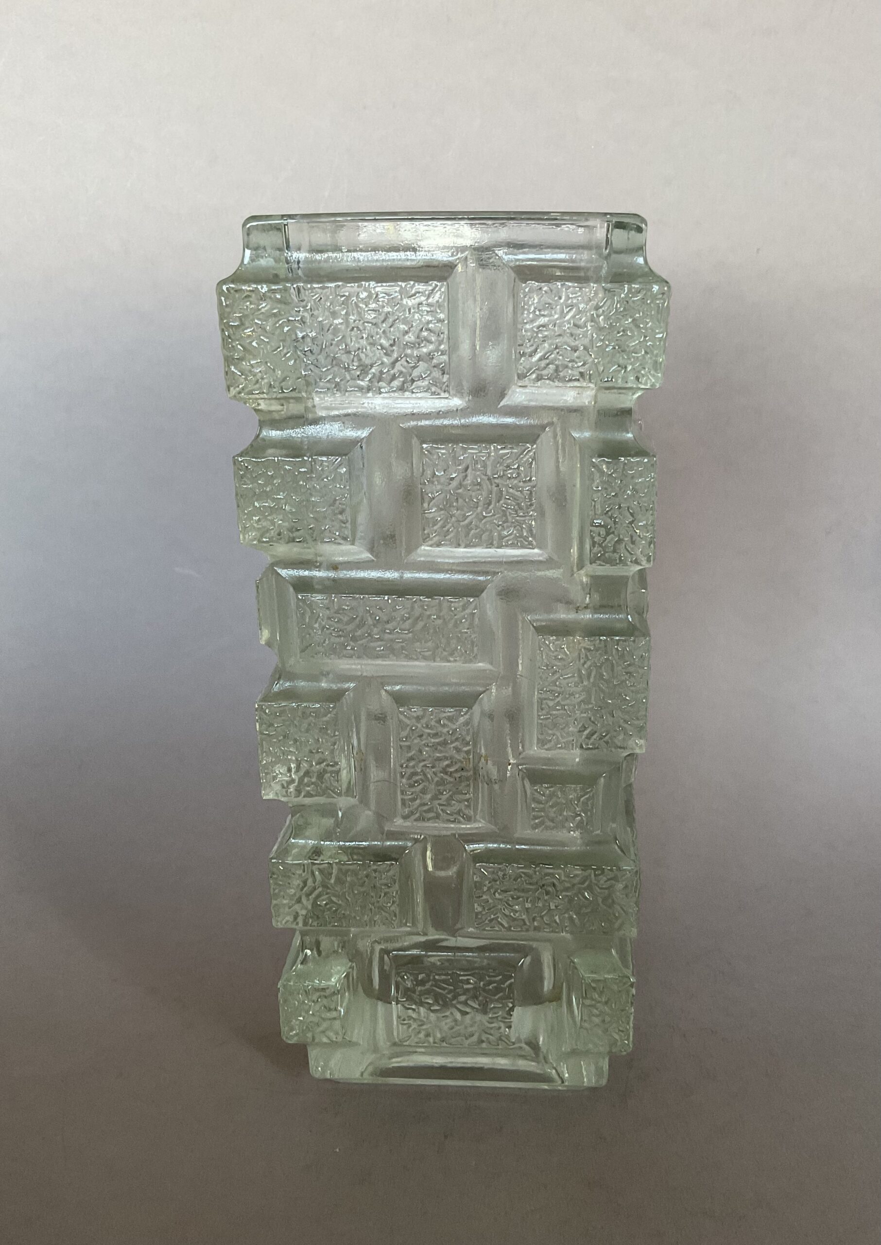 farbloses Pressglas, mit Wabenstruktur, quadratischer Grundriss, unsigniert