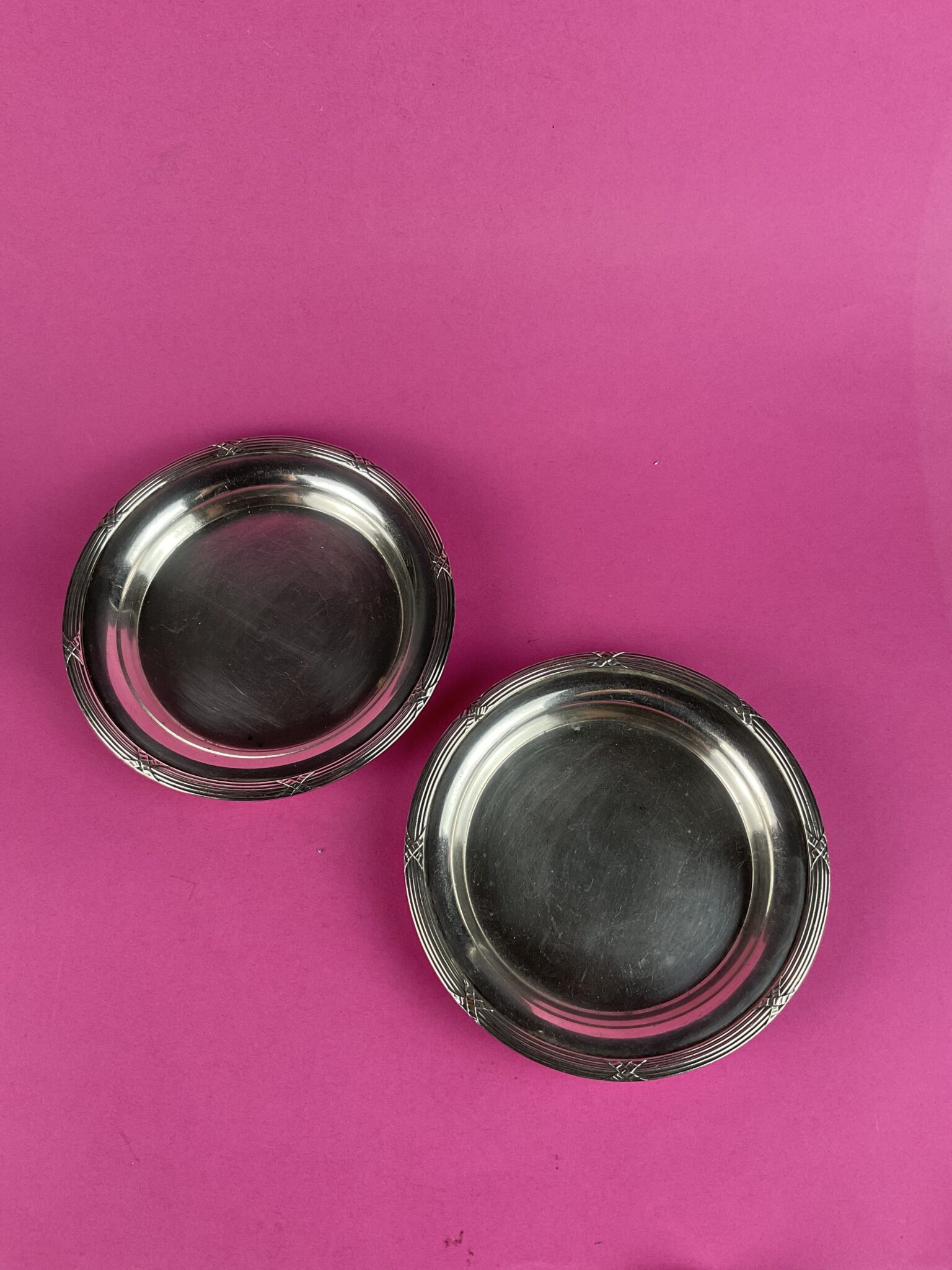 runde Untersetzer, Fahne mit Kreuzbanddekor „Rubans“, gemarkt mit französischer Herstellermarke, tadelloser Erhaltungszustand