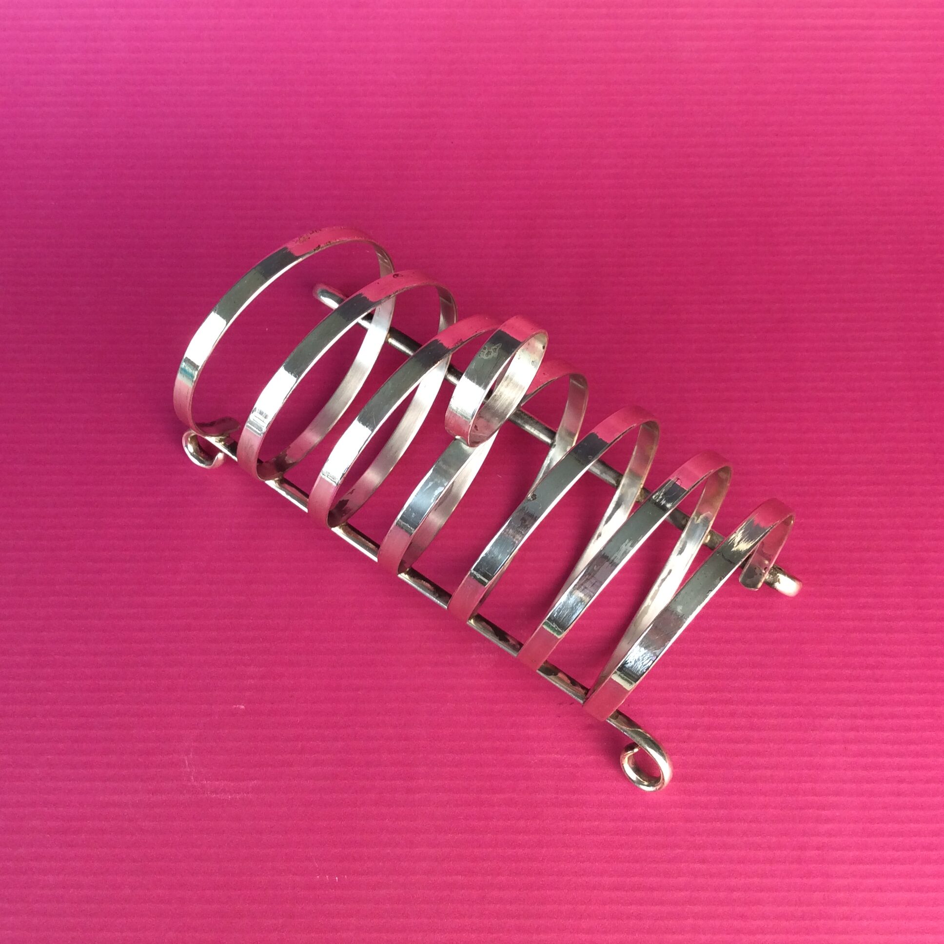 Annettes Etikette: Die Engländer sind die Pioniere der Tafelkultur, wenngleich sich die Bedeutung ihrer Kochkünste eher bescheiden ausmessen. Für den schlapprigen Toast wurde ein spezielles Tafelgerät erfunden, welches dem weichen Toastbrot sowohl im ungetoasteten als auch getoasteten Zustand Halt bieten. Dieses Toastrack wurde von WMF ausgeführt. In deutschsprachigen Firmenkatalogen der Jahrhundertwende wird dieses Tafelgerät als Brotschnittenträger bezeichnet.
