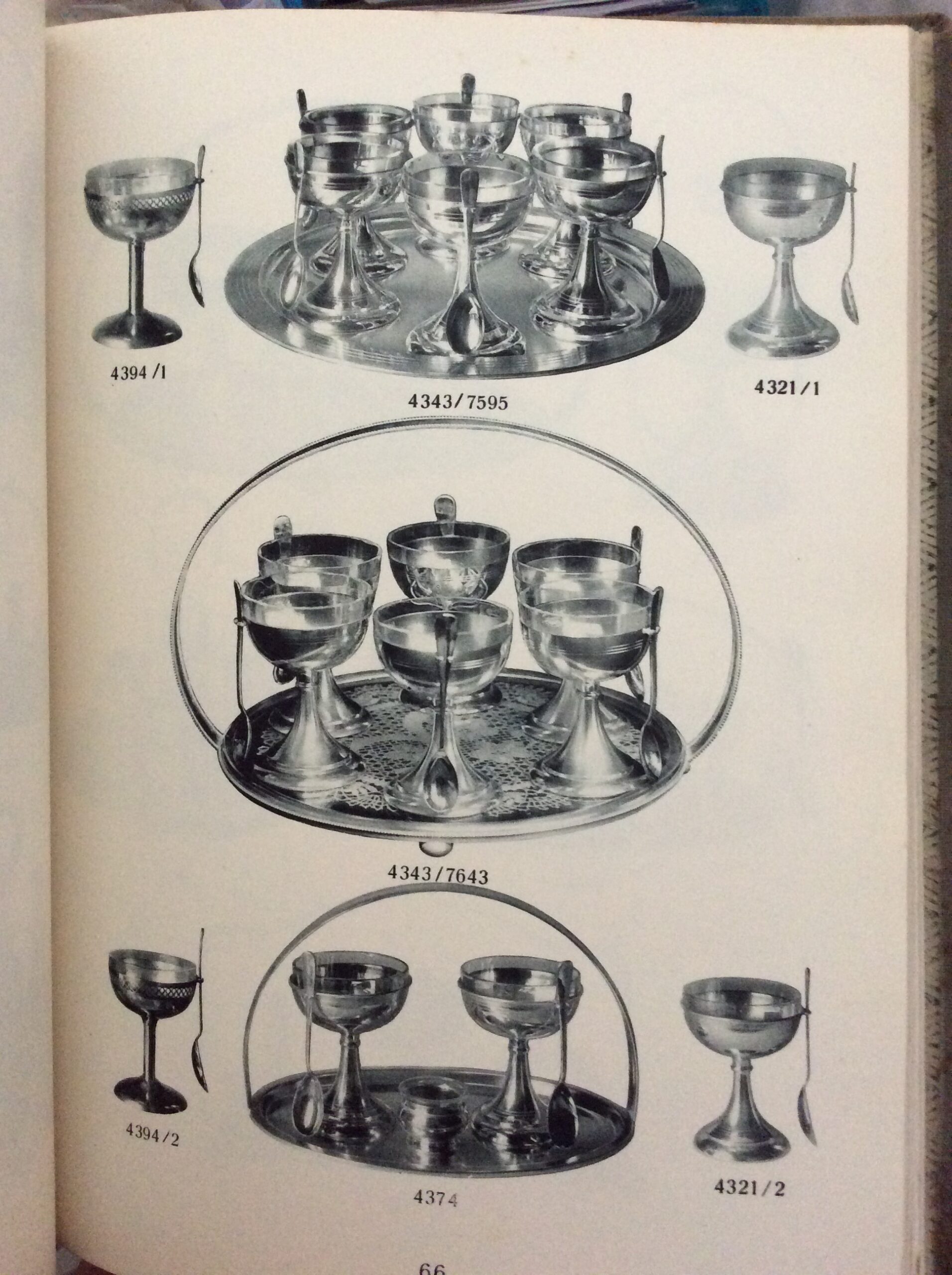 Zwei Pokale aus Alpacca, versilbert, farbloser Glaseinsatz mit Zapfen zwecks Arretierung, an der gebauchten Kuppa Haken für den Eierlöffel, dieser mit vergoldeter Lasche (beide vorhanden), Art Deco Facon, gemarkt mit Firmenmarke wehende Flagge, tadelloser, handpolierter Erhaltungszustand