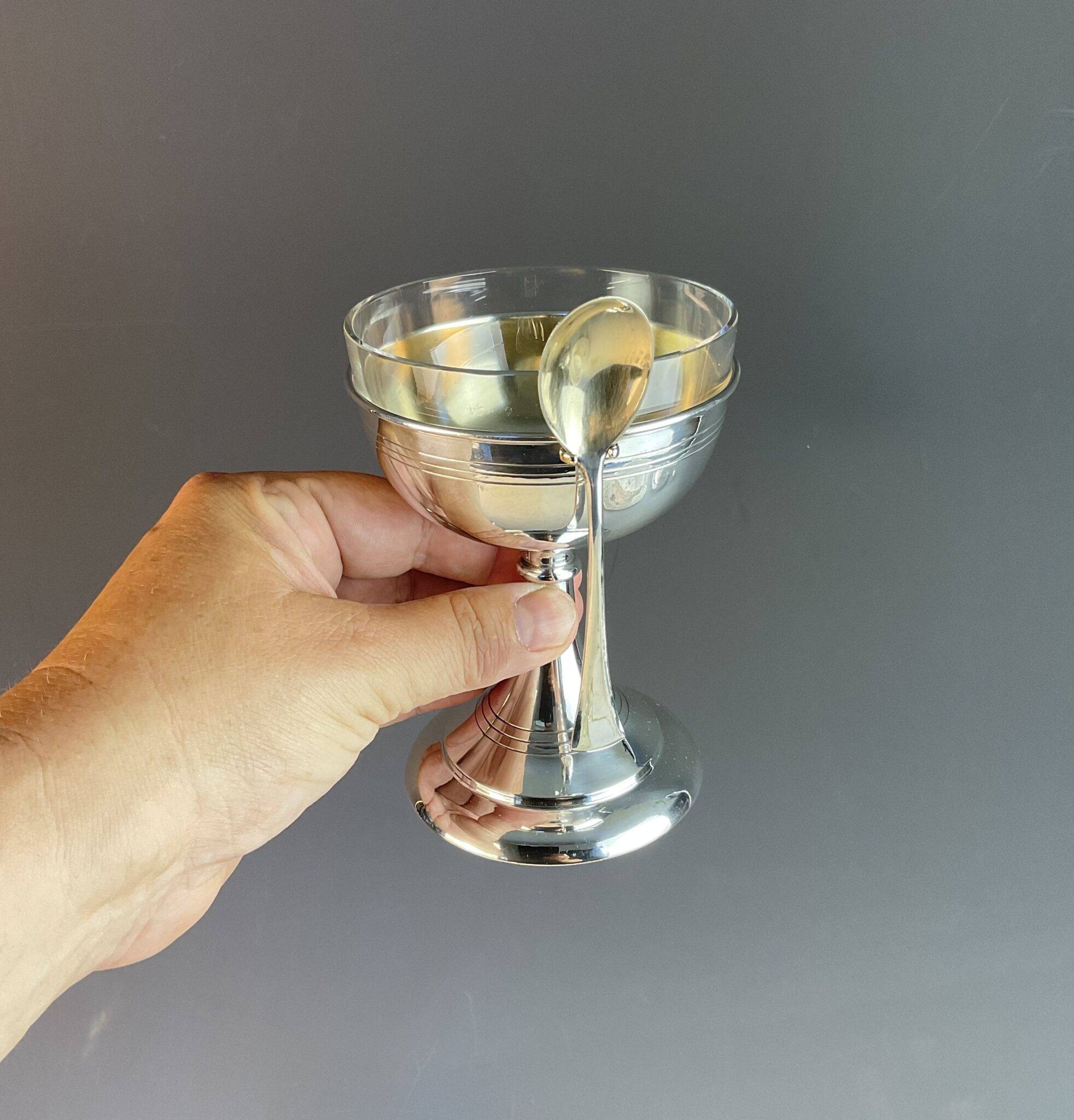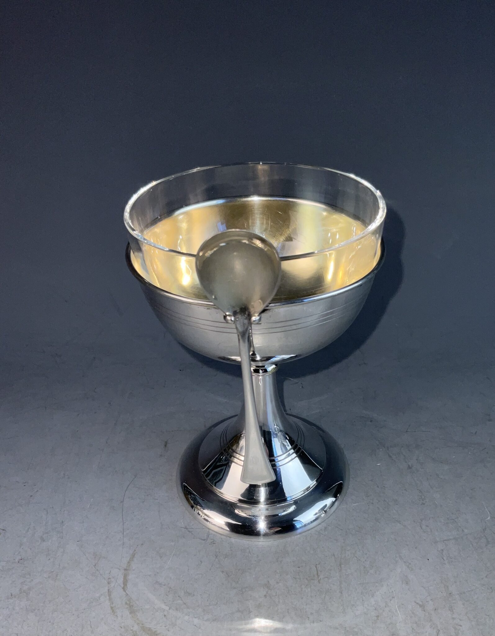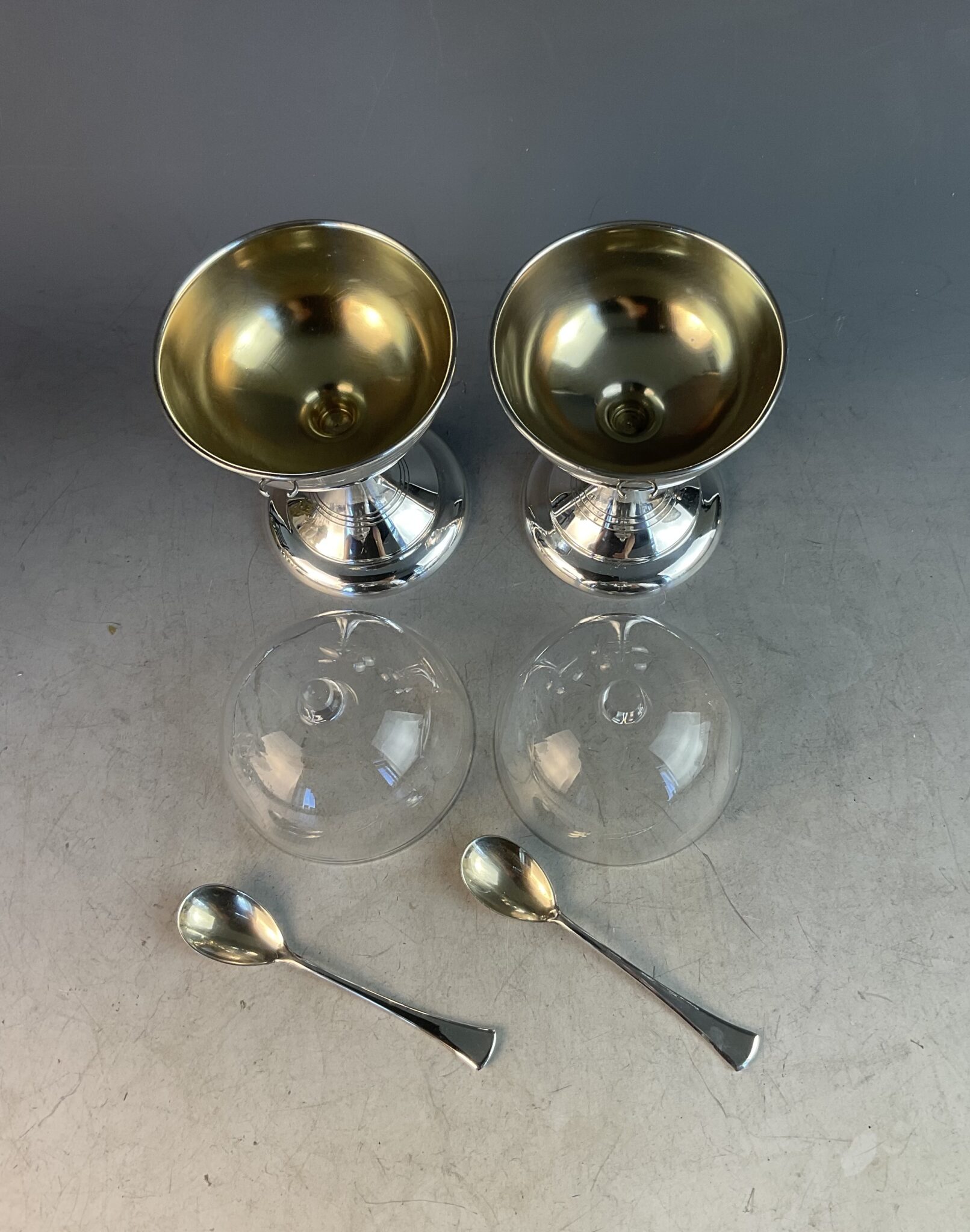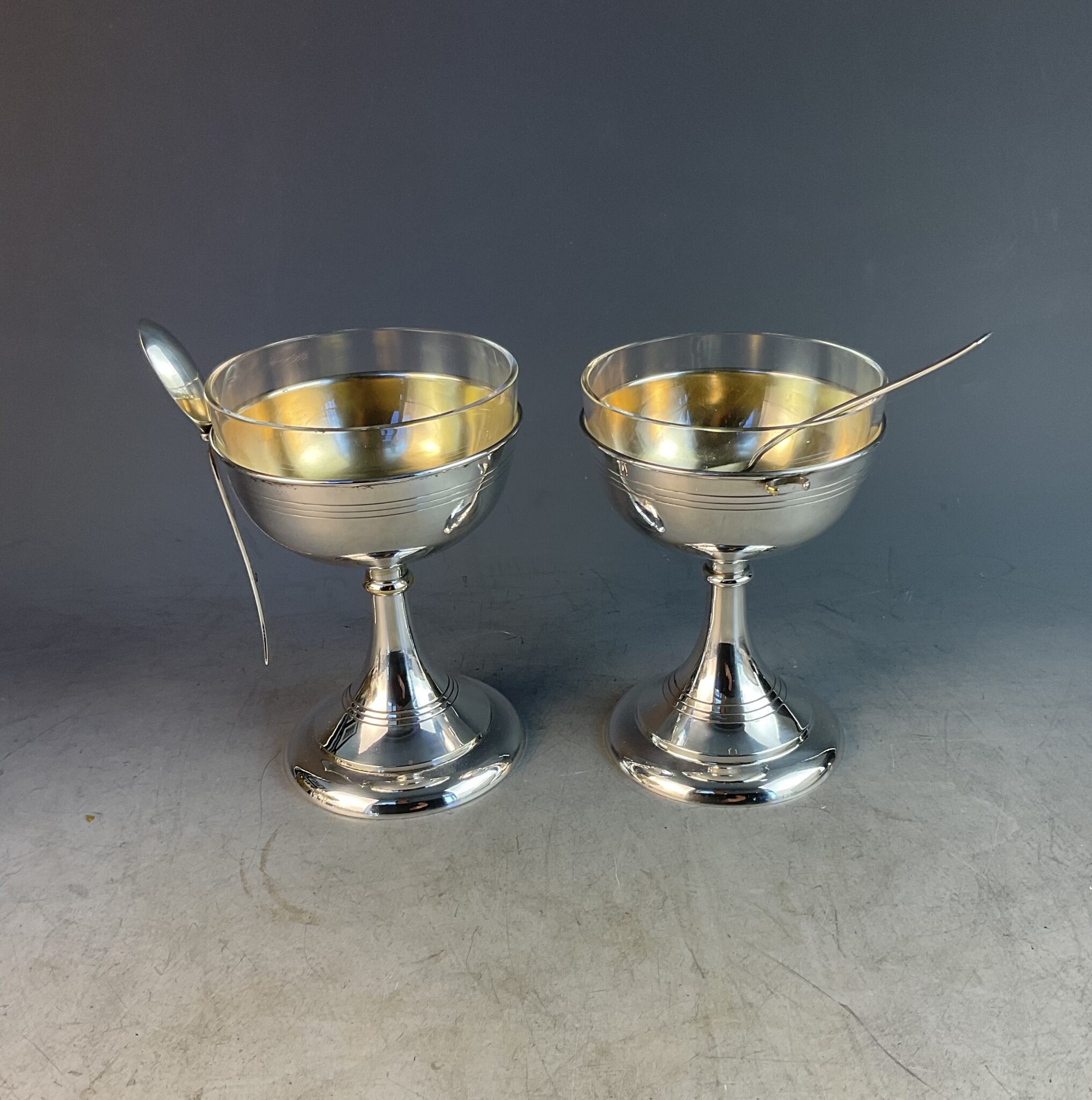 Paar versilberter „Ei im Glas“- Pokale mit Glaseinsatz