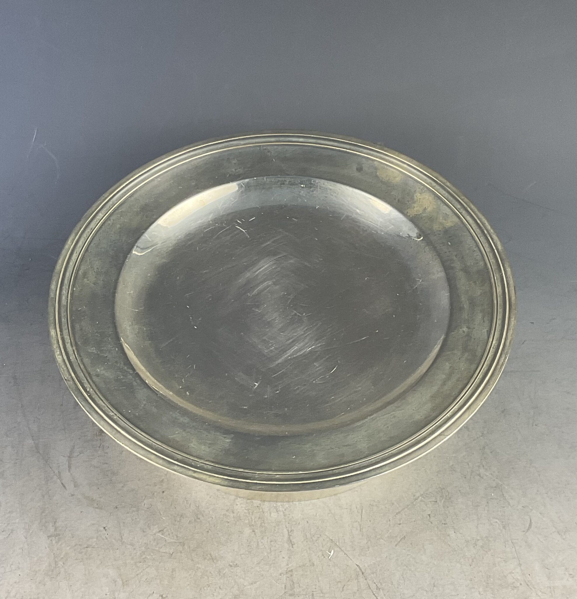 Alpacca, versilbert, runde Tortenplatte mit abgesetztem Fuss, am Boden gemarkt mit französischer Herstellermarke, tadelloser Erhaltungszustand
