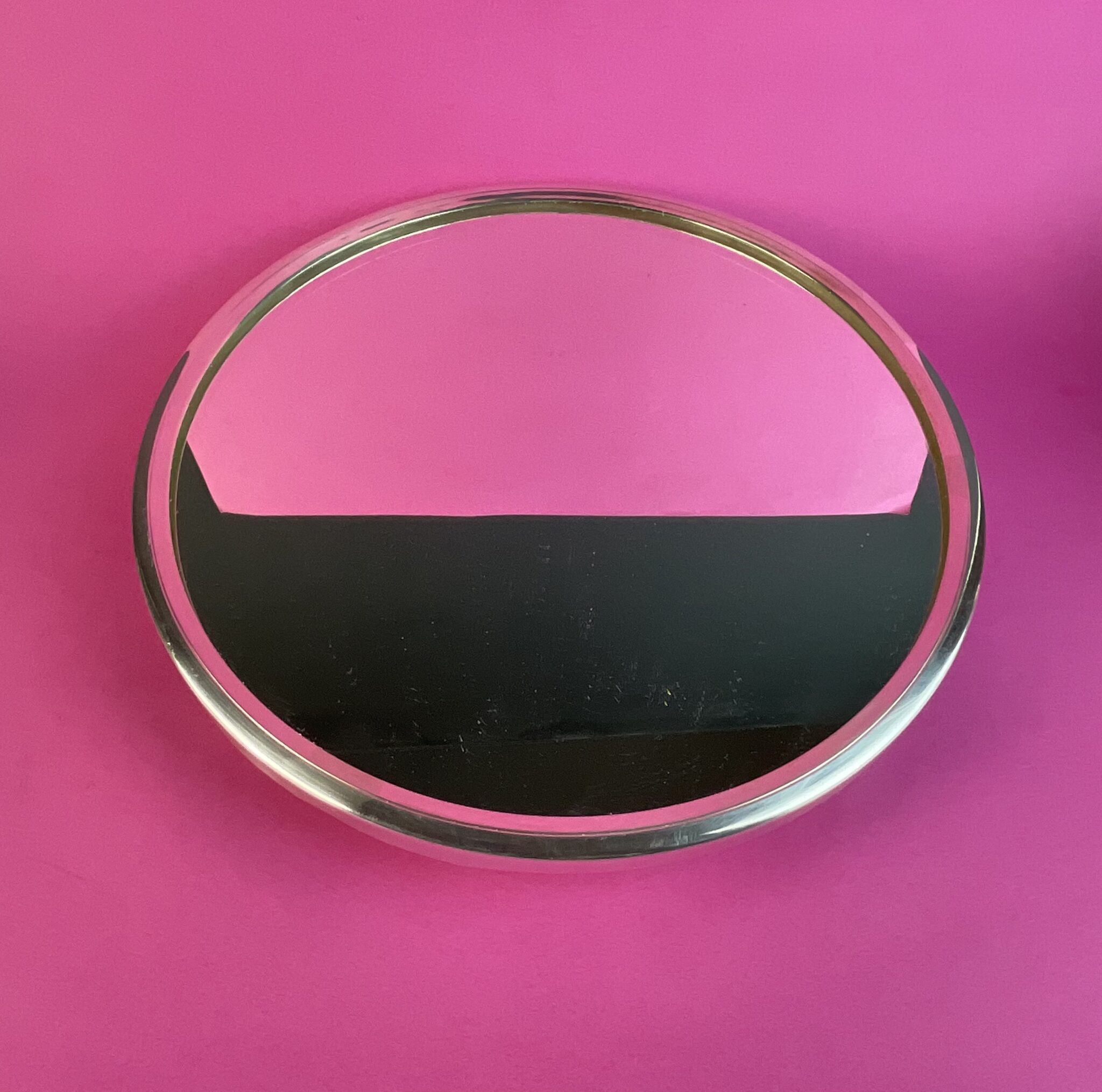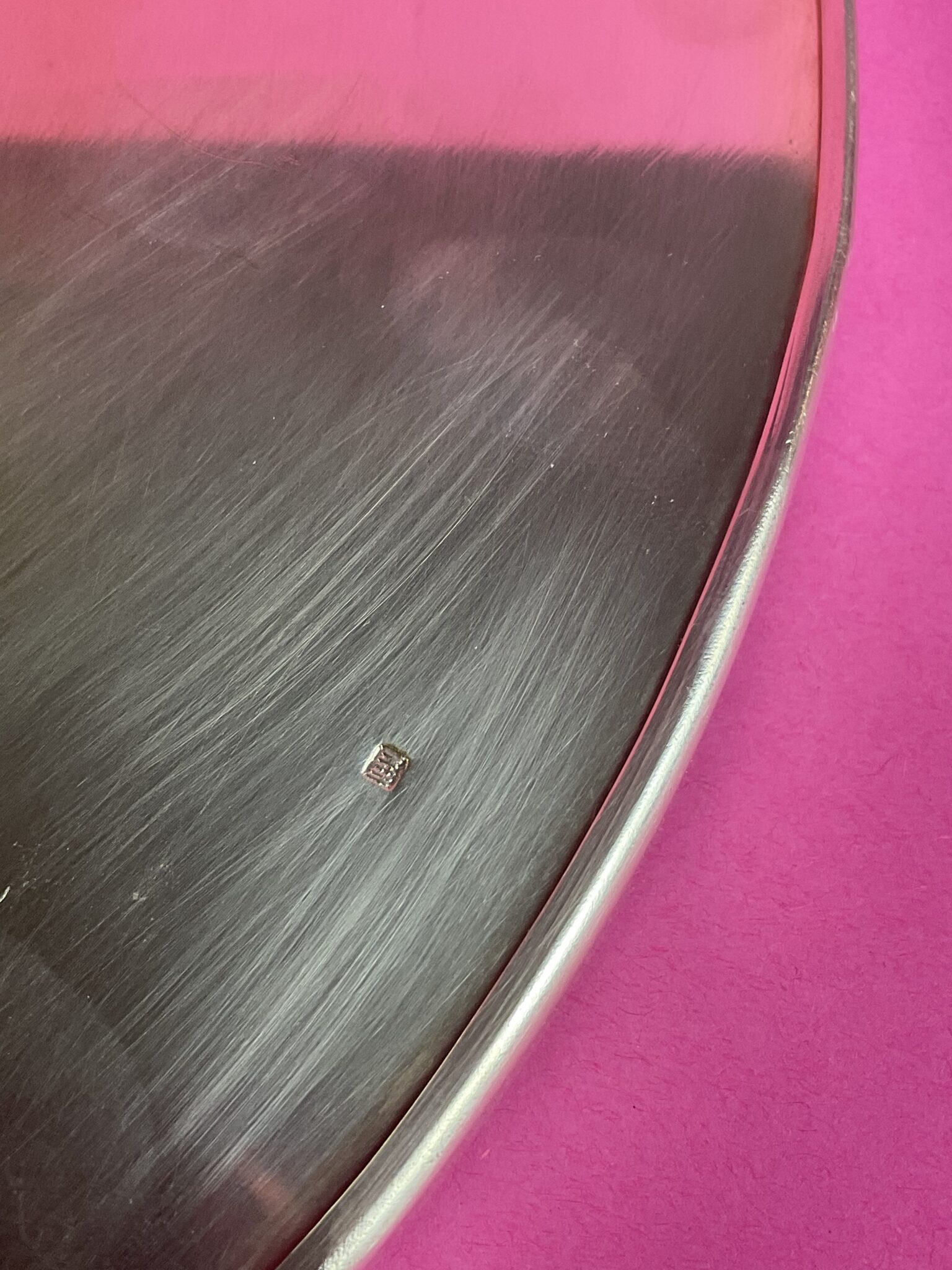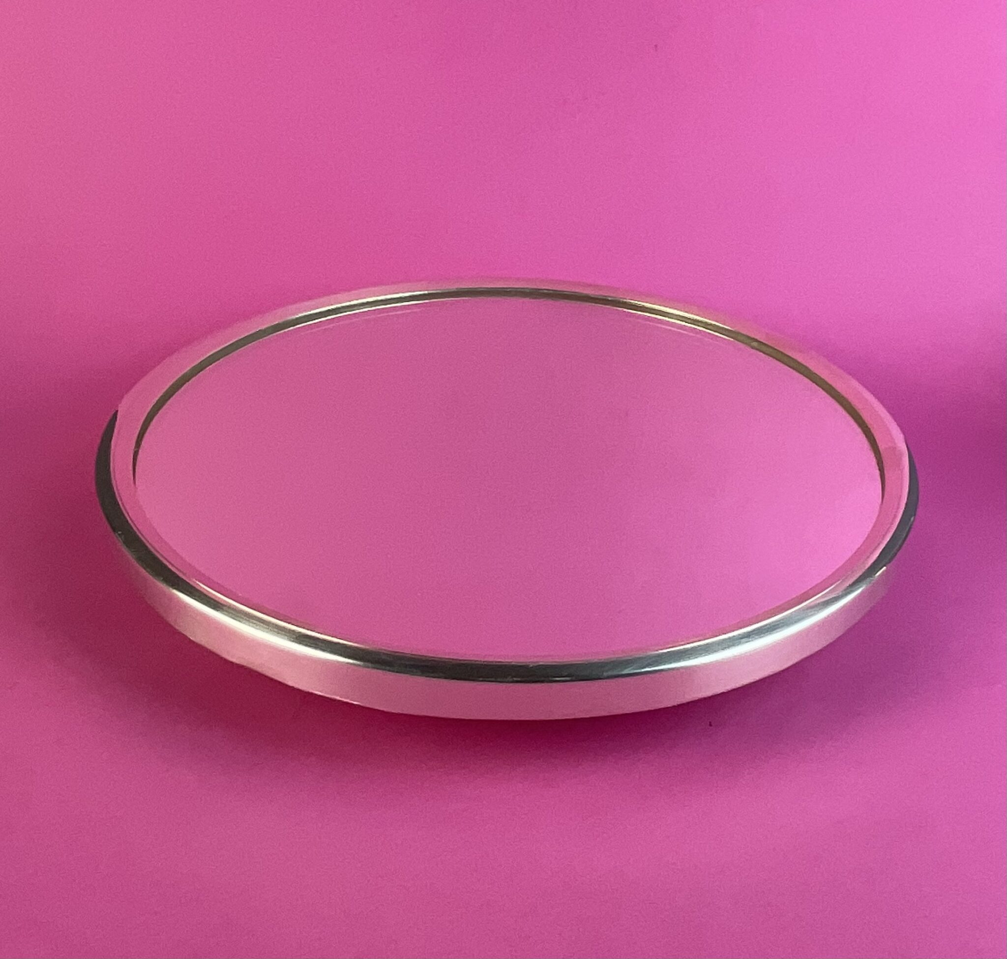 Alpacca, versilbert, runde Tortenplatte mit abgesetztem Fuss, eingefaster Spiegel, am Boden gemarkt mit französischer Herstellermarke, zugehöriger Art Deco Tortenheber, tadelloser Erhaltungszustand
