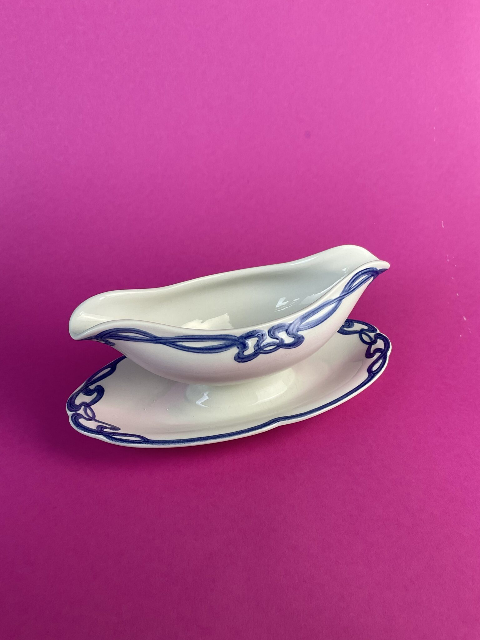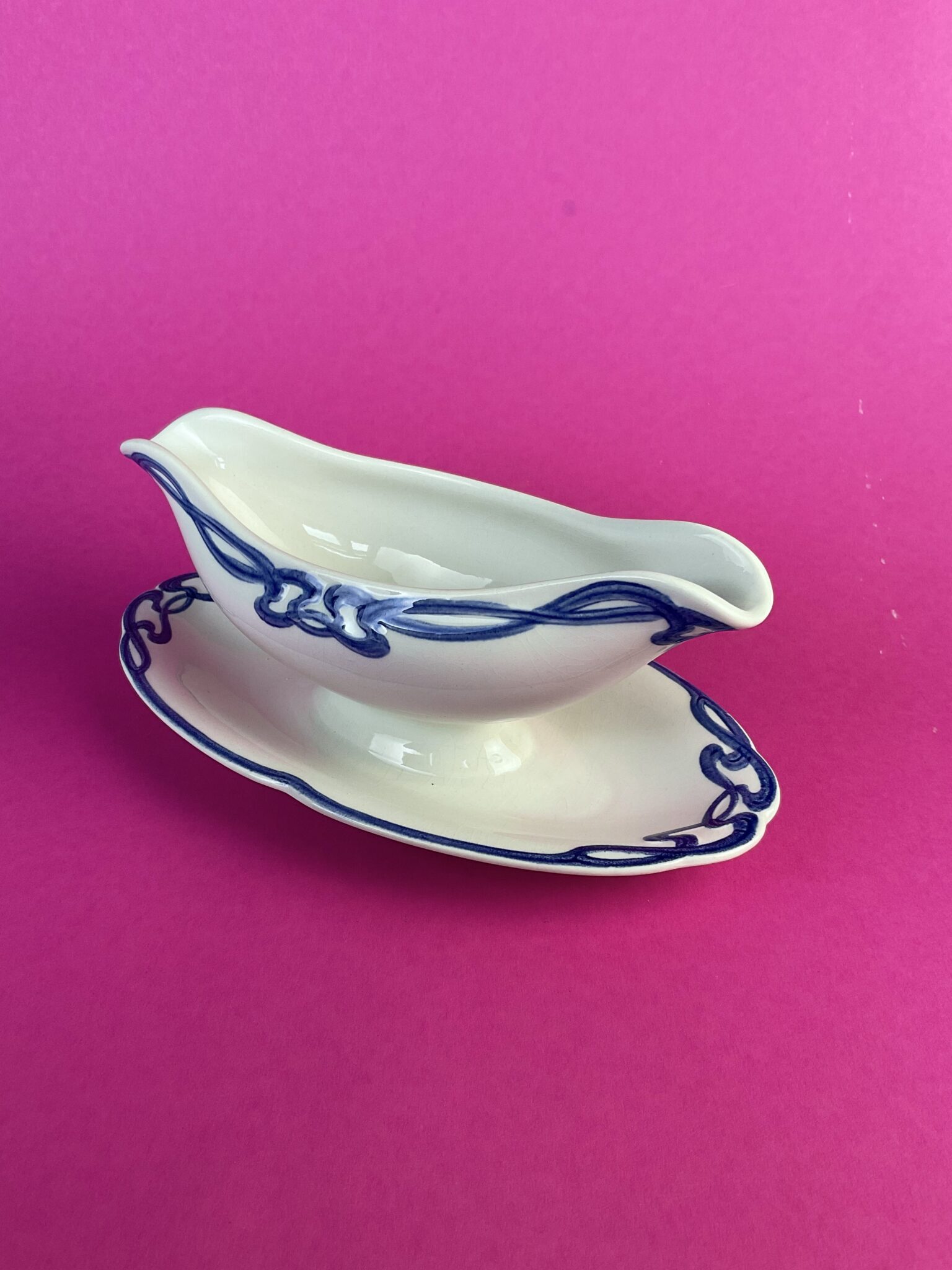 Jugendstil Saucière „Blaue Olga“, Fa. Villeroy & Boch, Dresden, um 1900