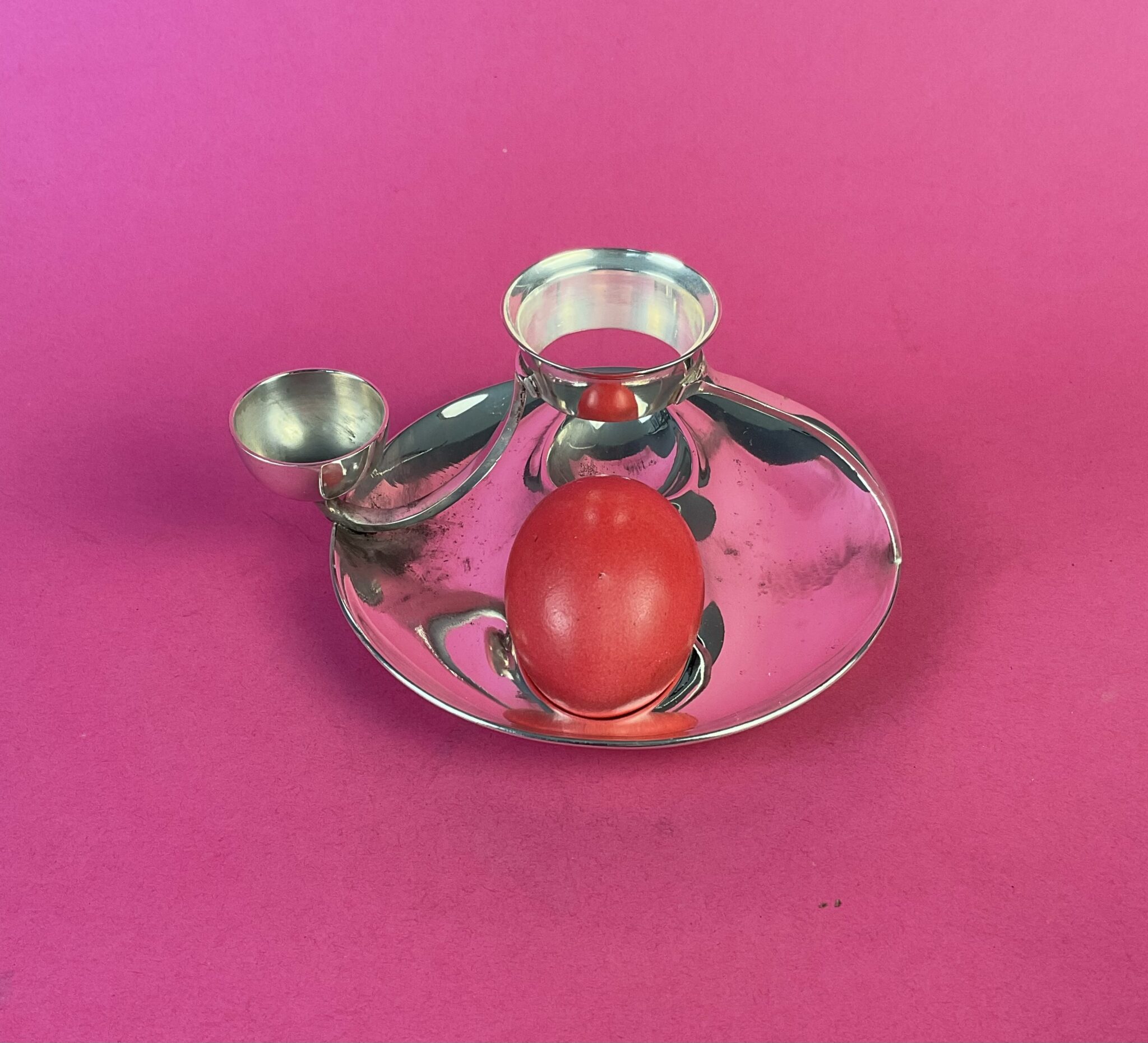 Seltener, versilberter Eierbecher für 3 Eier