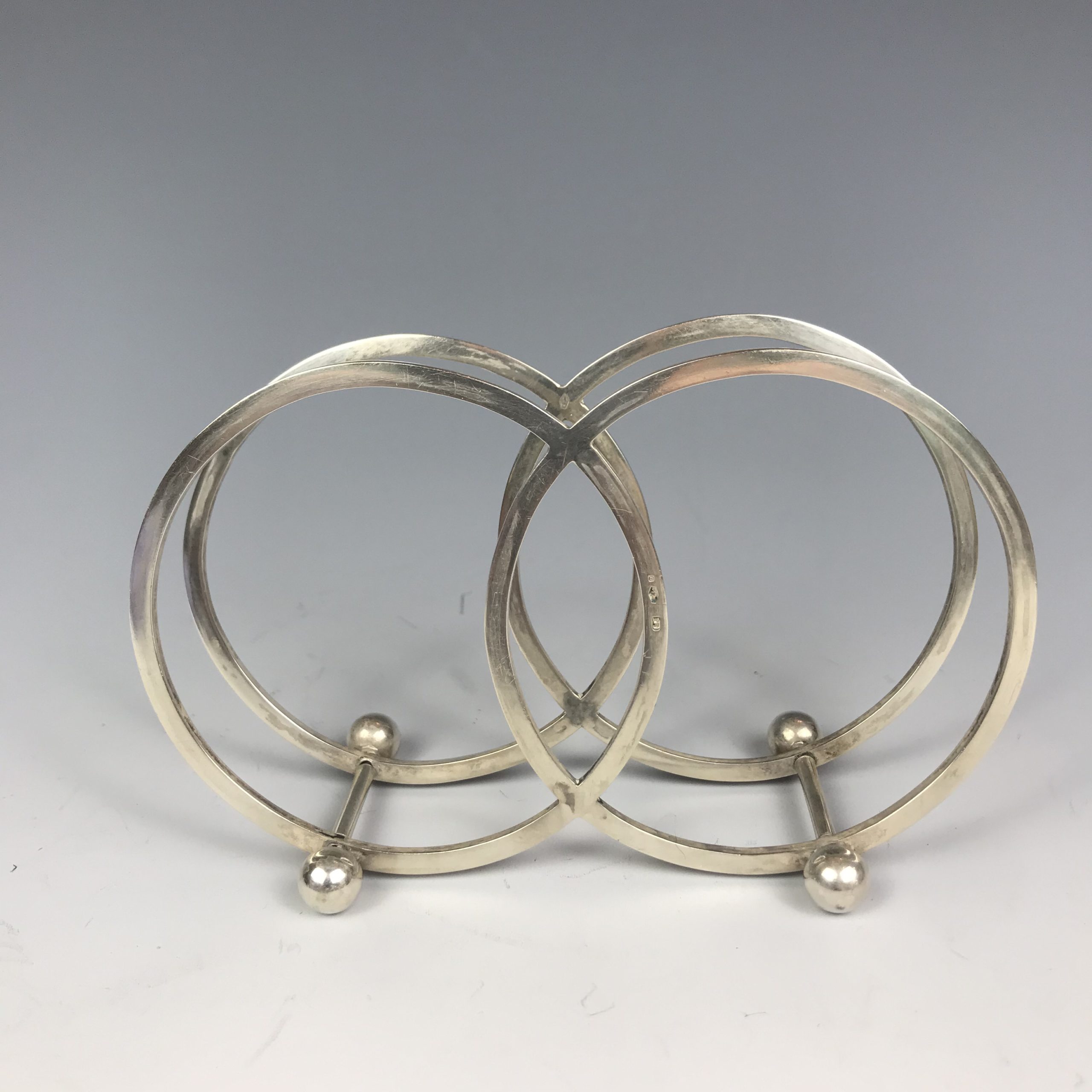 Silber, vier Kugelfüsse, zwei Kreise als Halterung, gemarkt Feingehaltszeichen 800