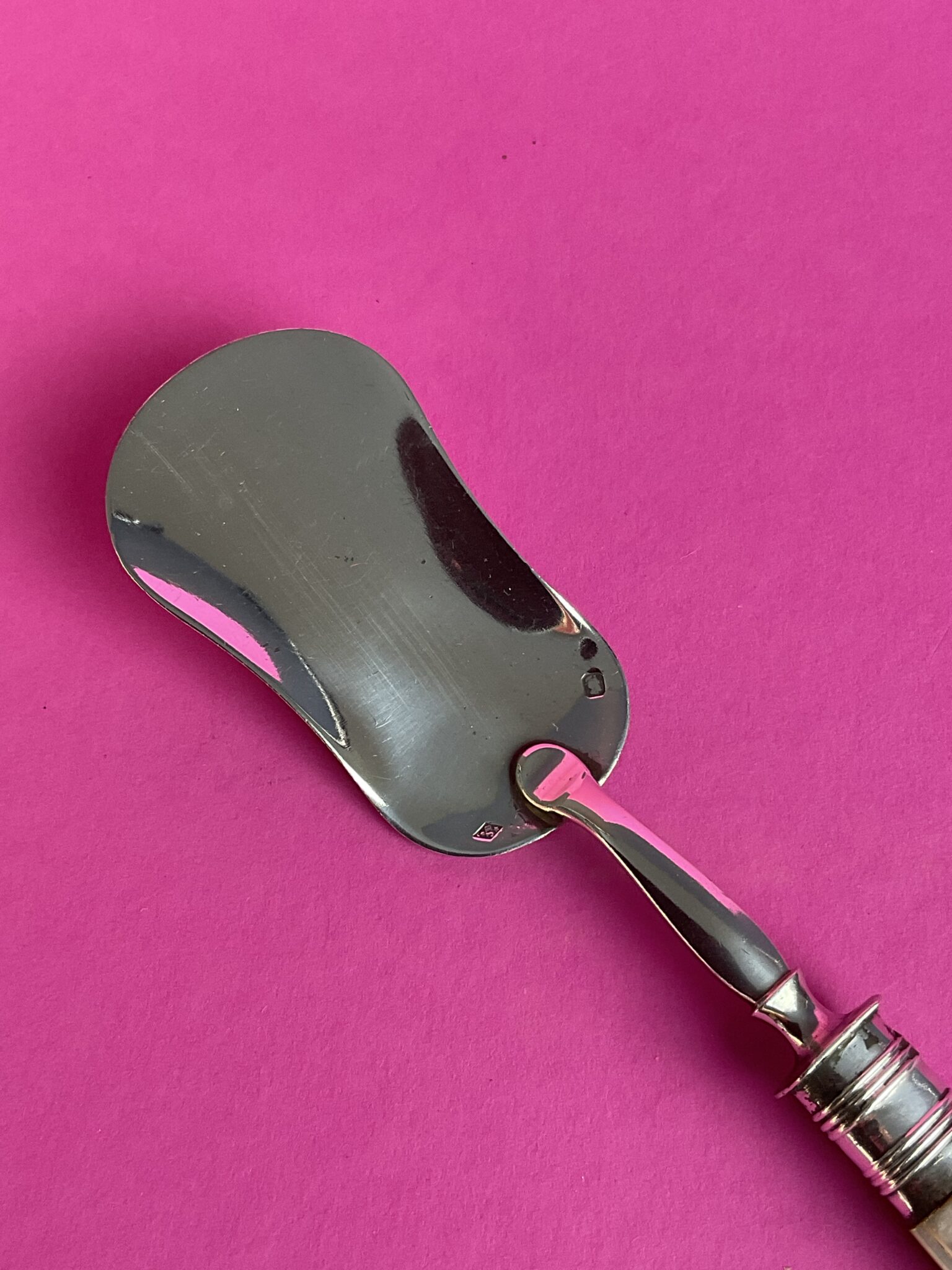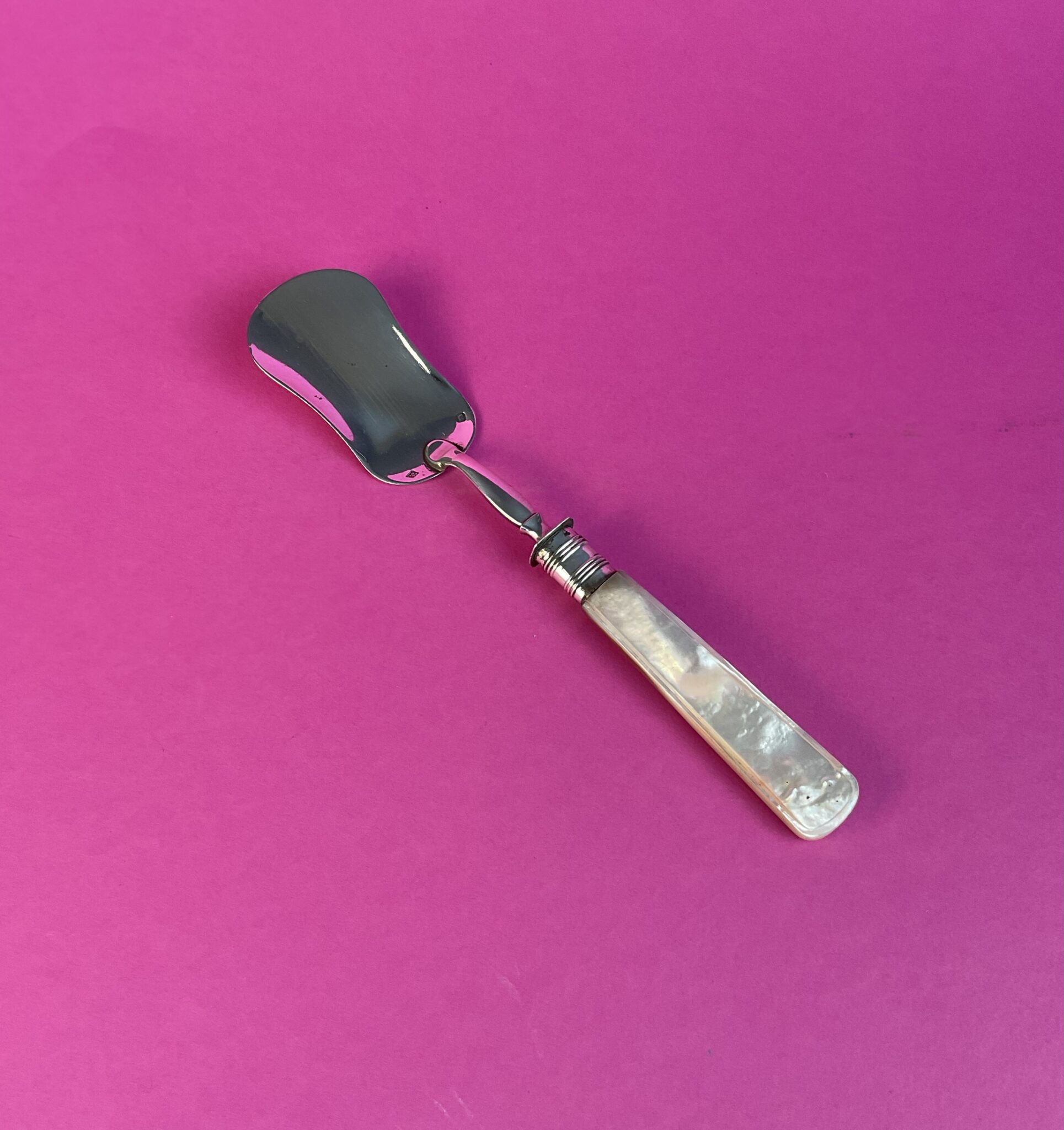 plastisches Heft aus poliertem Perlmutt, Schaufel aus massivem Silber, gemarkt mit französischem Minervakopf, handpolierter Zustand