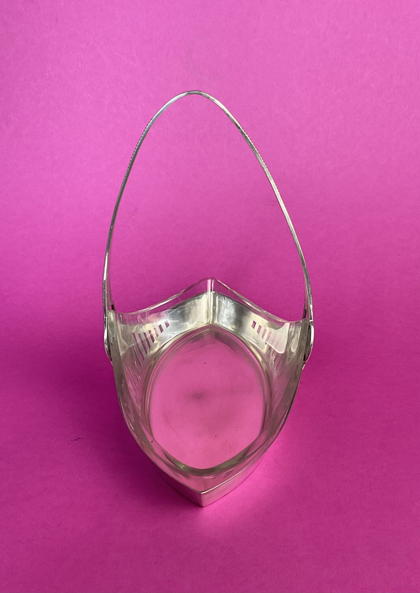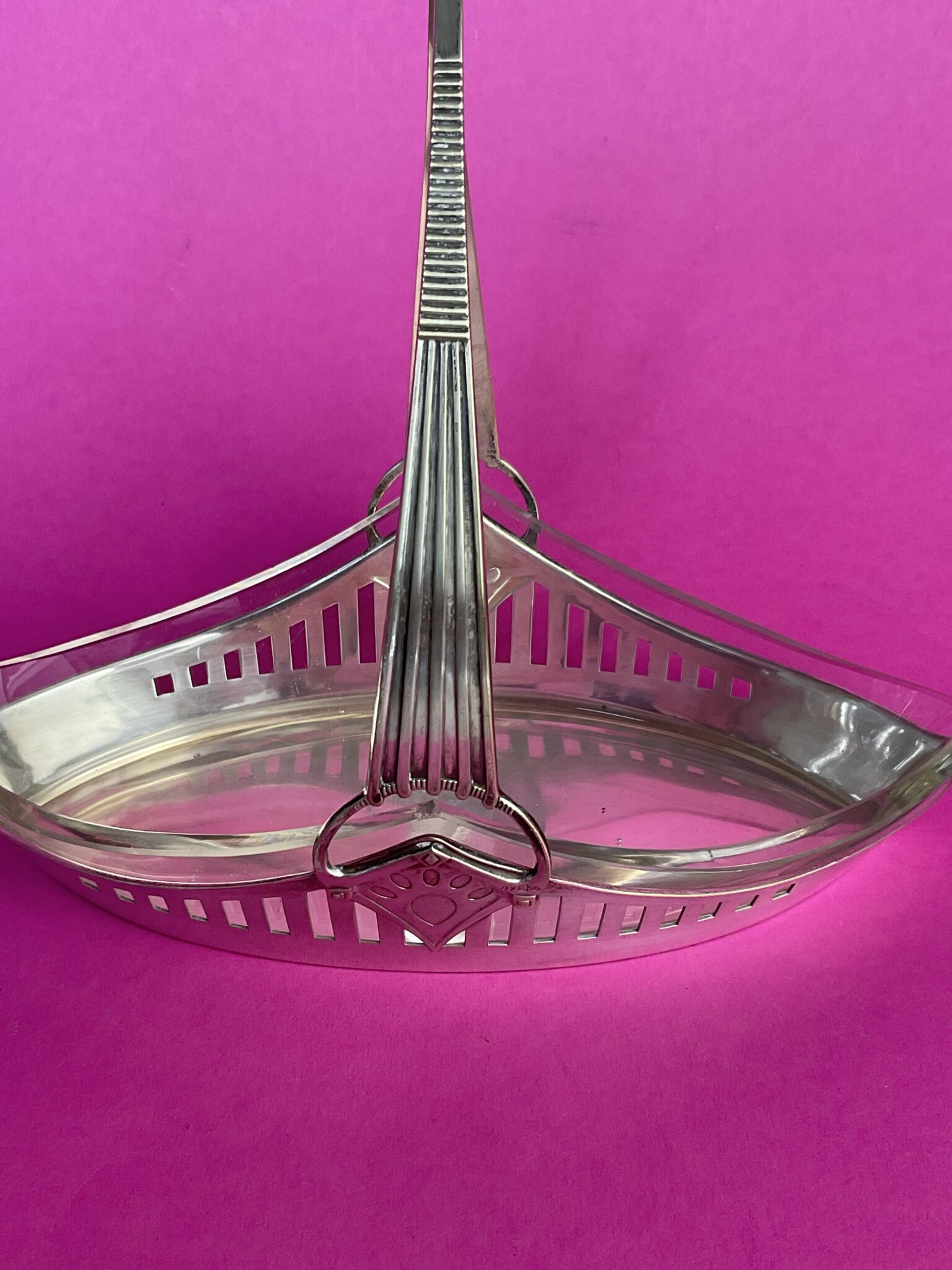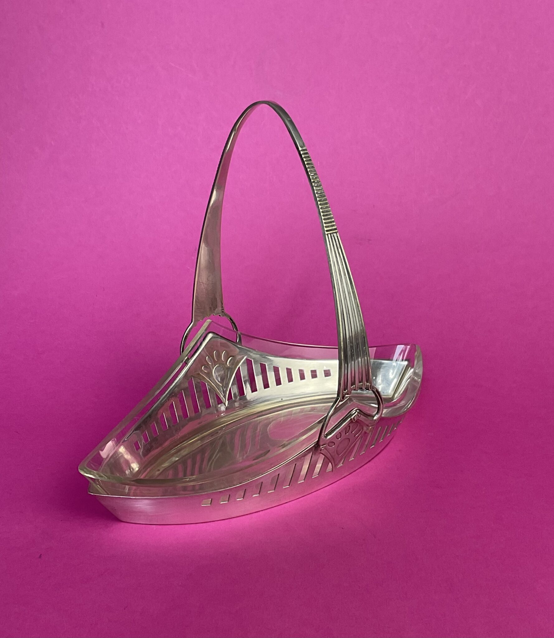 Spitzovaler Jugendstil Henkelkorb mit Glaseinsatz