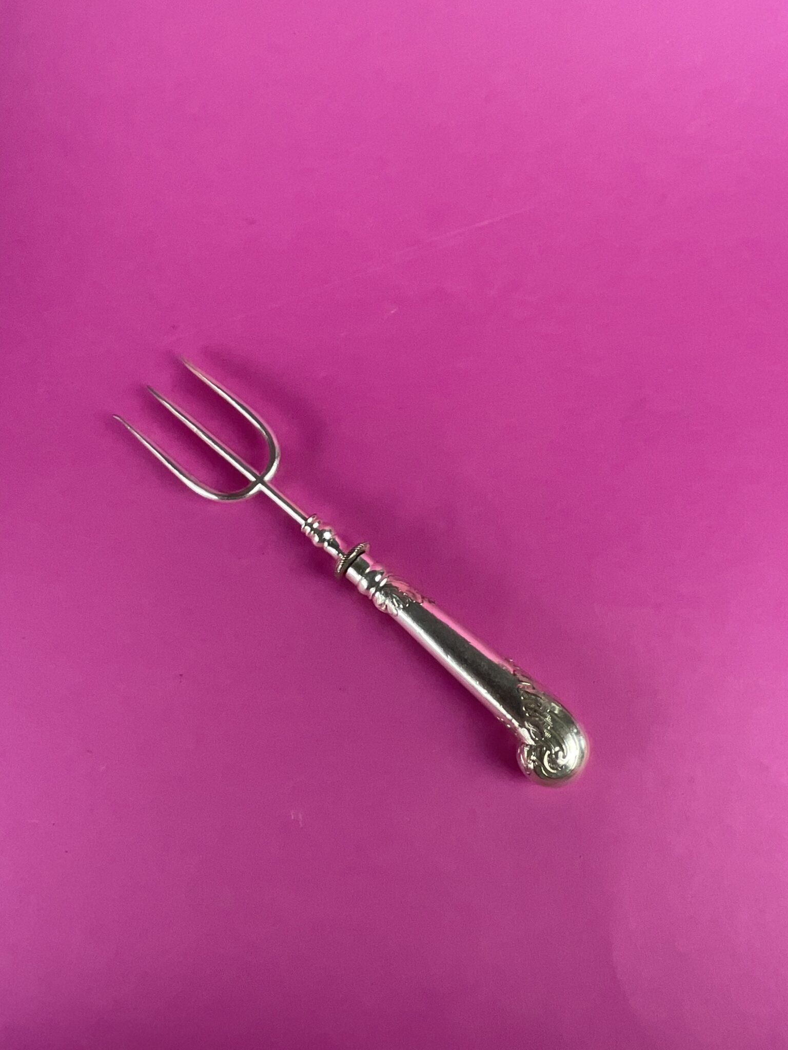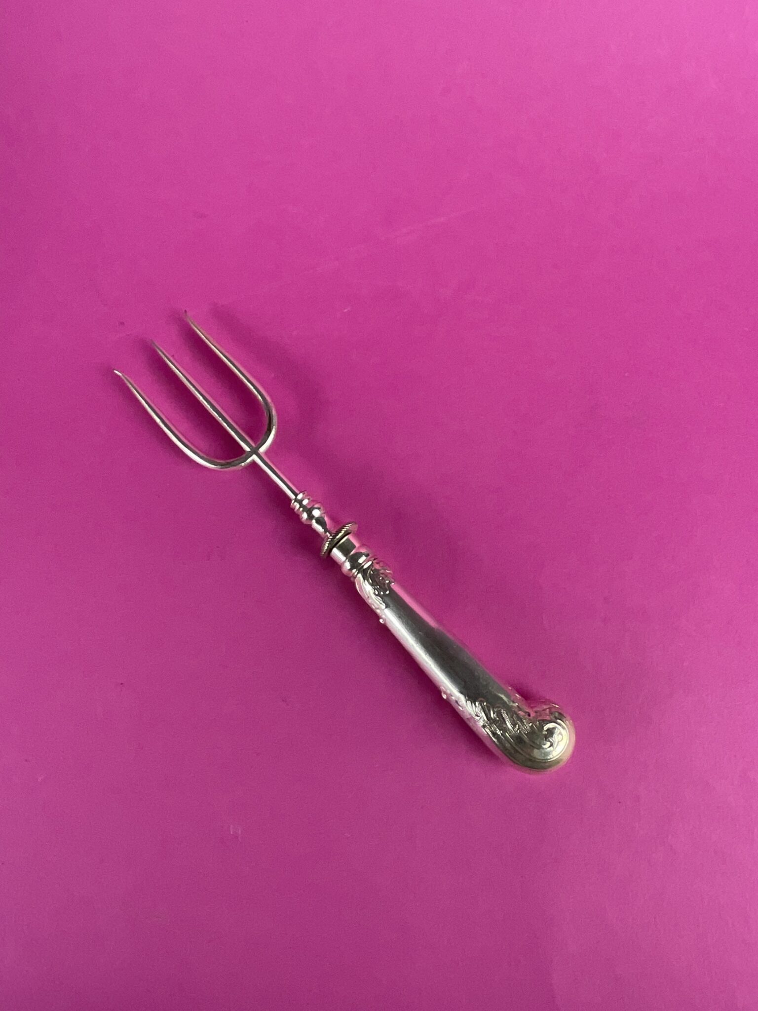 Versilberte Historismus Brotgabel mit Pistolengriff