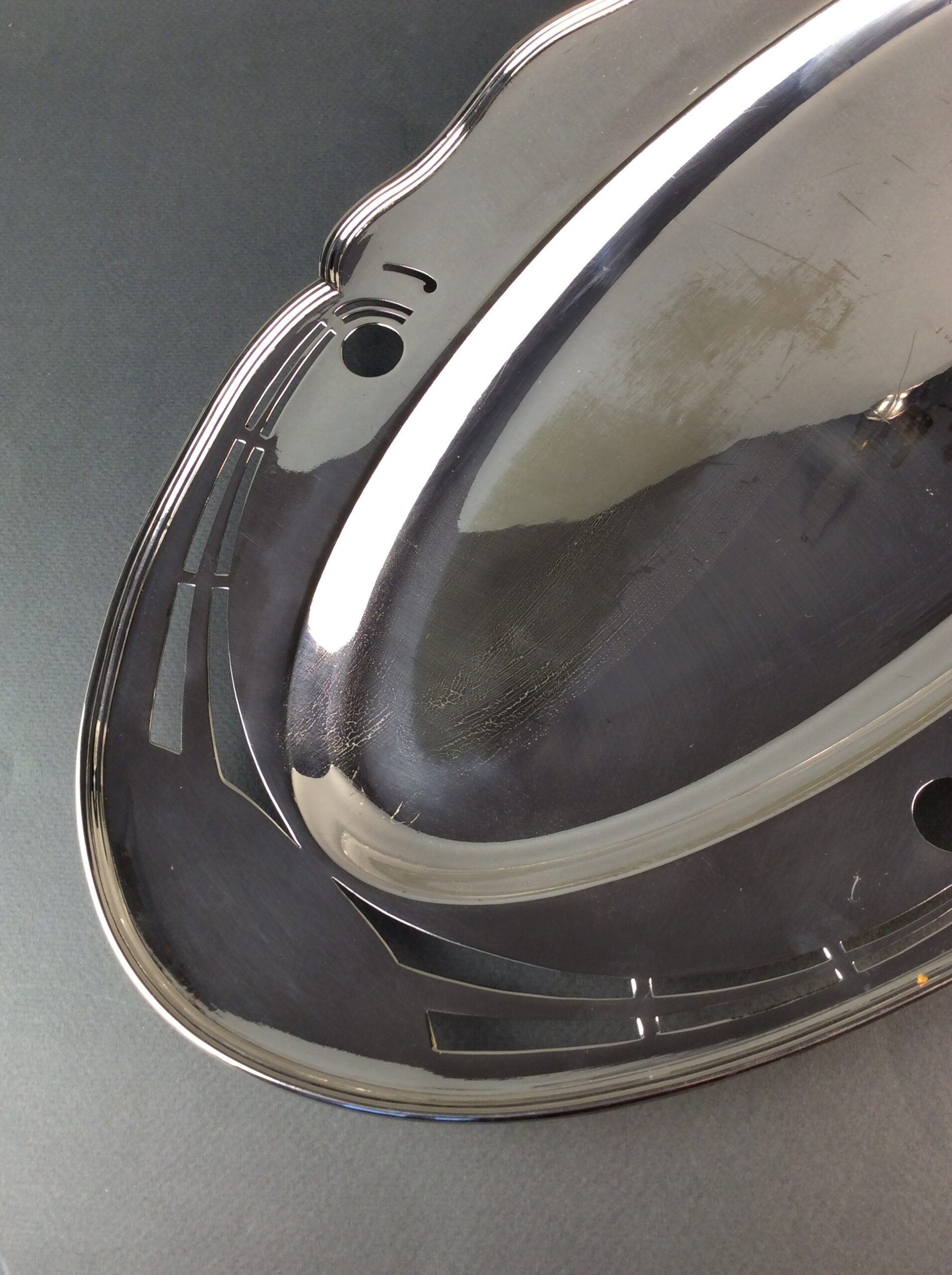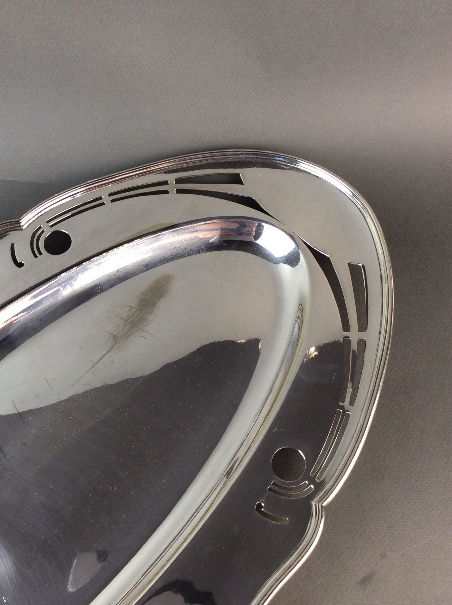 Alpacca, versilbert, perforierter Jugendstil-Dekor, ungemarkt, leichter Abrieb, handpolierter Zustand