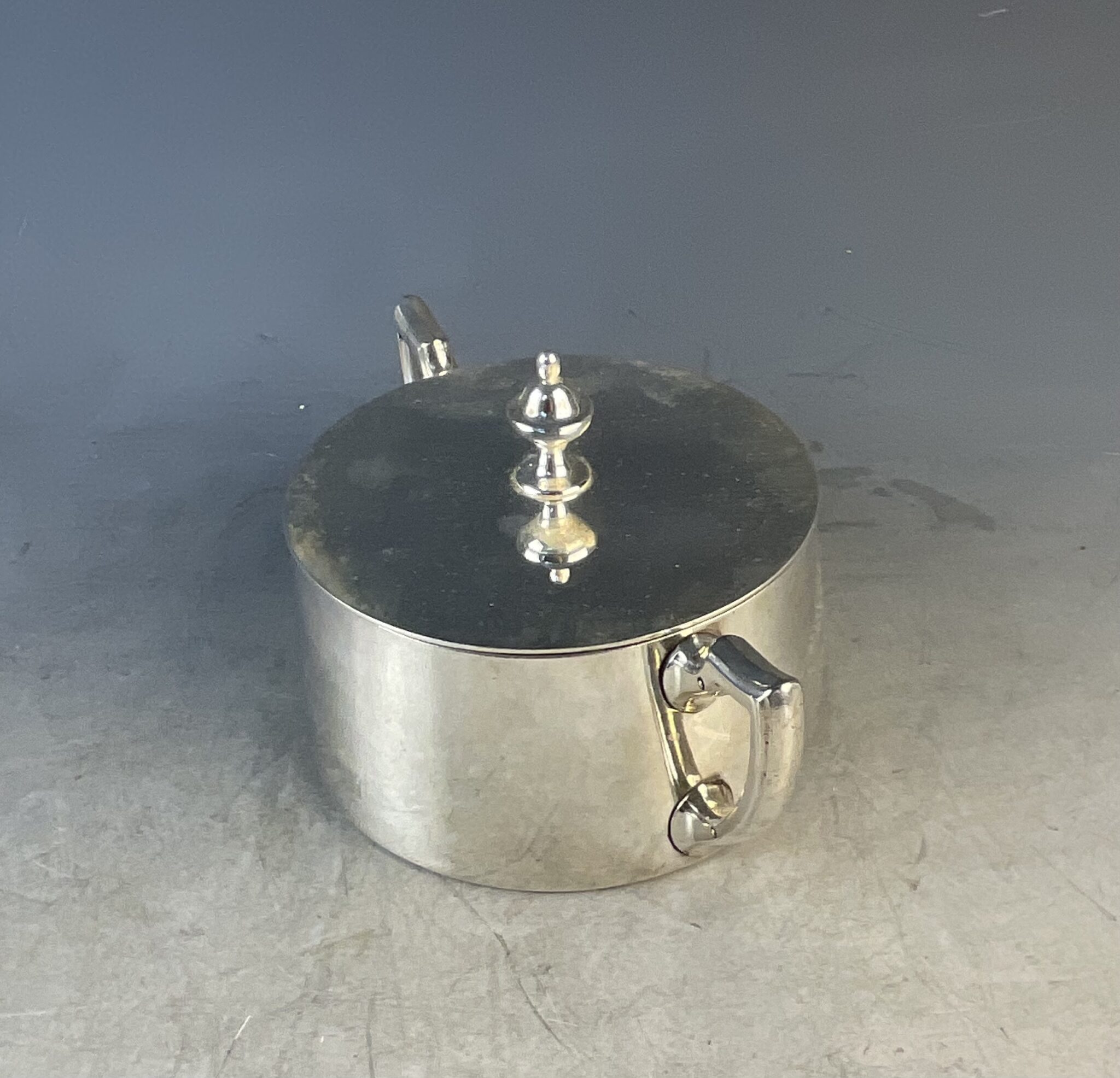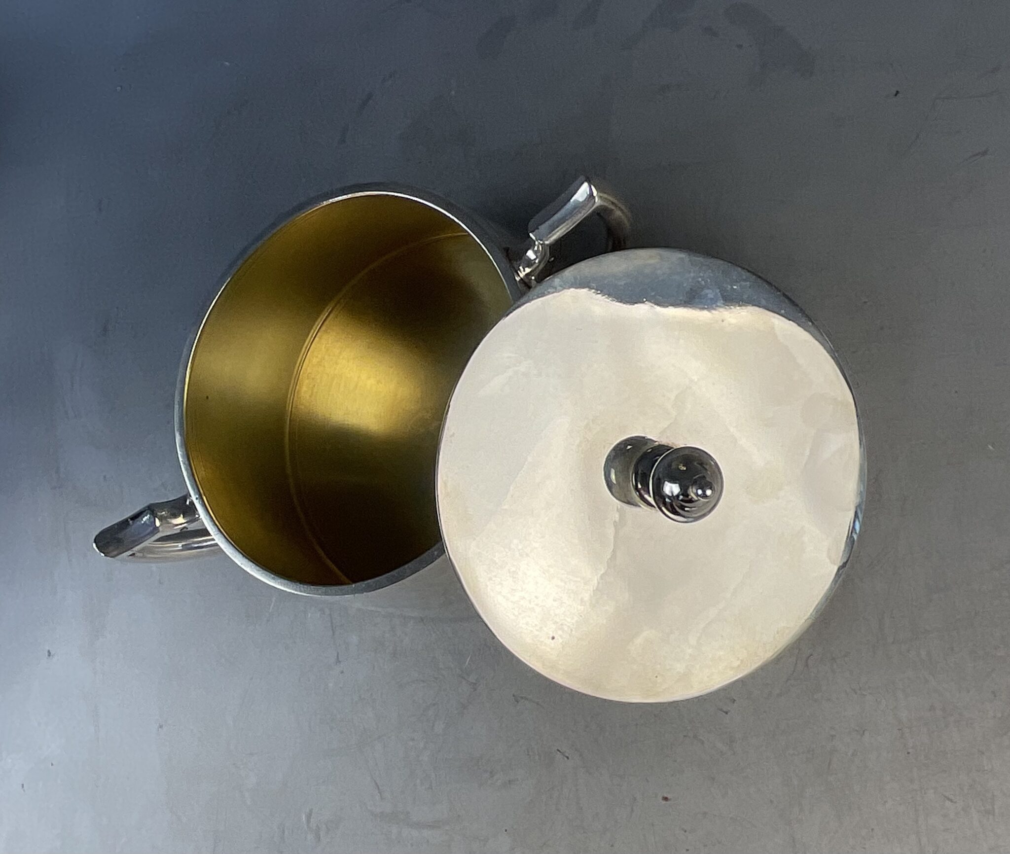 Alpacca, versilbert, abnehmbarer Deckel, Innenvergoldung, zwei Henkel, am Boden gemarkt mit runder Bärenmarke, 50 cl, tadelloser, handpolierter Erhaltungszustand