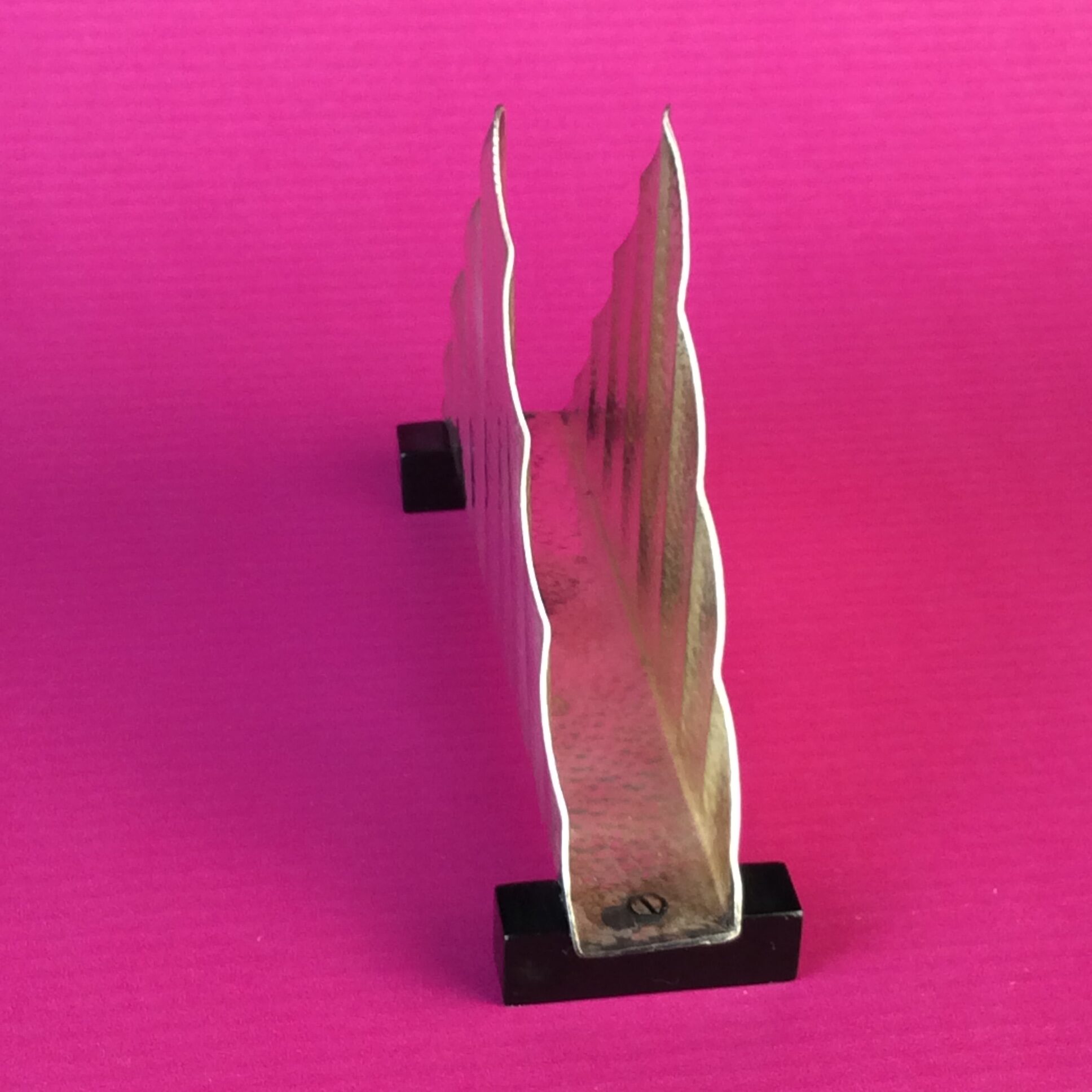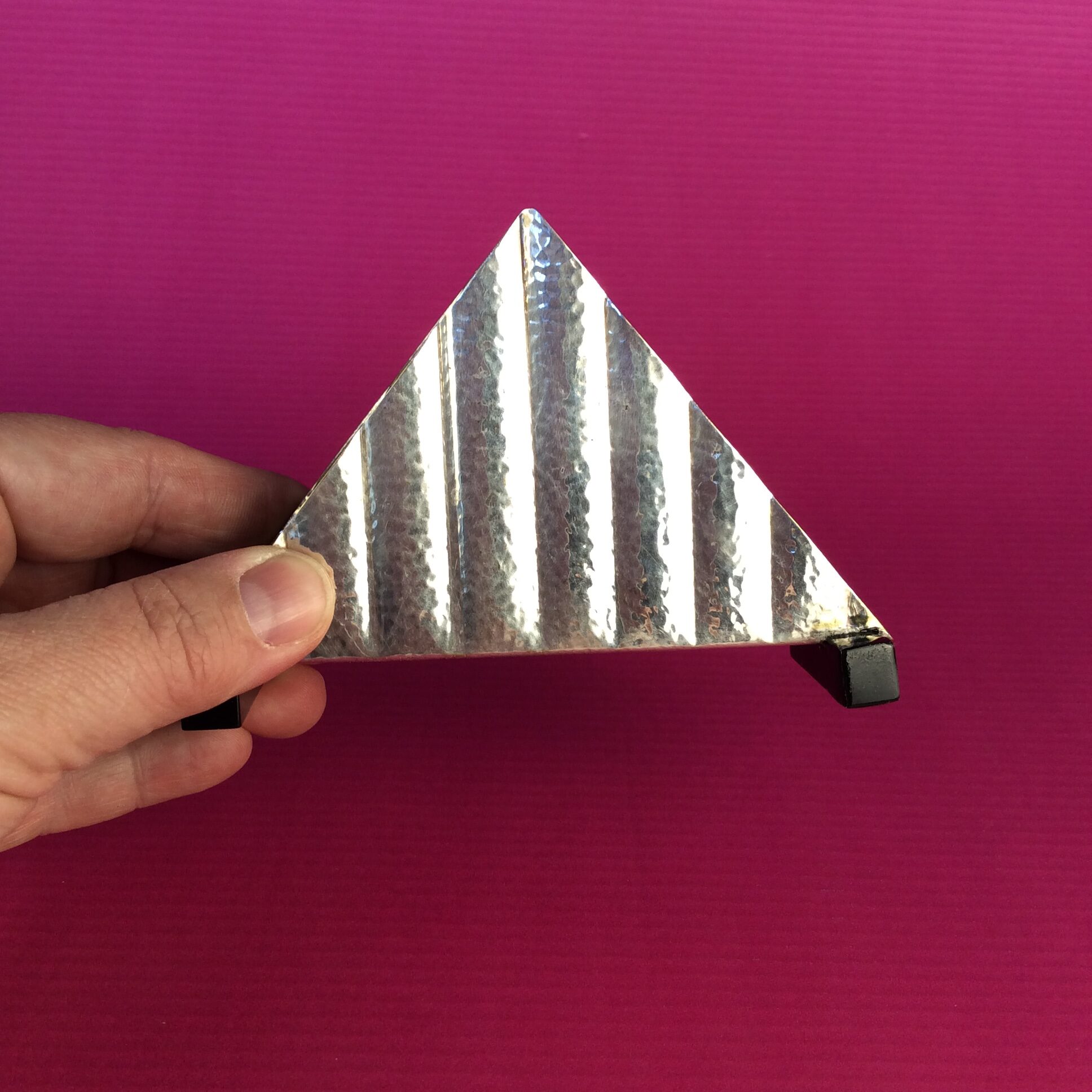 Alpacca, versilbert, Hammerschlagdekor, zwei schwarze, rechteckige Bakelitfüsschen, signiert ARGENTOR