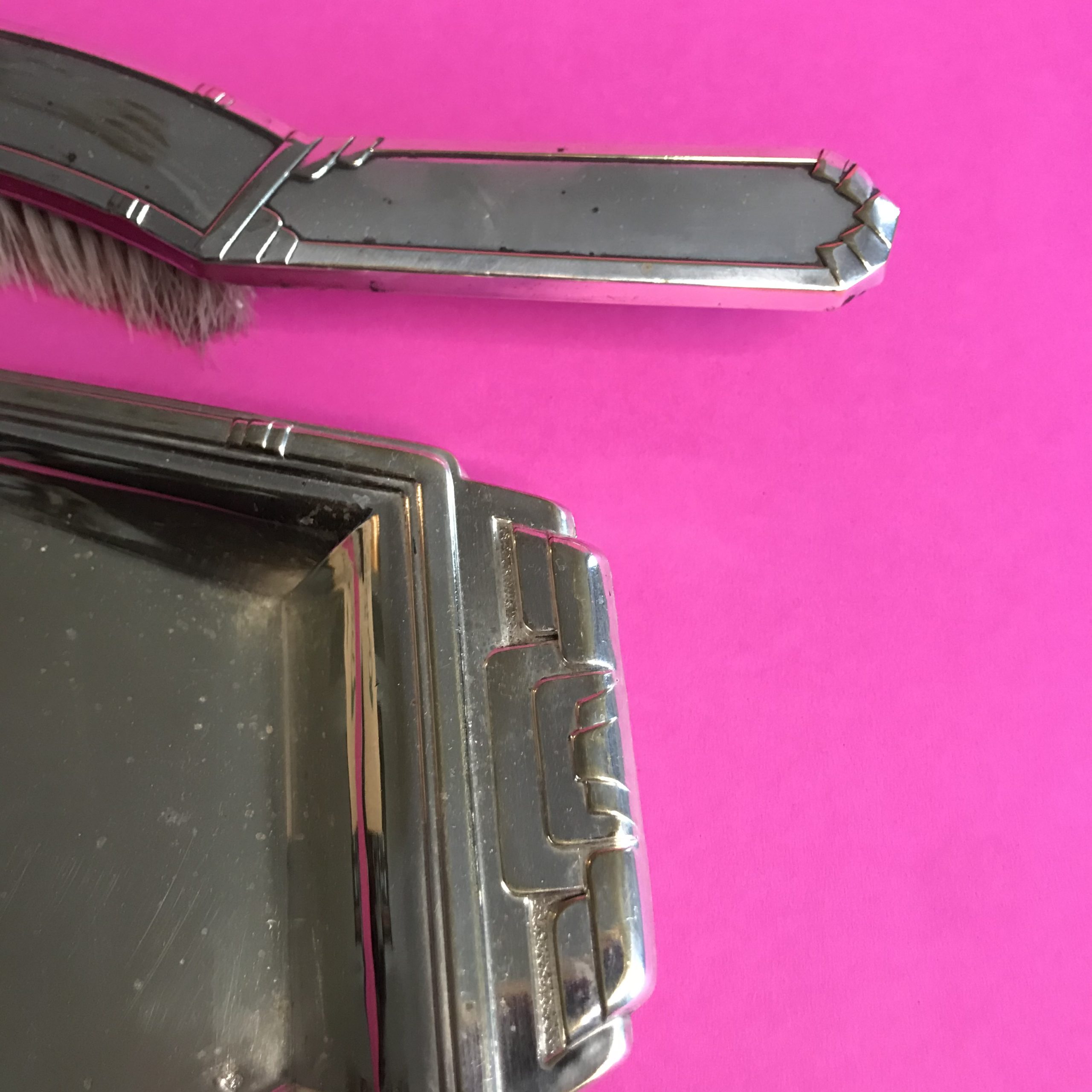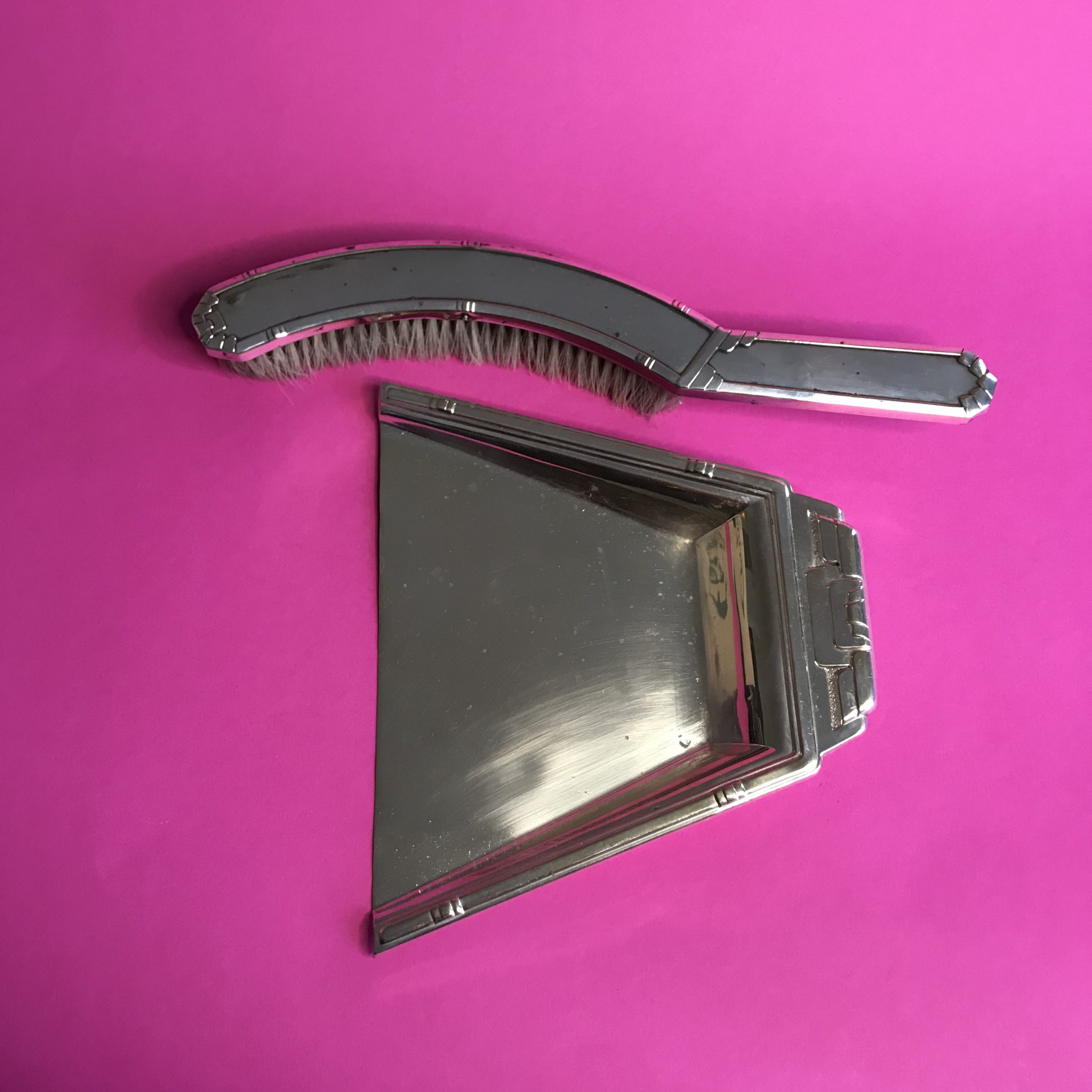 Versilberter Art Deco Tischbesen mit Schaufel, Frankreich, um 1930
