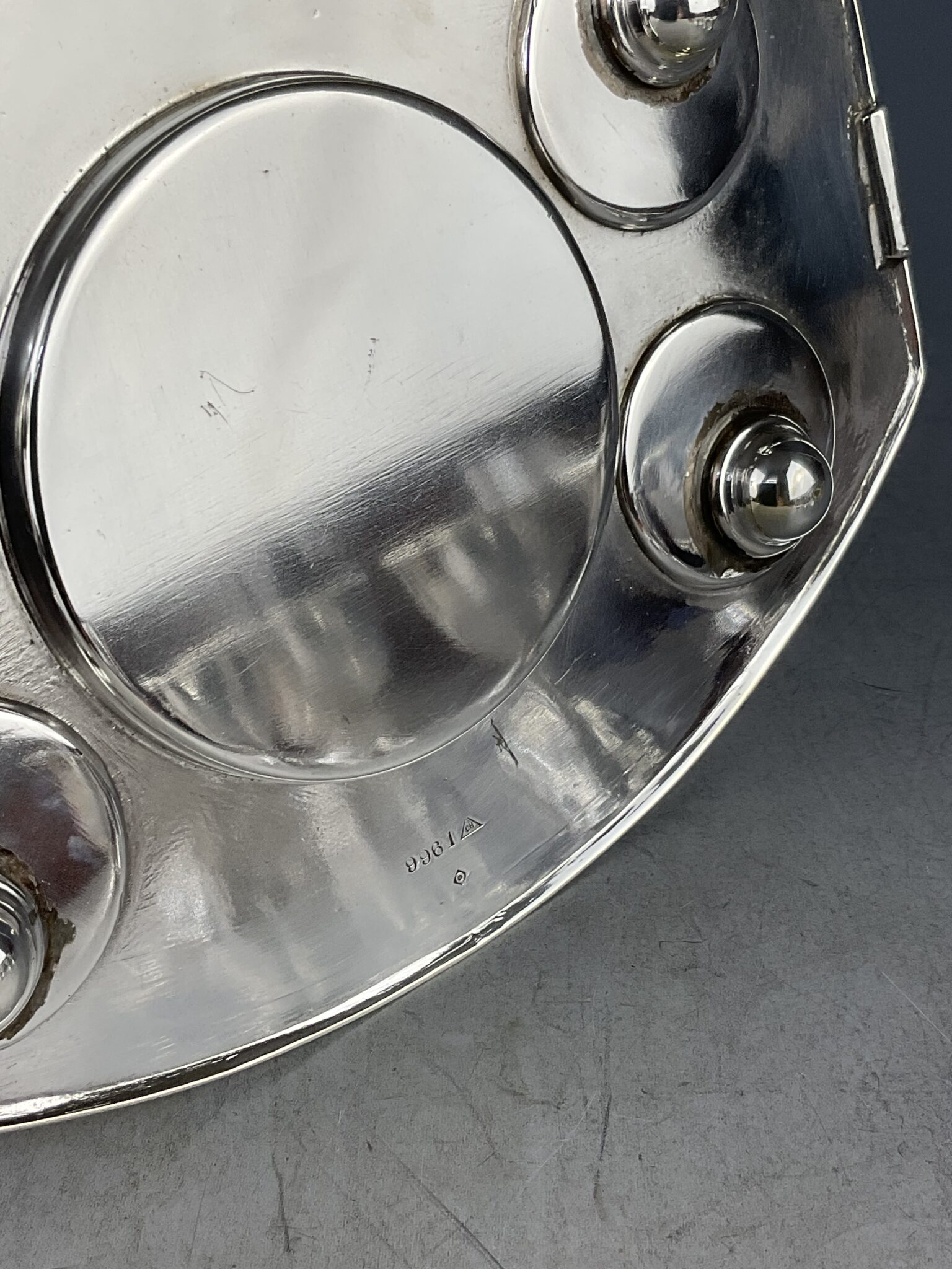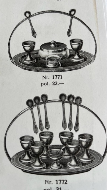 Schreiben Sie die erste Rezension für „Versilberter Eierständer für 4 Eierbecher, Fa. Sandrik, um 1920“