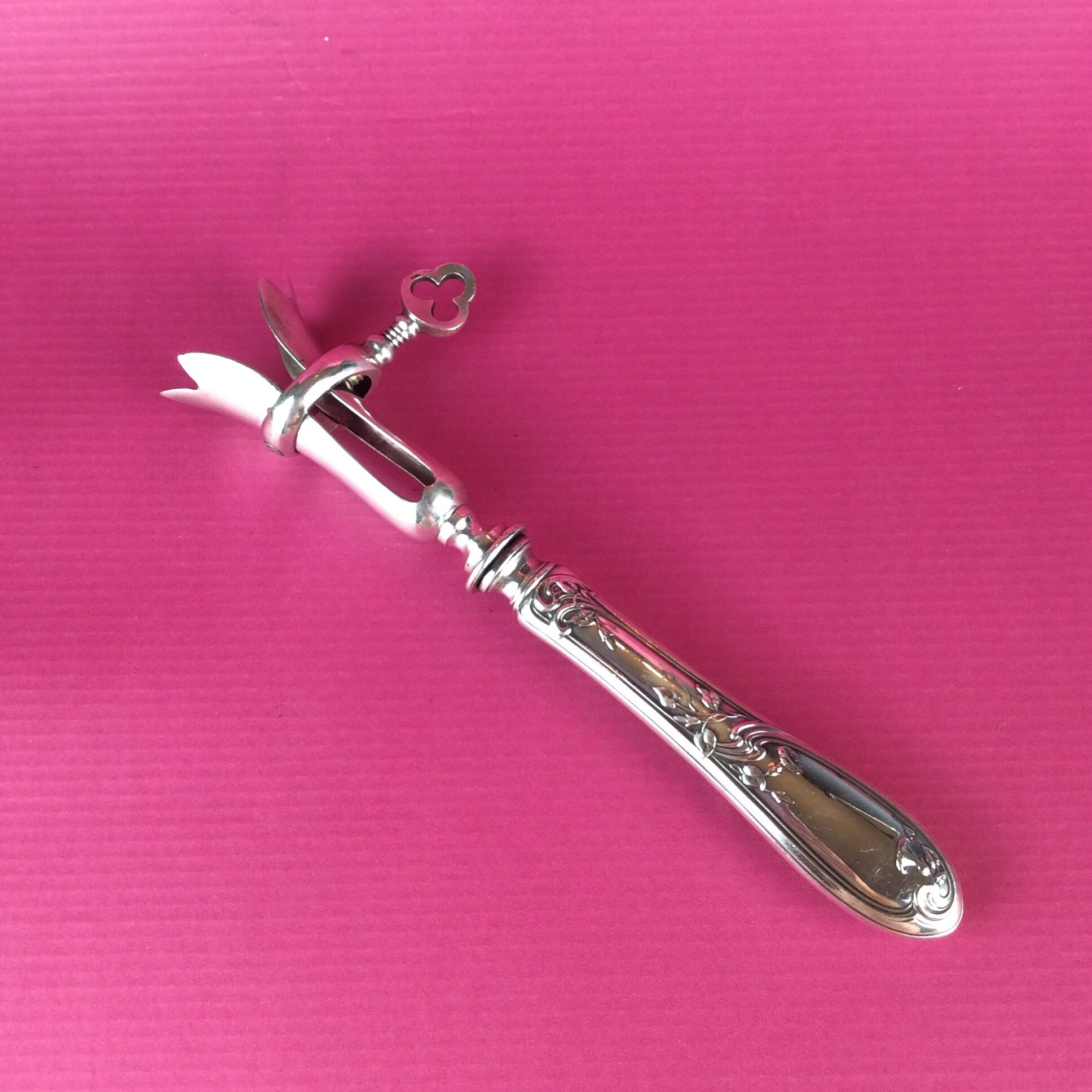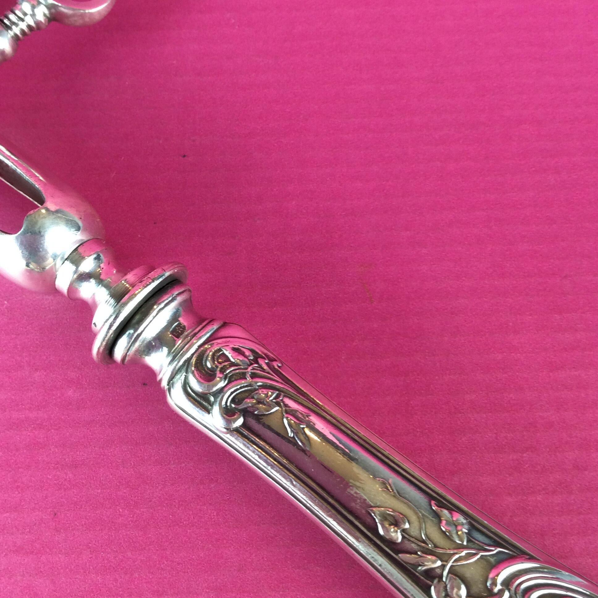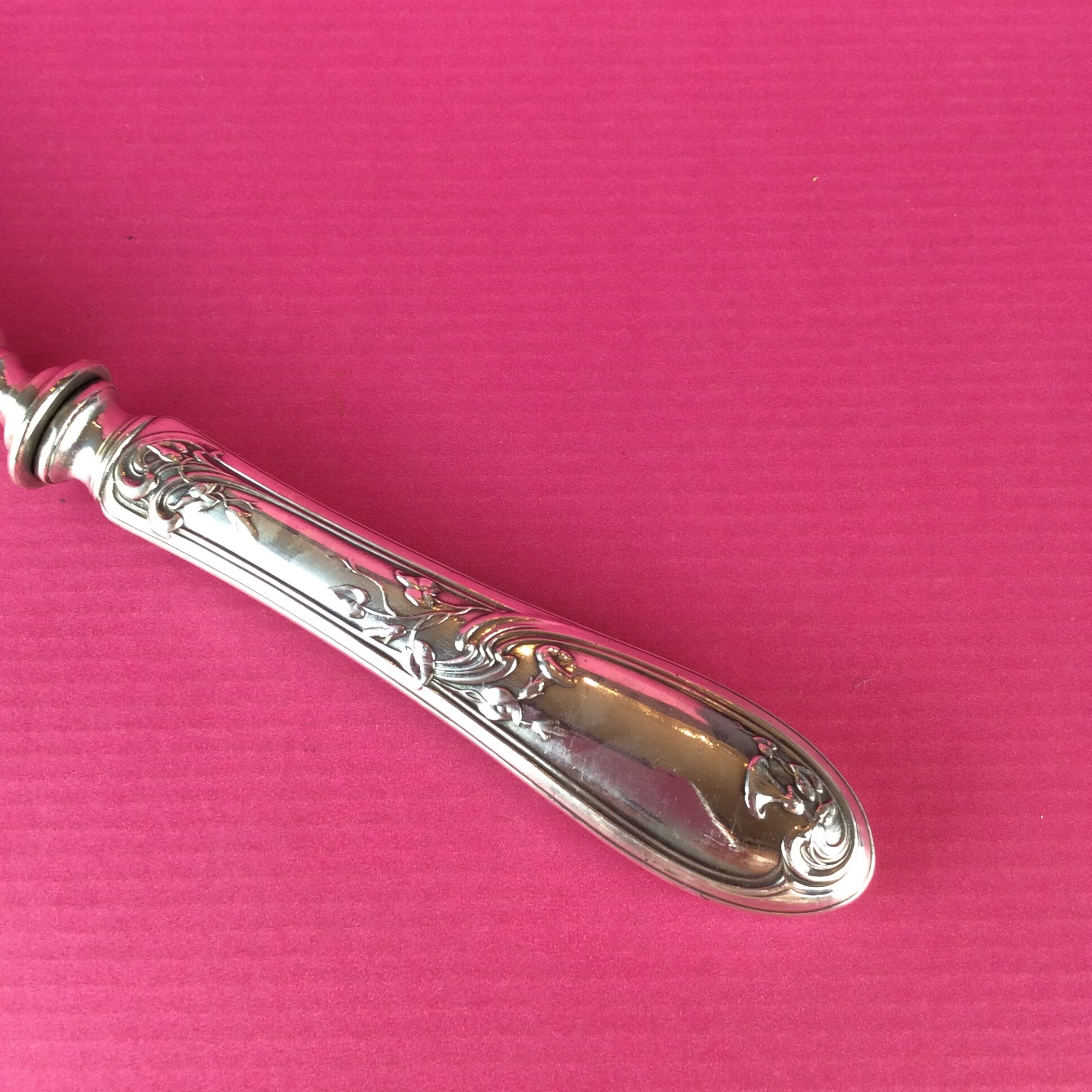 Hohlheft aus Weissmetall mit vegetabilem Blättermotiv, dekorative Feststellschraube aus Stahl, gemarkt mit französischer Herstellermarke, handpolierter Zustand