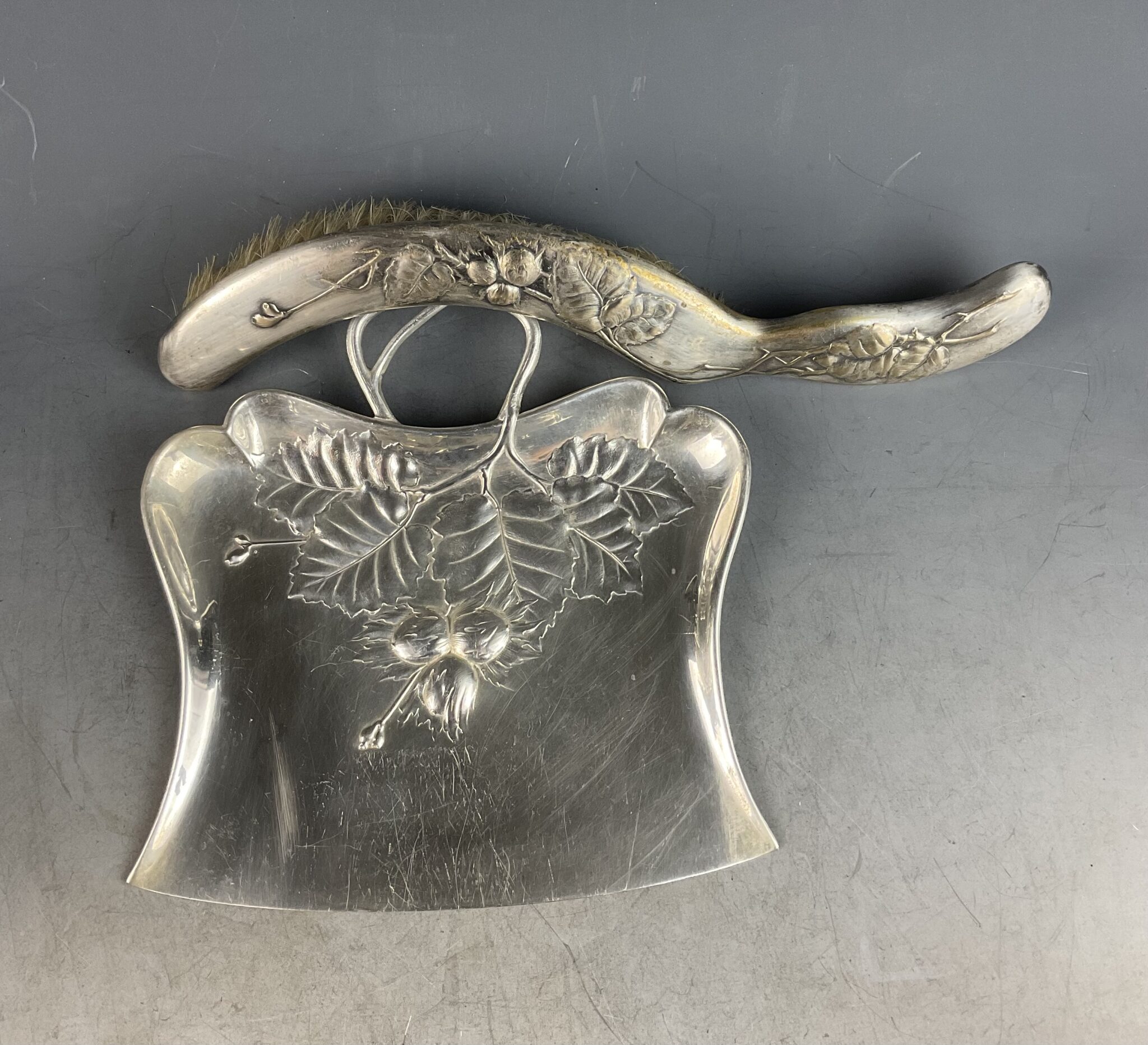 Versilberter Jugendstil Tischbesen mit Schaufel