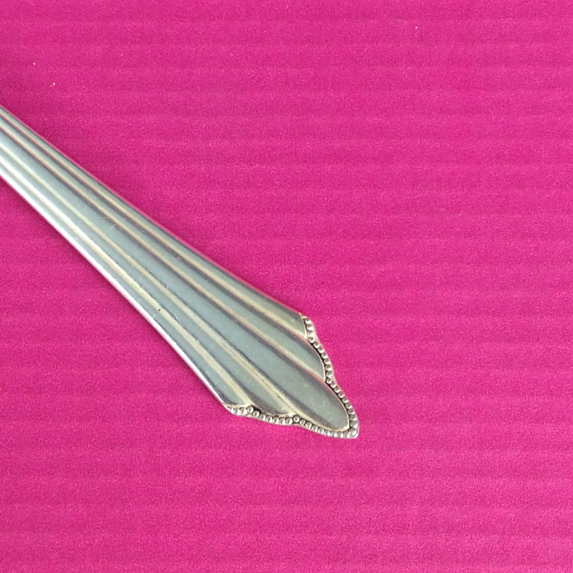 Annettes Etikette: Die Bestecke der deutschen Firma WMF werden einerseits mit Nummern und darüber hinaus mit Namen versehen. Diese Facon wurde ab 1923 unter der Modellnummer 900 und dem Namen „Fächer“ vertrieben. Menubestecke sind eher häufig, bei den Vorlegern ist es schon schwieriger so schön erhaltene Stücke mit Vergoldung zu finden.