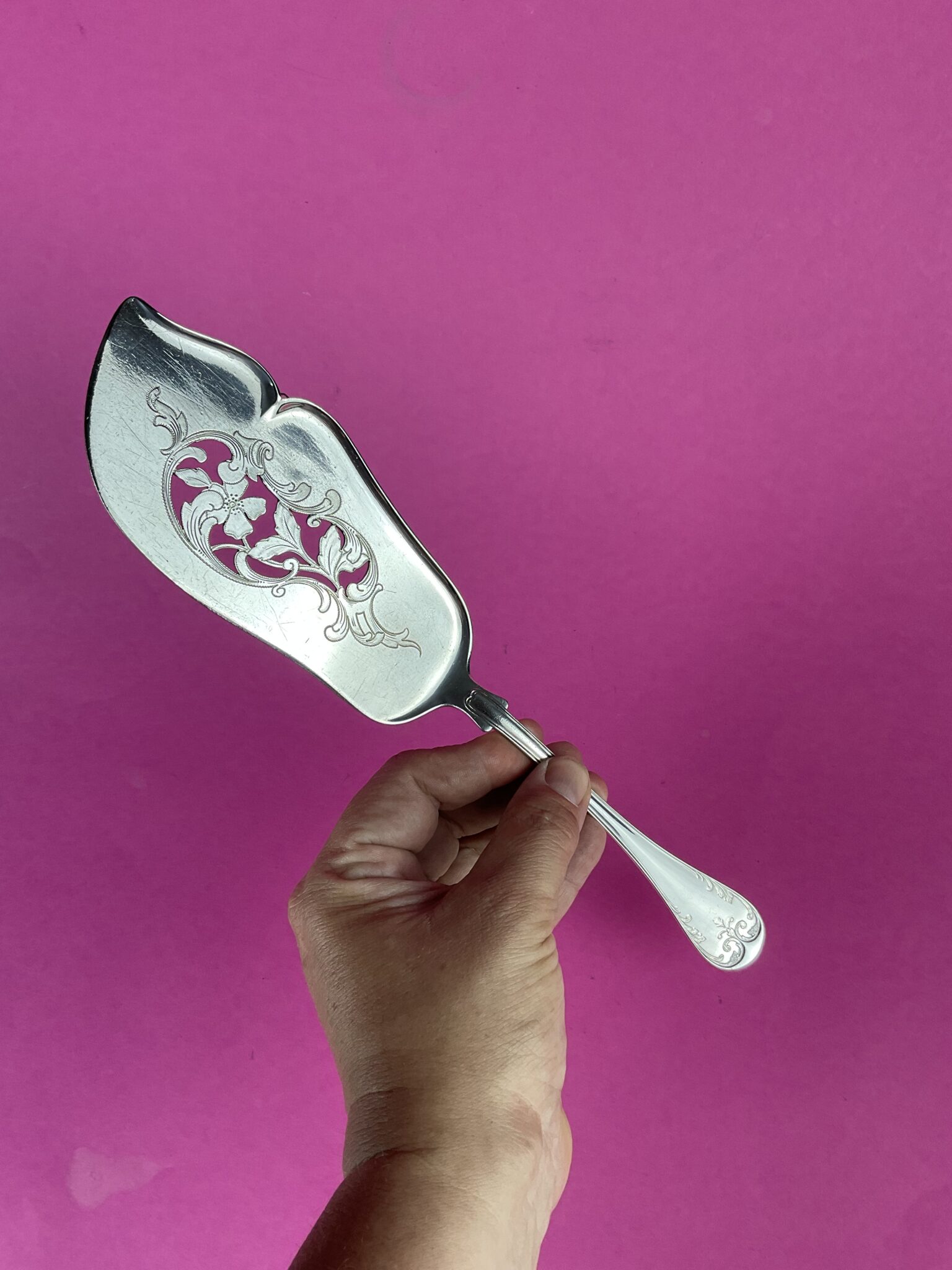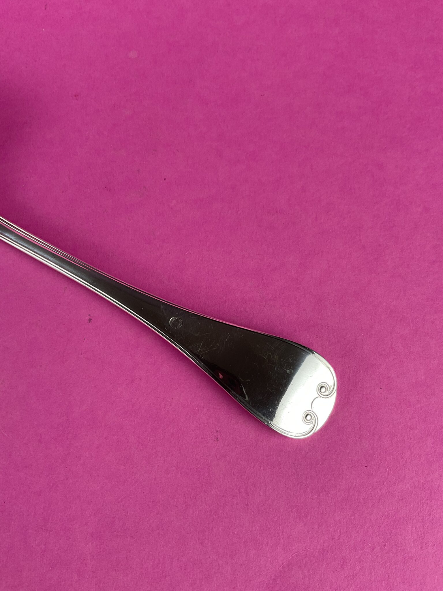 Alpacca, versilbert, Stiel mit Rokokomotiv, Besteckform 3600, gemarkt mit runder Bärenmarke, handpolierter Erhaltungszustand