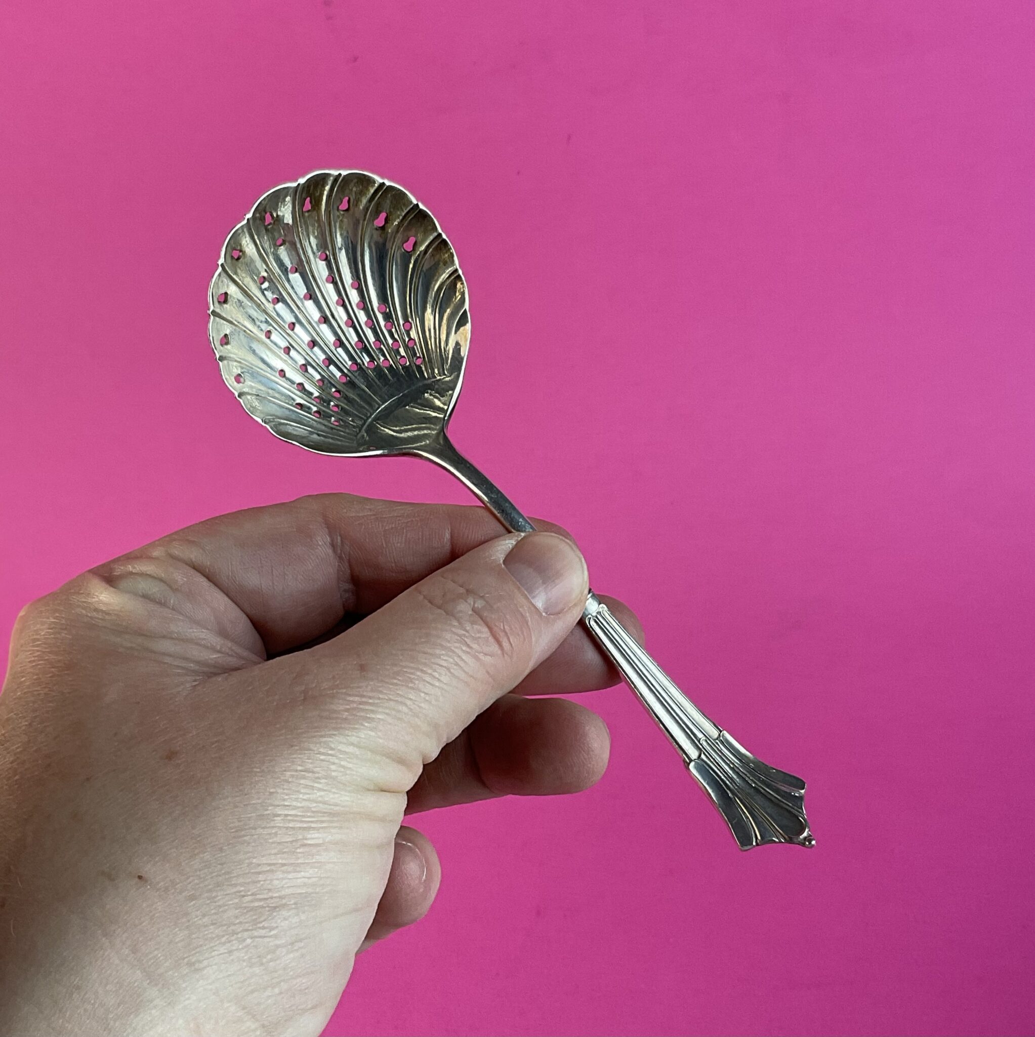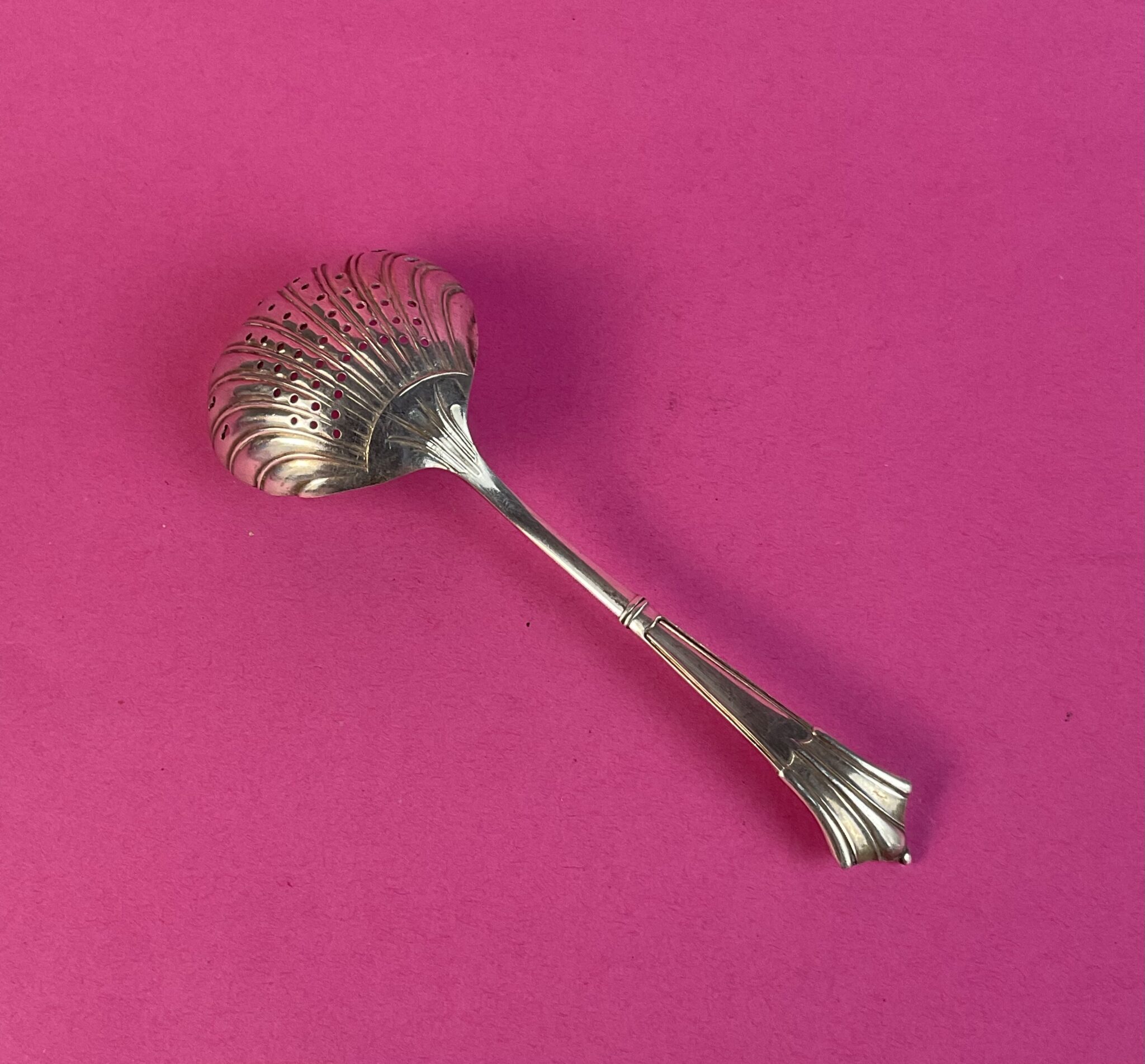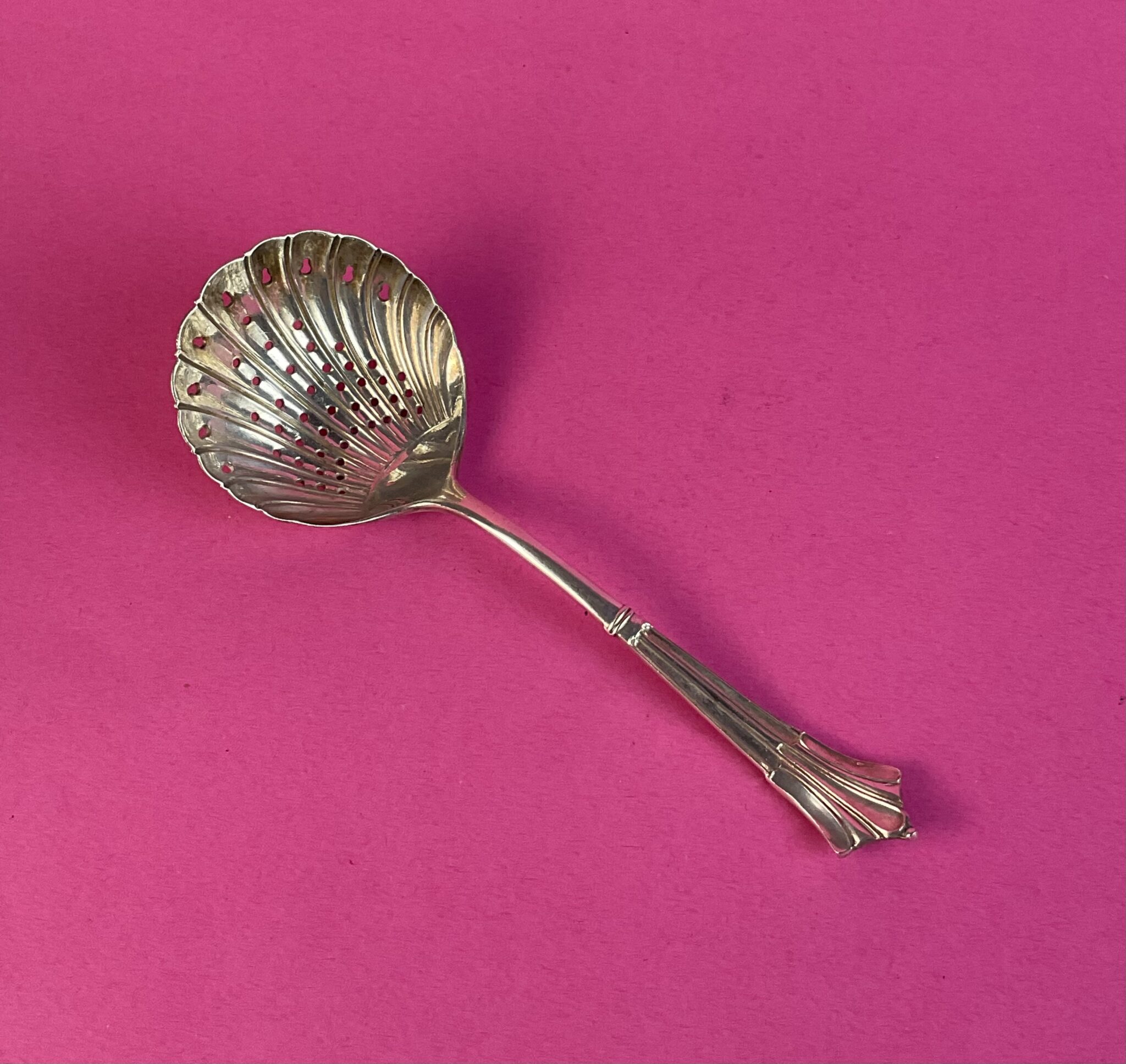 Annettes Etikette: Dieser hübsche „Schöpfer“ ist kein Sieblöffel sondern ein „Zuckerstreulöffel“. Der feine Staubzucker konnte so bei Tisch über das Dessert gestreut werden. Mehr als stilvoll und ein wunderbares Zeugnis historischer Tafelkultur. Schon Kaiserin Elisabeth hatte ihren eigenen Zuckerstreulöffel der Firma Berndorf.