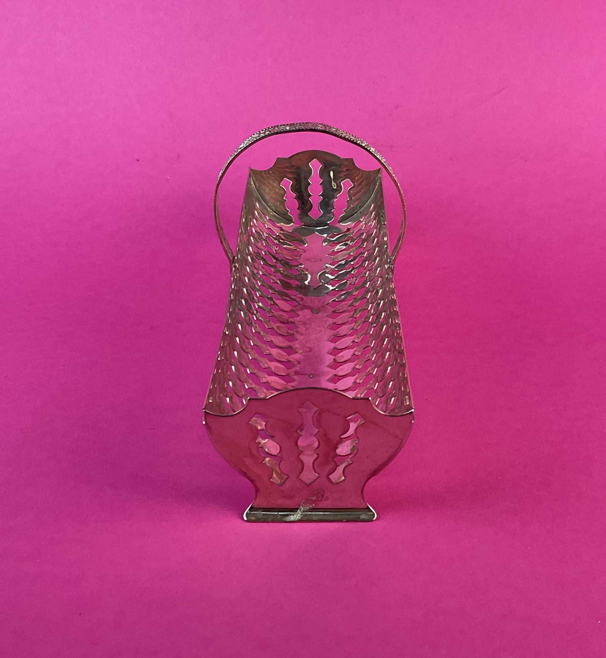 Nickel, massiv versilbert, rechteckige Halterung mit durchbrochen gearbeiteter Galerie auf vier Füssen, am Boden undeutlich gemarkt, tadelloser Zustand